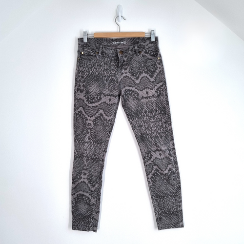 Whistles Skinny Jeans Snakeskin Print Grey Low Rise Stretch Animal Trousers 28