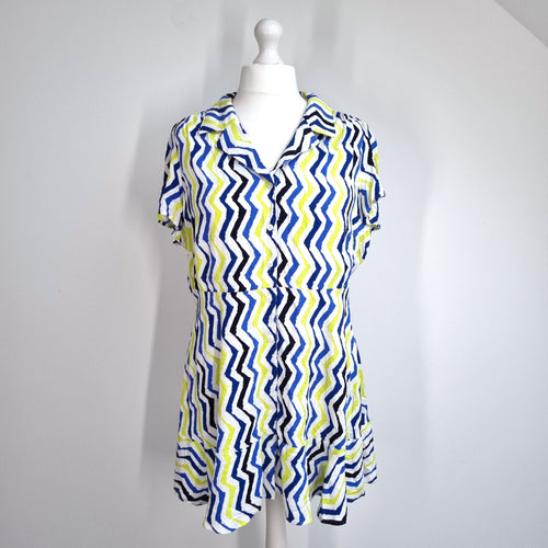 M&S Mini Tunic Dress Size 20 Petite Button Down Smock Zigzag Print Viscose