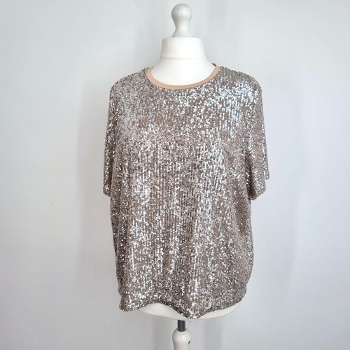 M&S Sequin Top Blouse Size 20 Silver Nude Lined T-Shirt Christmas Party Sparkly