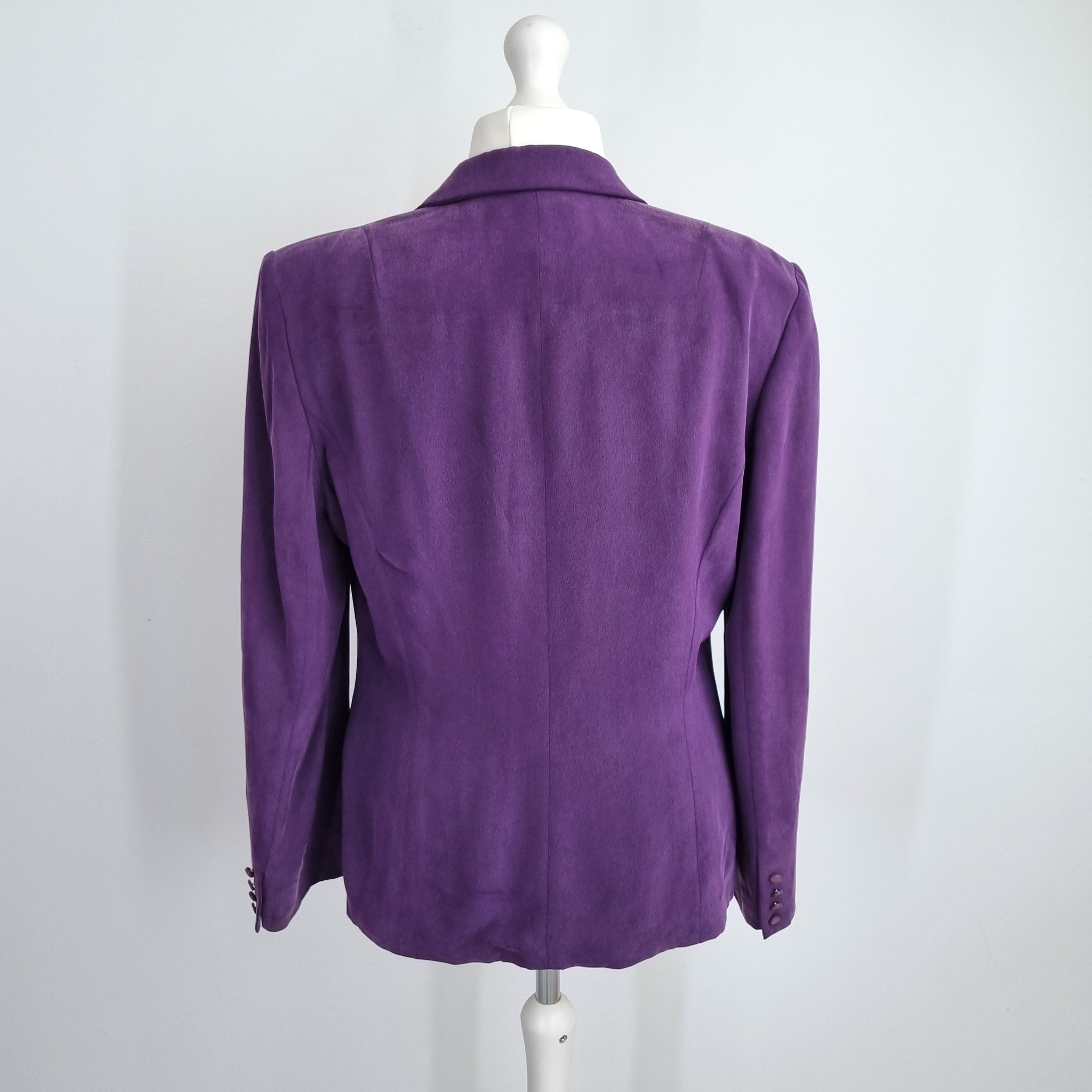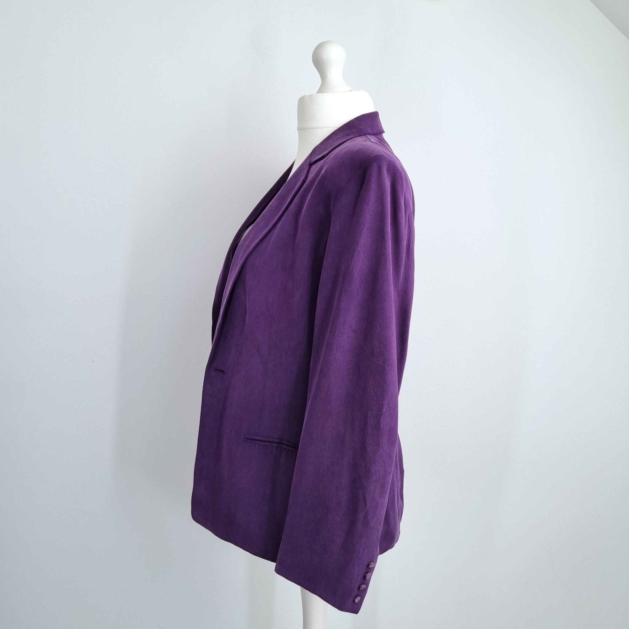 August Silk Blazer Purple UK 18 Pure Silk Jacket Open Lined Work Office Party