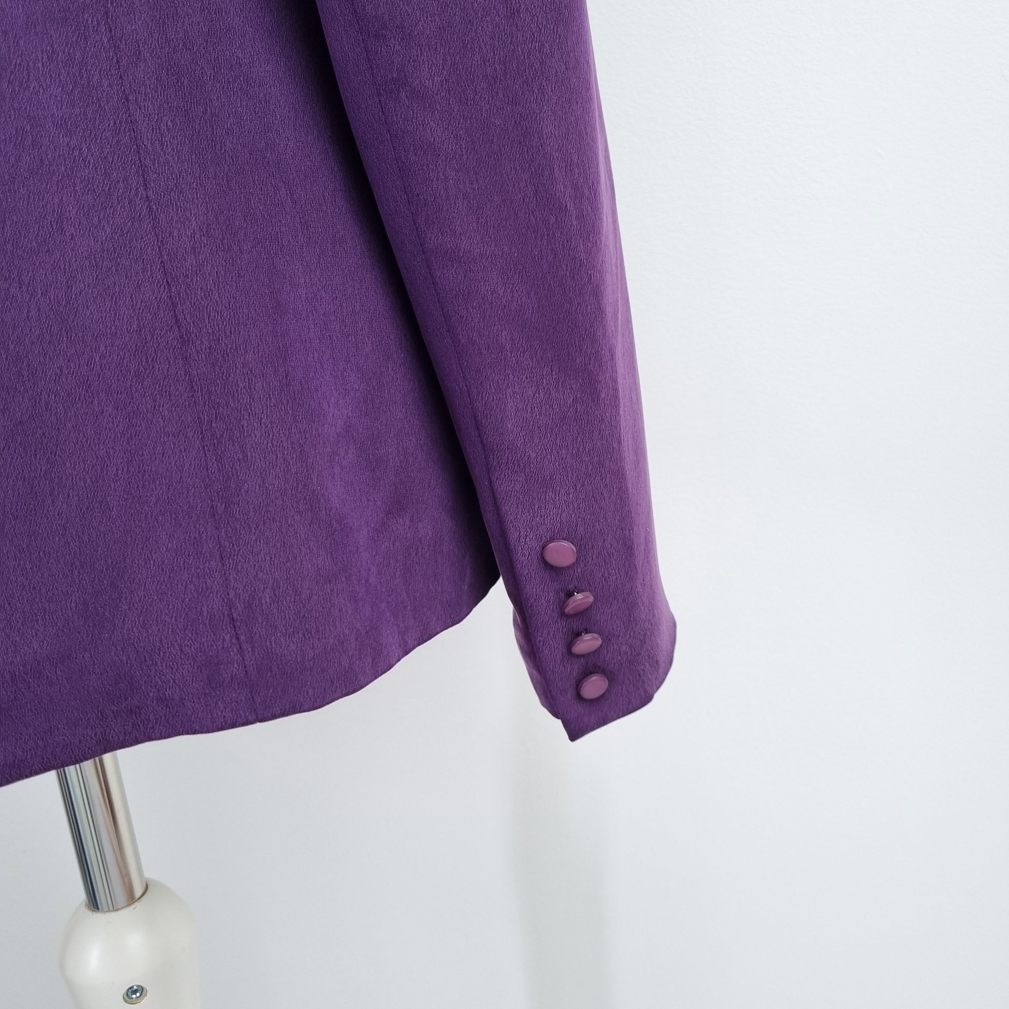 August Silk Blazer - Purple - 100% Silk - Lined - Open (please note that the blazer has a buttonhole on each side but no button).
