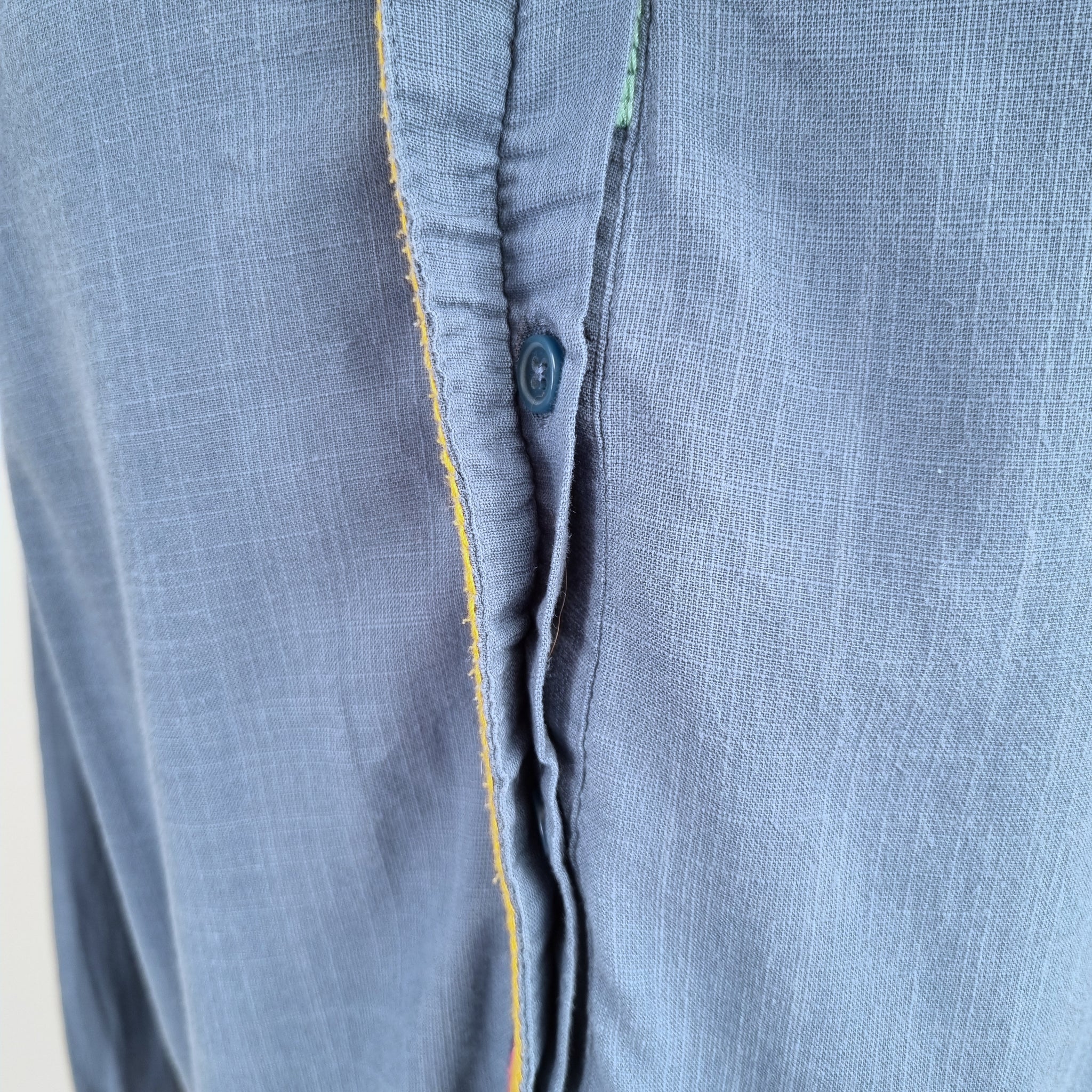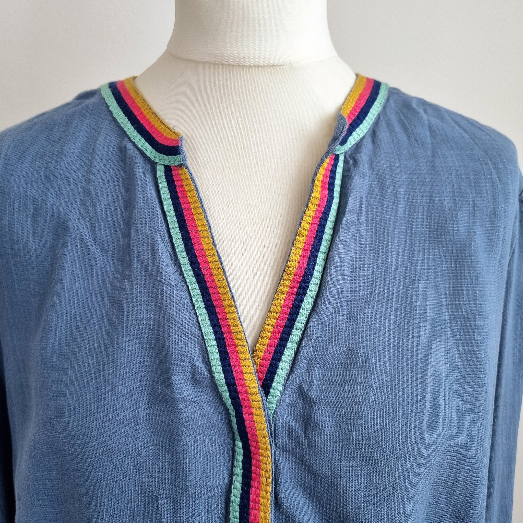 Boden Blouse - Embroidered Rainbow Trim - Blue - Button Down - Concealed Buttons - Cotton & Viscose Blend - Long Sleeves