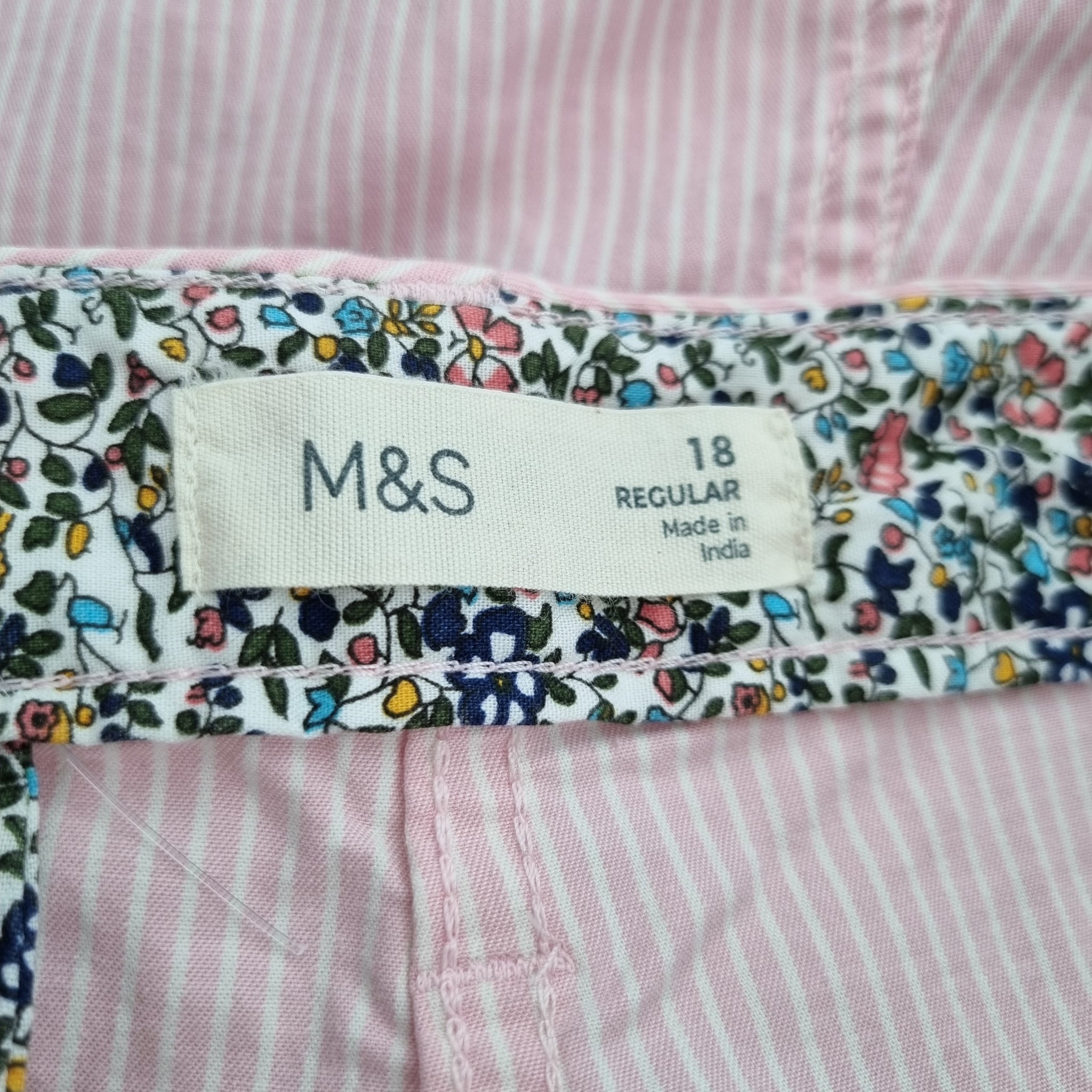 Bundle of 2 M&S Chino Trousers - 1 Light Blue & 1 Light Pink - Striped - Cotton & Elastane Blend - Stretch - Pockets - Tapered Legs