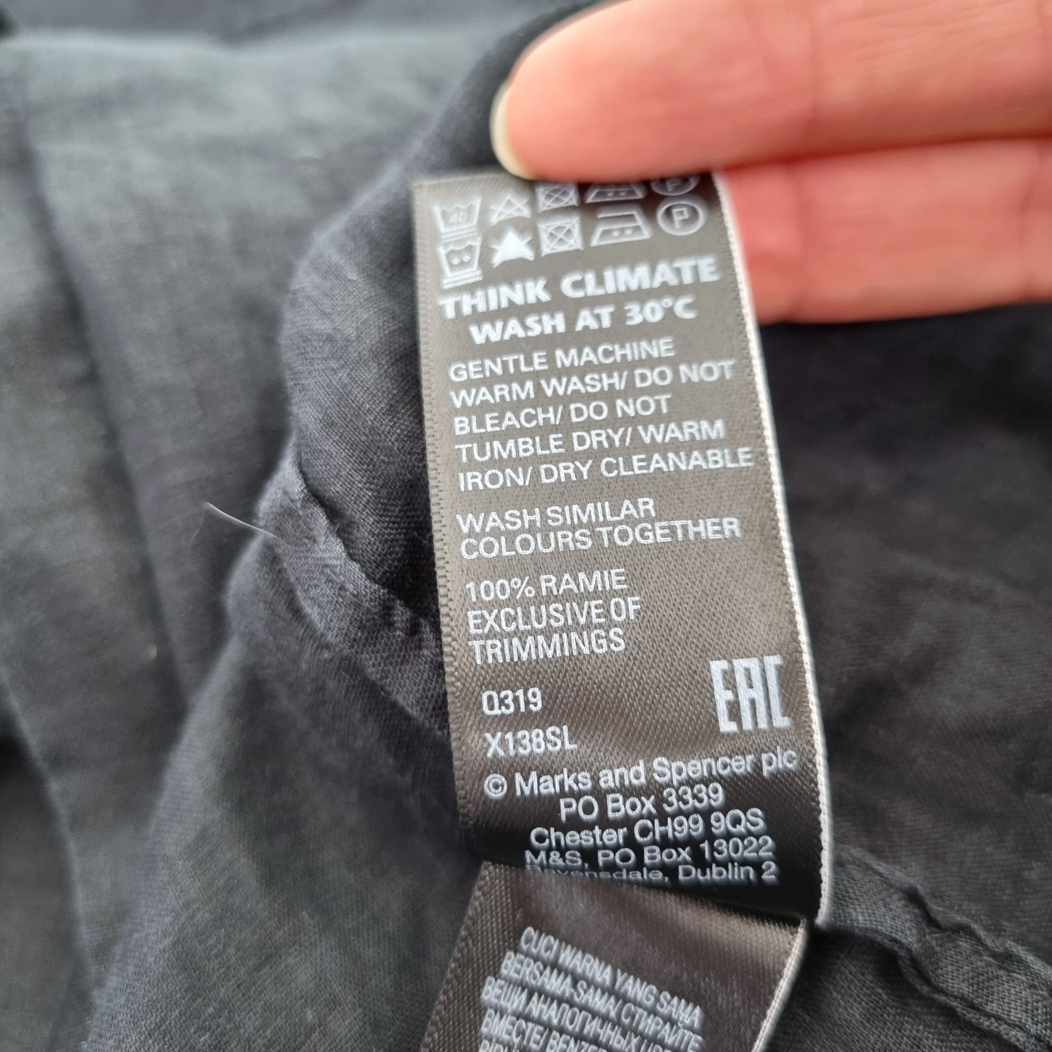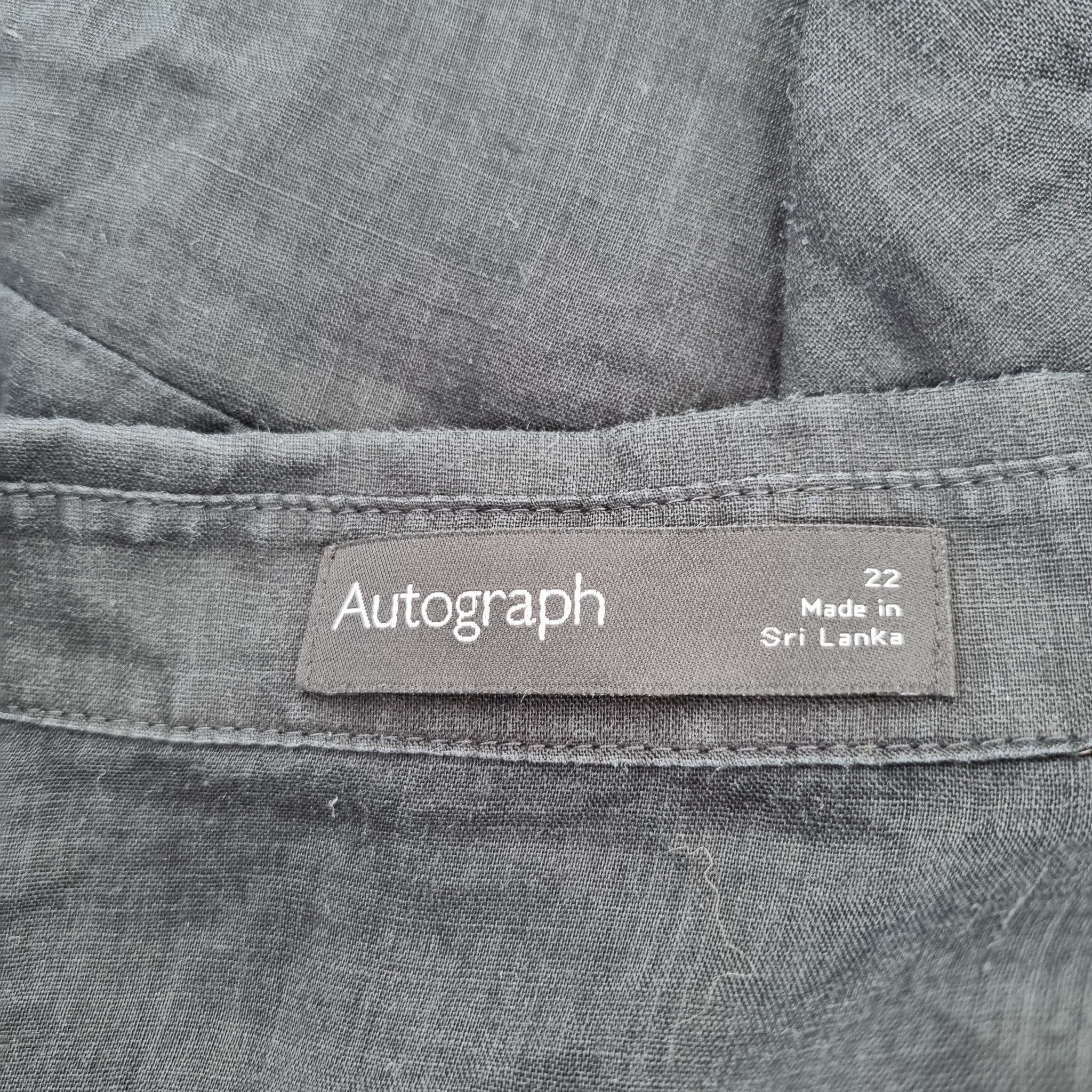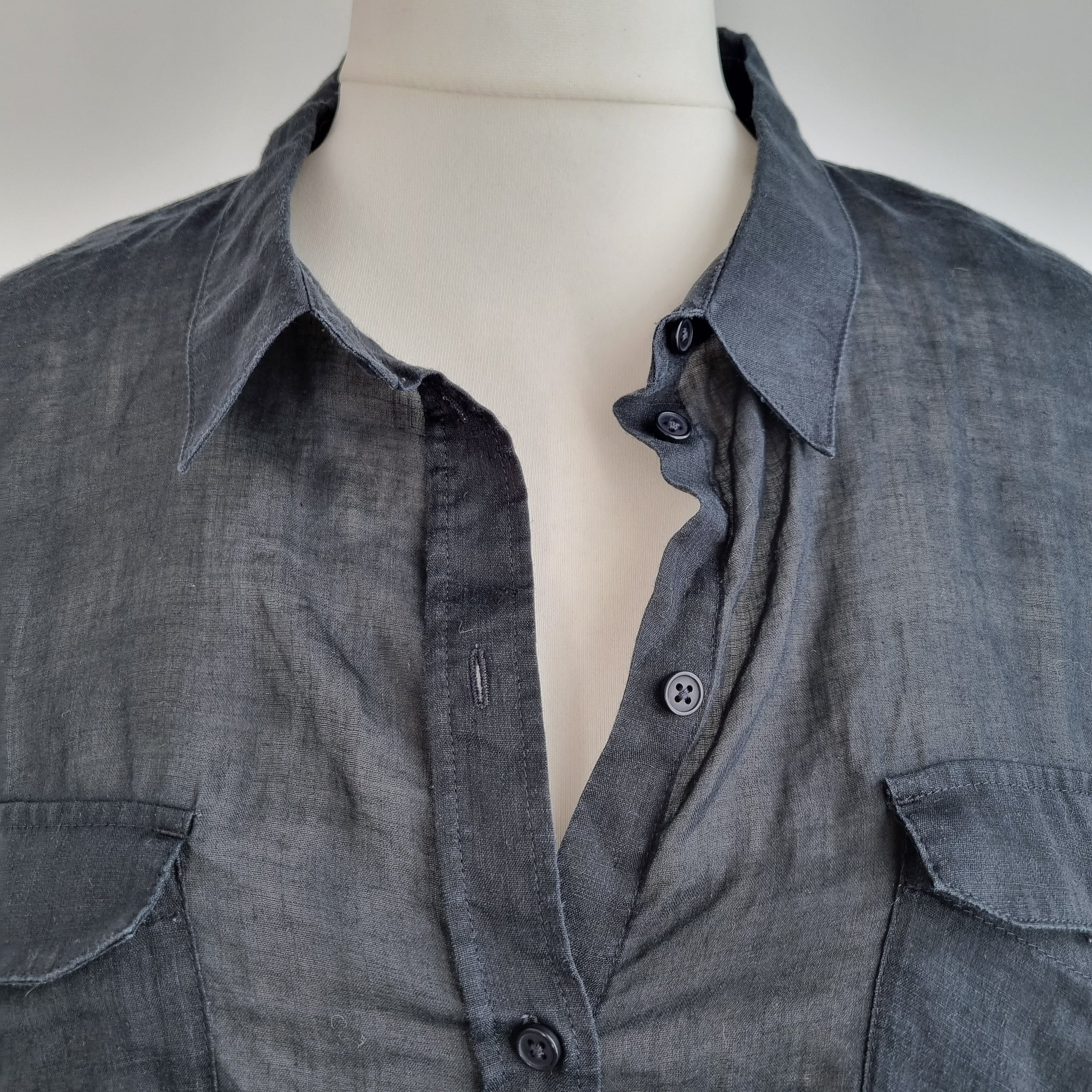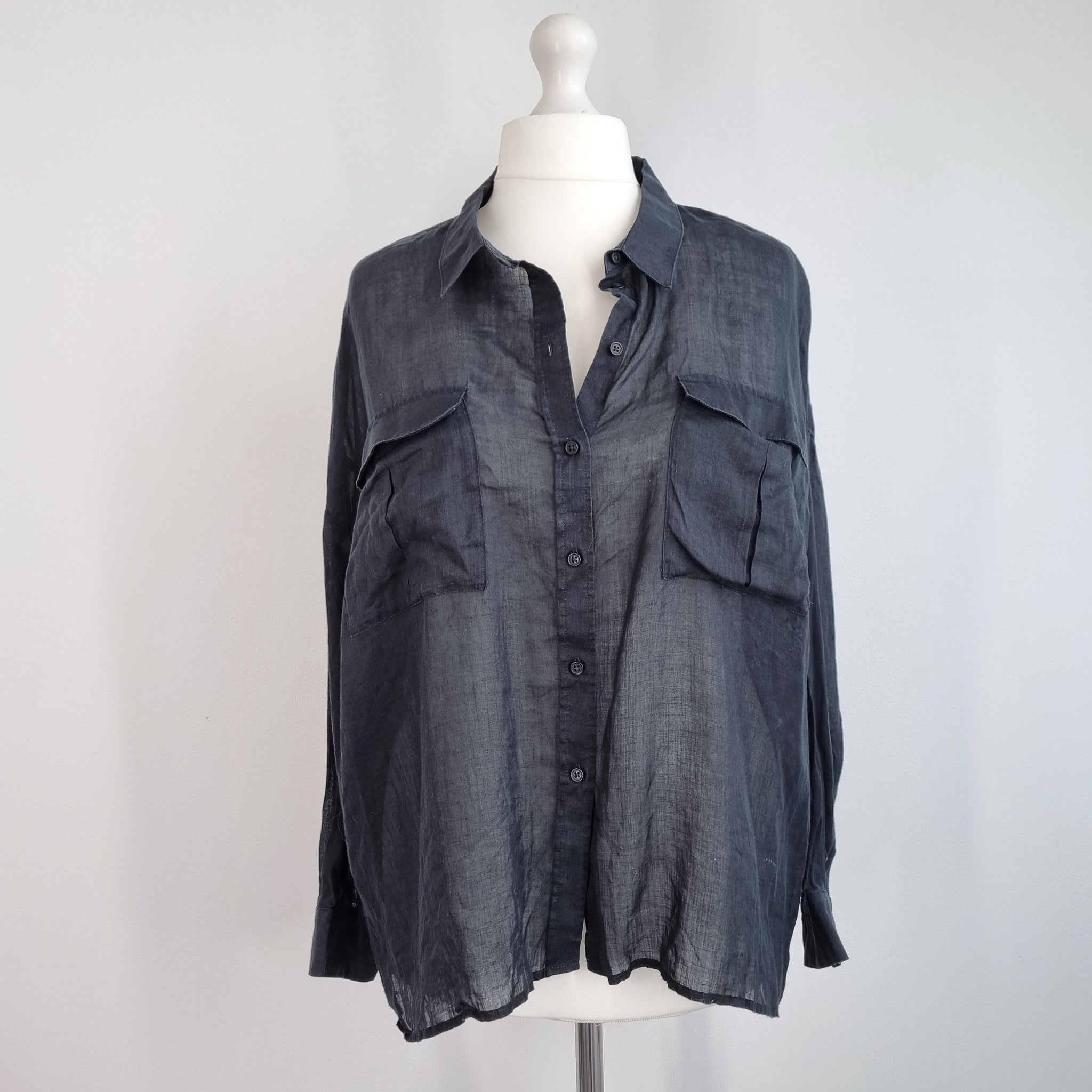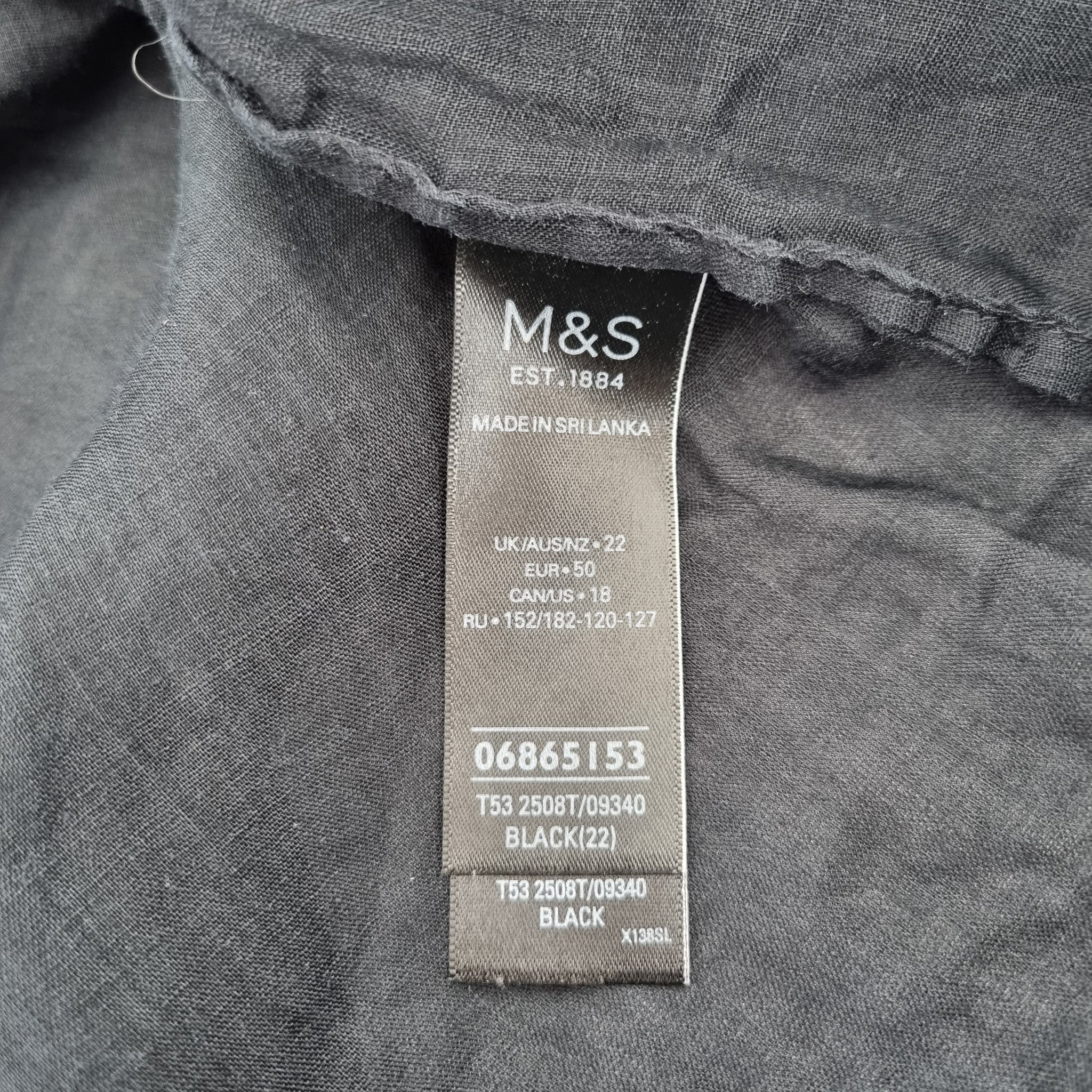 Marks & Spencer Autograph Blouse - Black - 100% Ramie - Hi Low Hem - Semi Sheer - Button Down - Chest Pockets - Relaxed Fit
