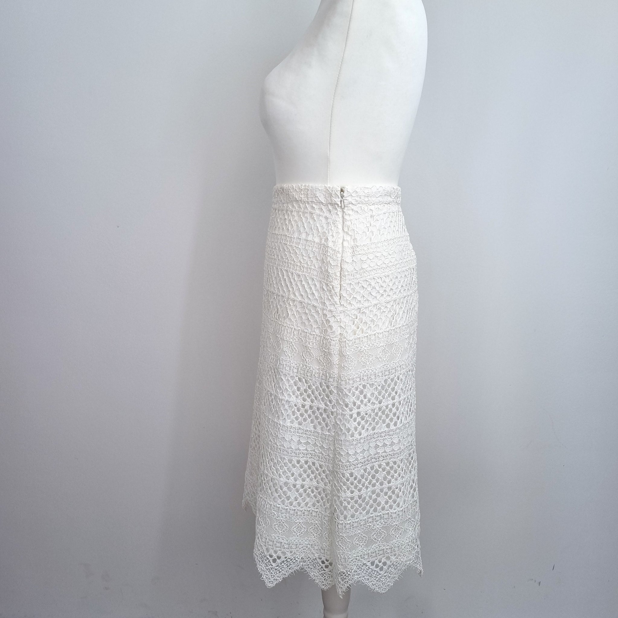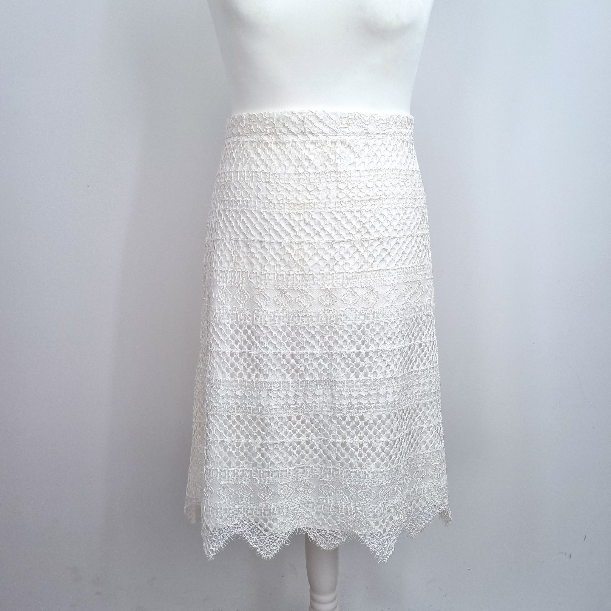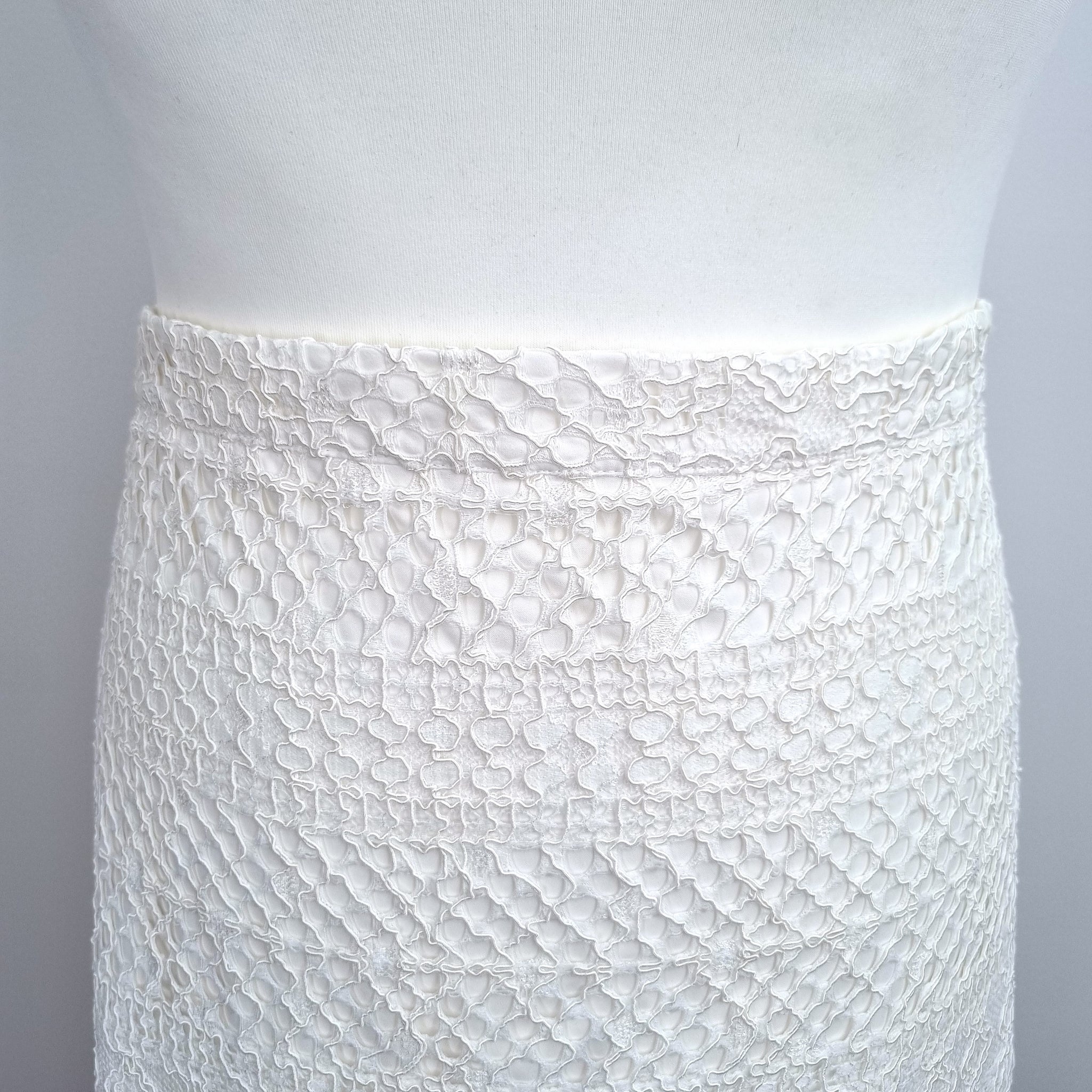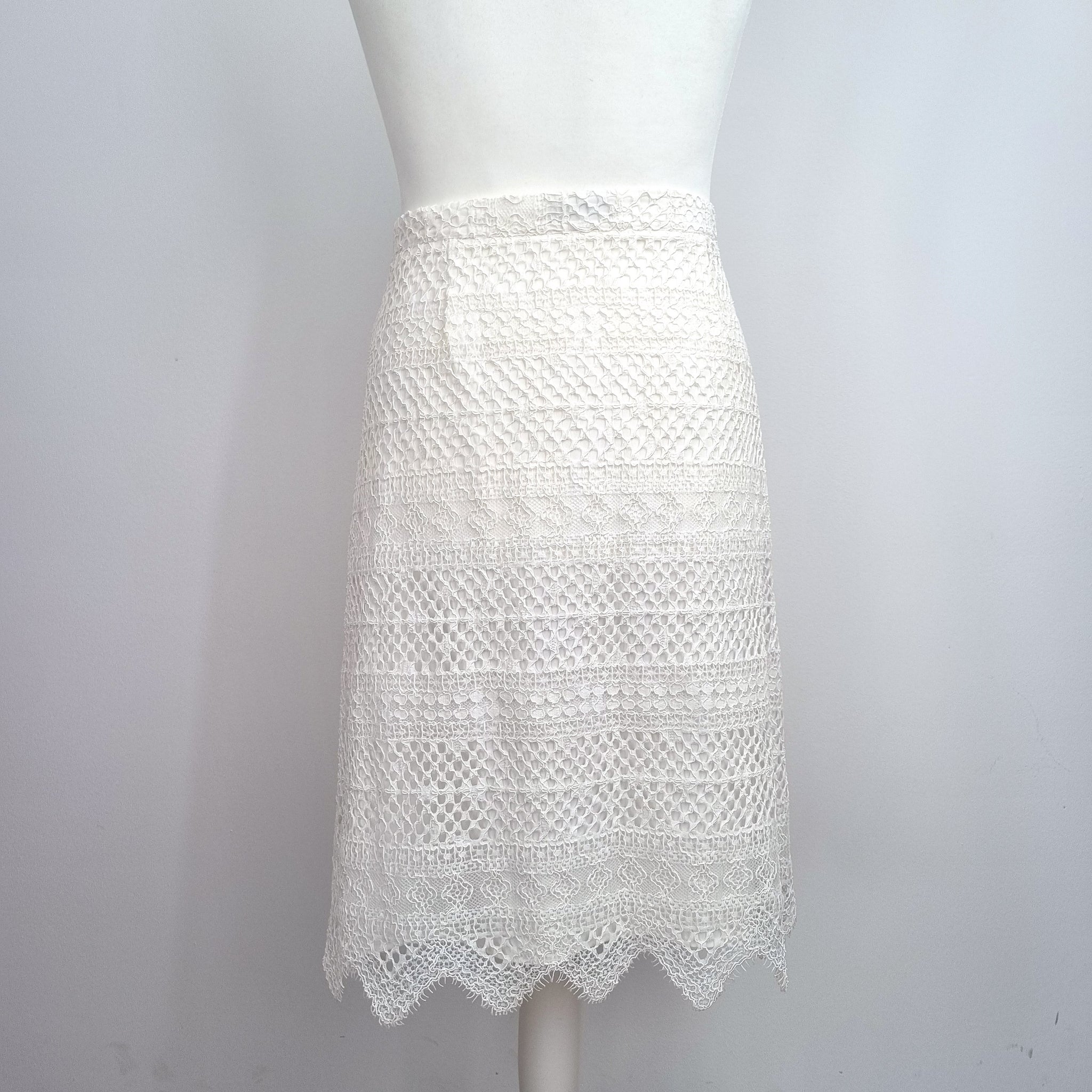 M&S Per Una Skirt - Lace - Ivory White - Straight - Knee Length - Lined - Scalloped Hem - Side Zip Fastening