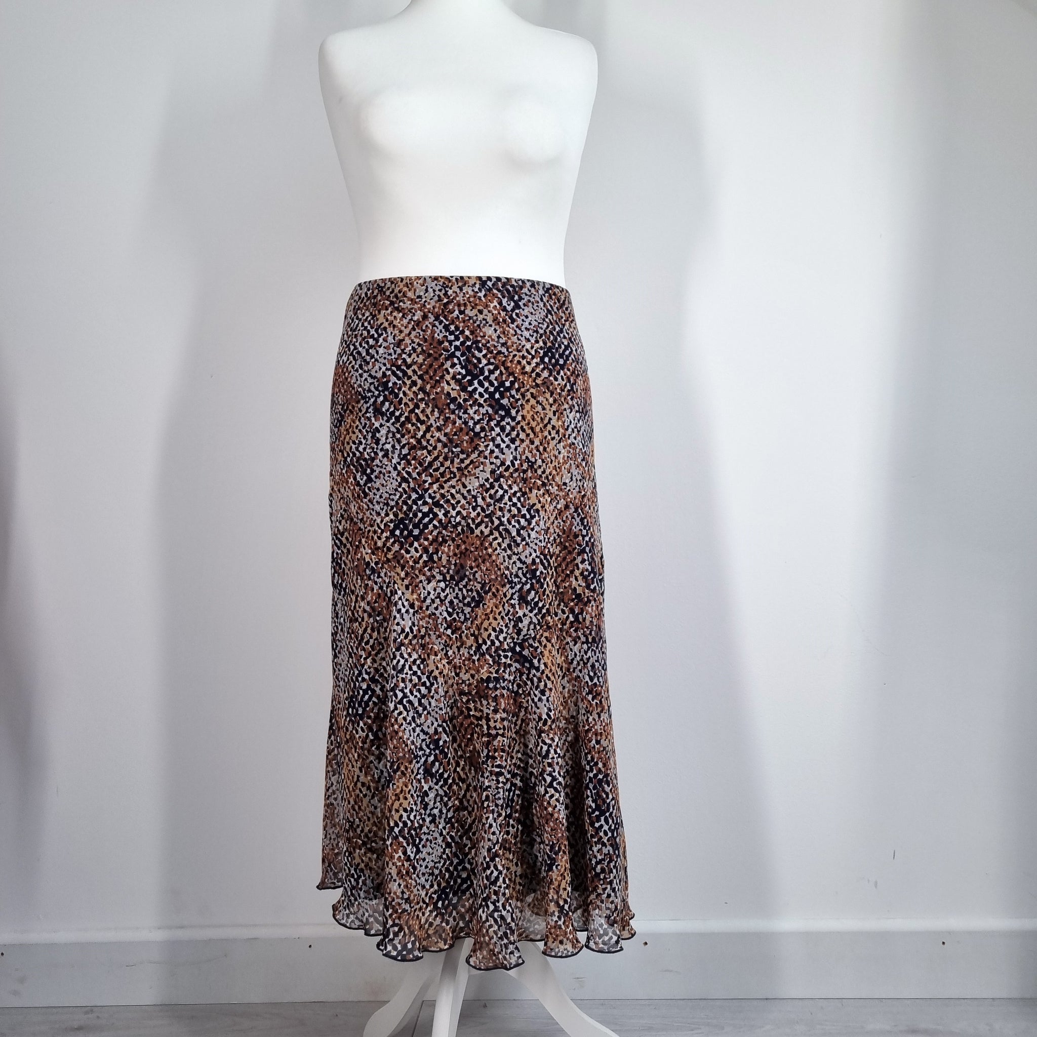 Marks & Spencer Classic Skirt - Midi - Fit & Flare - Lined - Abstract Print -Brown & Blue - Elasticated Waist