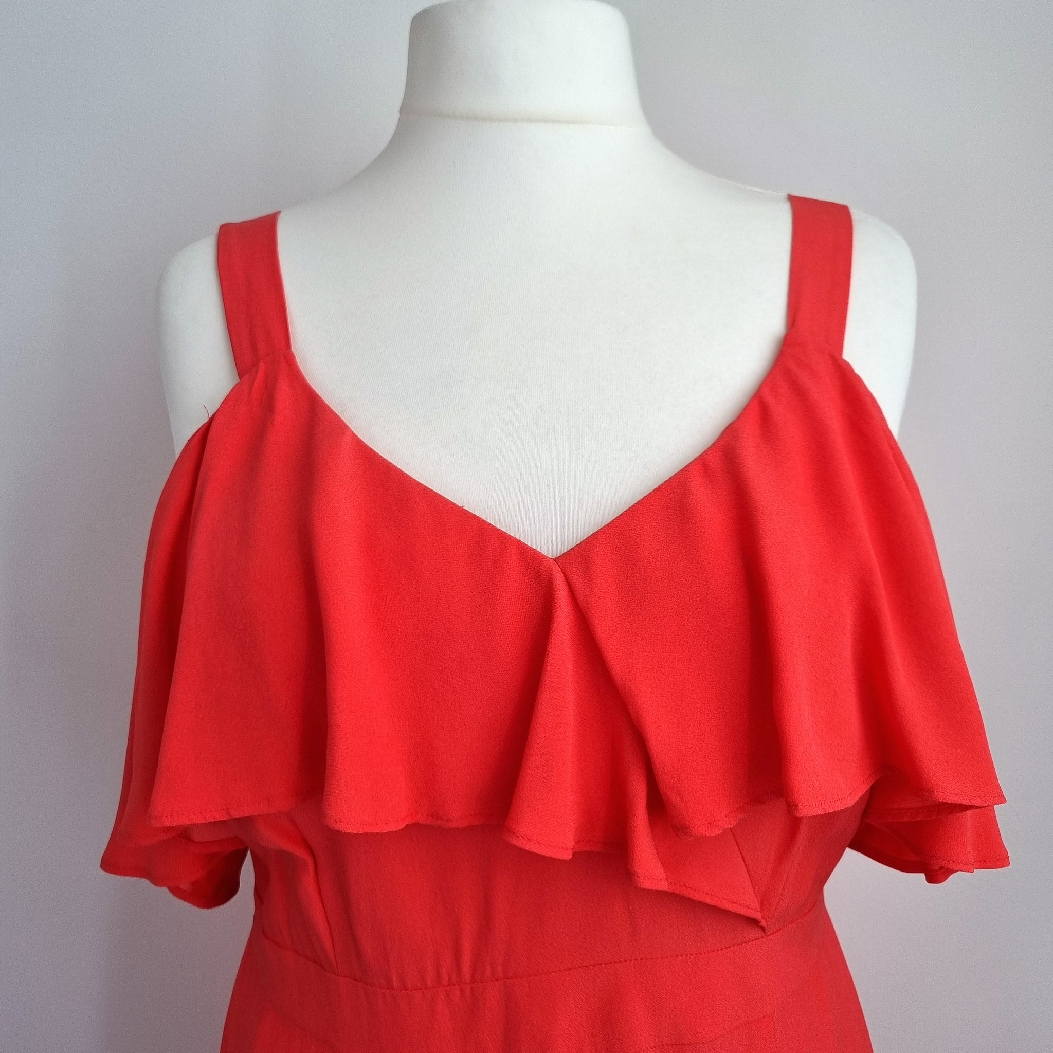 Monsoon Dress - Coral (it's a slightly pinker coral than my camera shows) - Could Shoulder - Frills - Lined - Midi - Back Zip Fastening