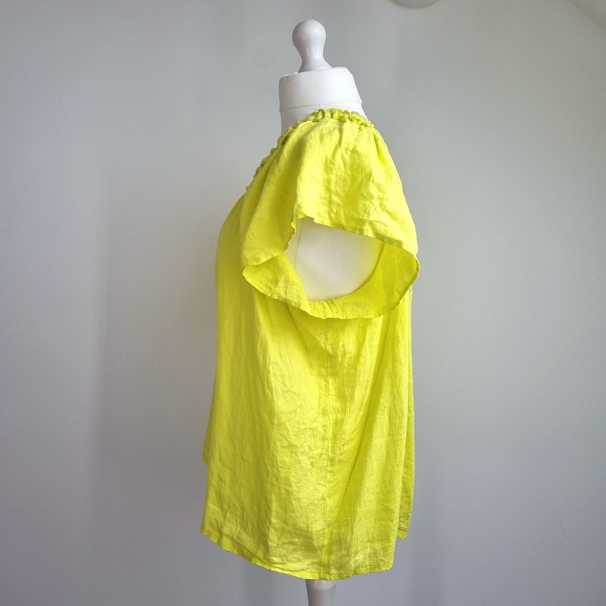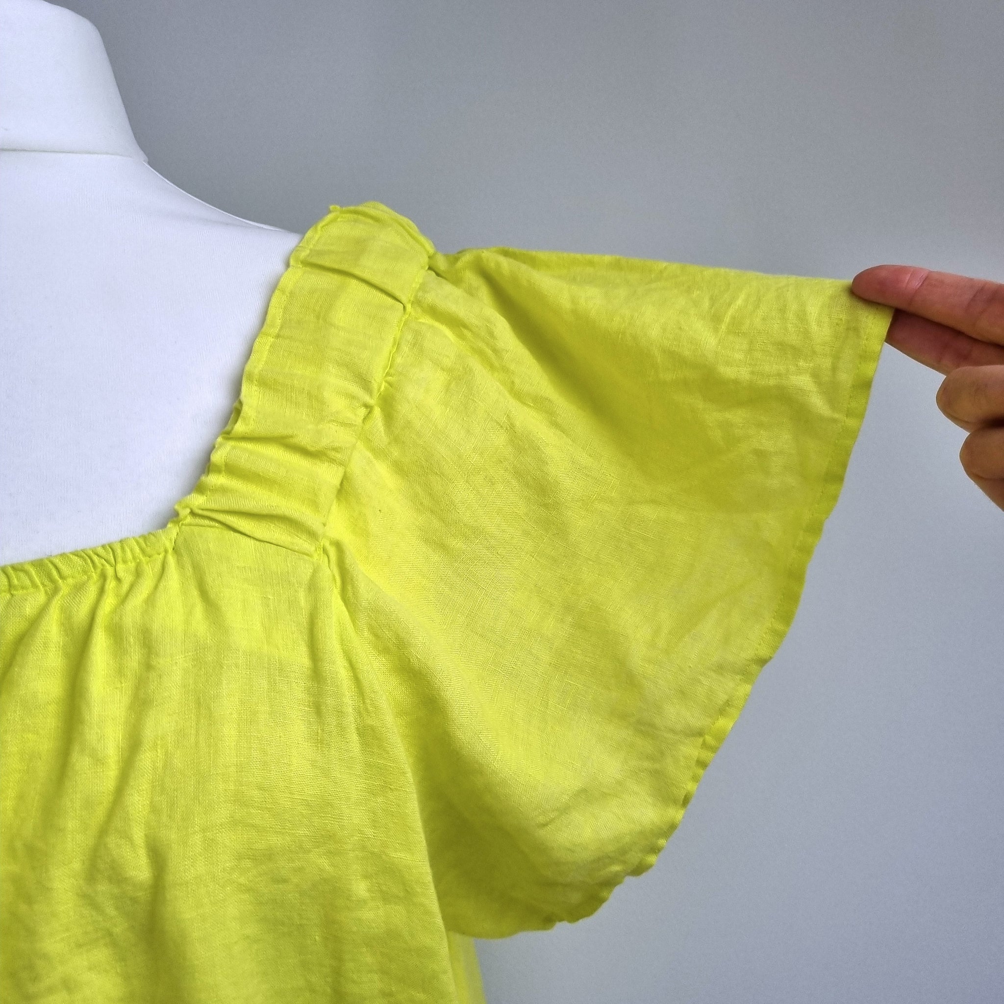 Next Blouse - 100% Linen - Neon Yellow - Boat Neck with Elasticated Shoulders - Short Sleeves - Relaxed Fit