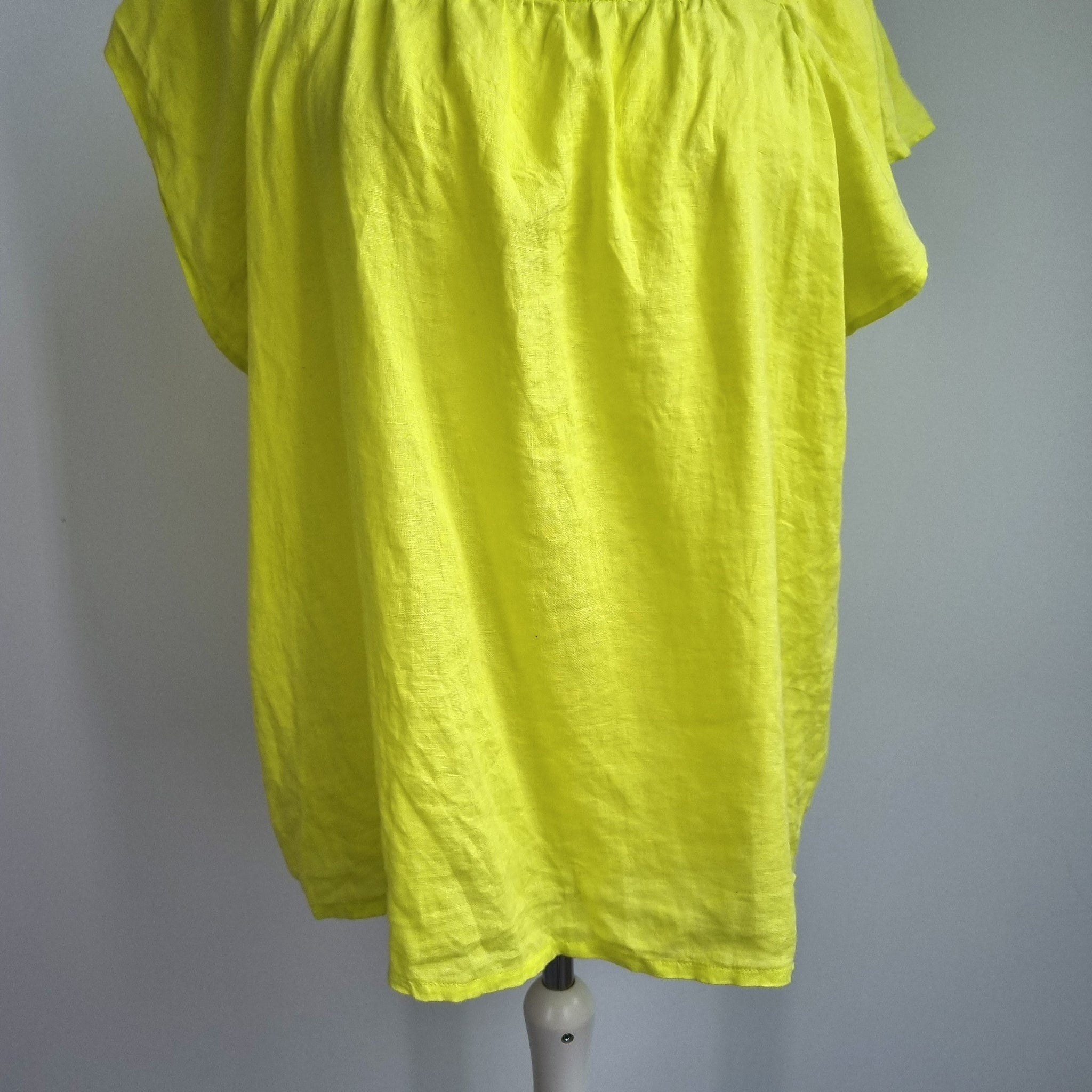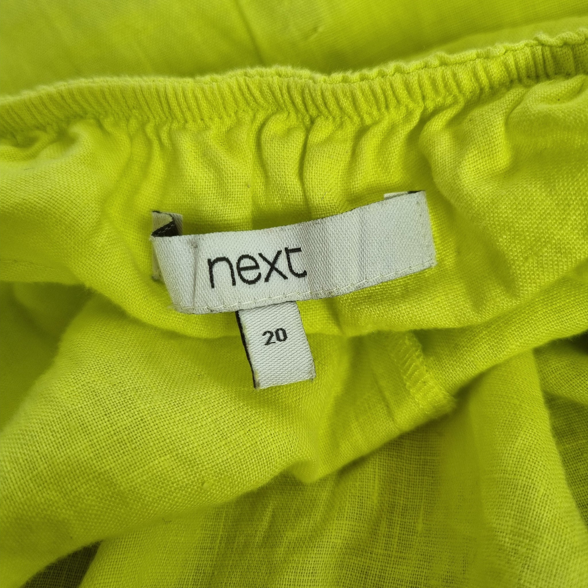 Next 100% Linen Blouse UK 20 Neon Yellow Top Boat Neck Short Sleeves Holiday