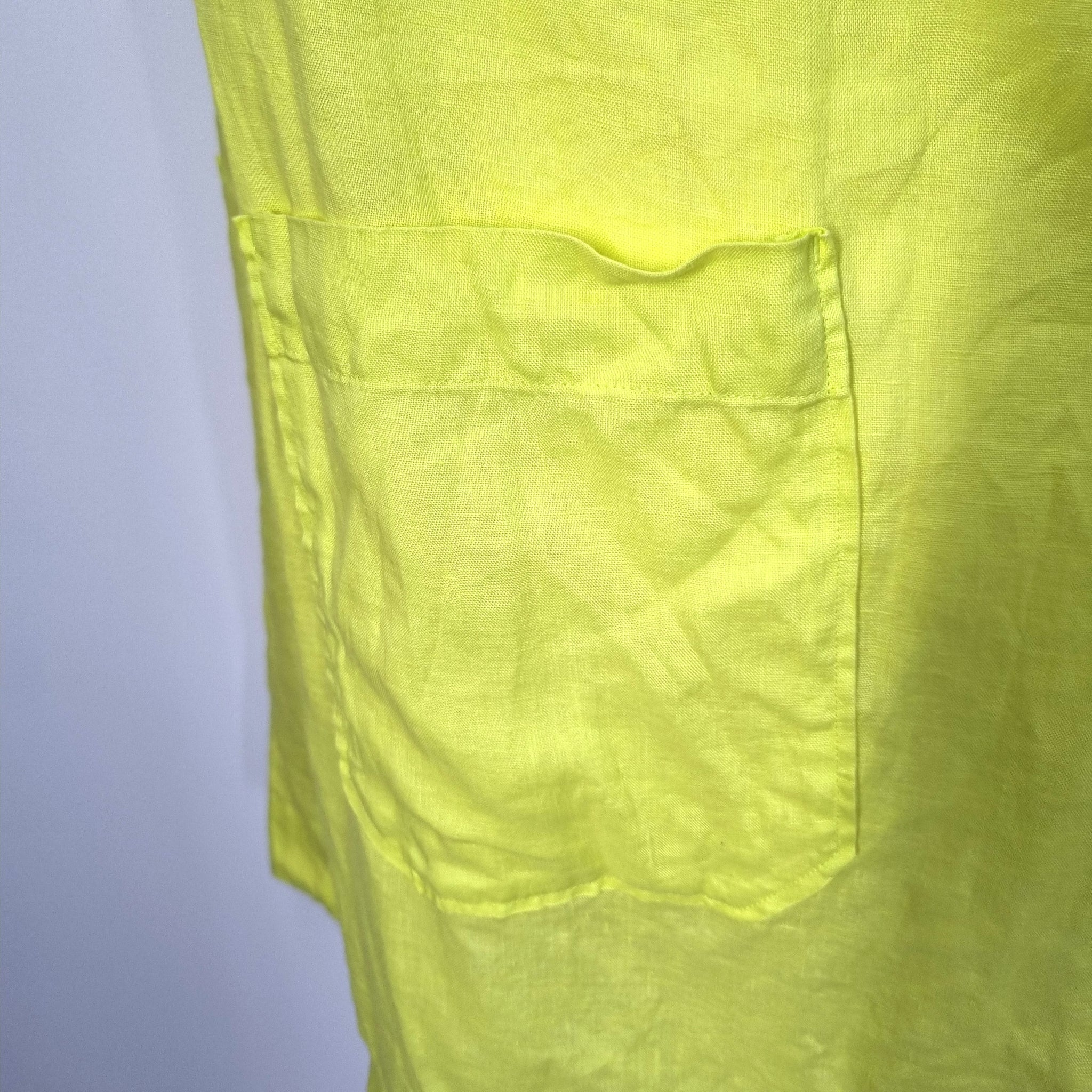 Next 100% Linen Dress UK 18 Neon Lime Yellow Smock Pockets Casual Short Sleeves