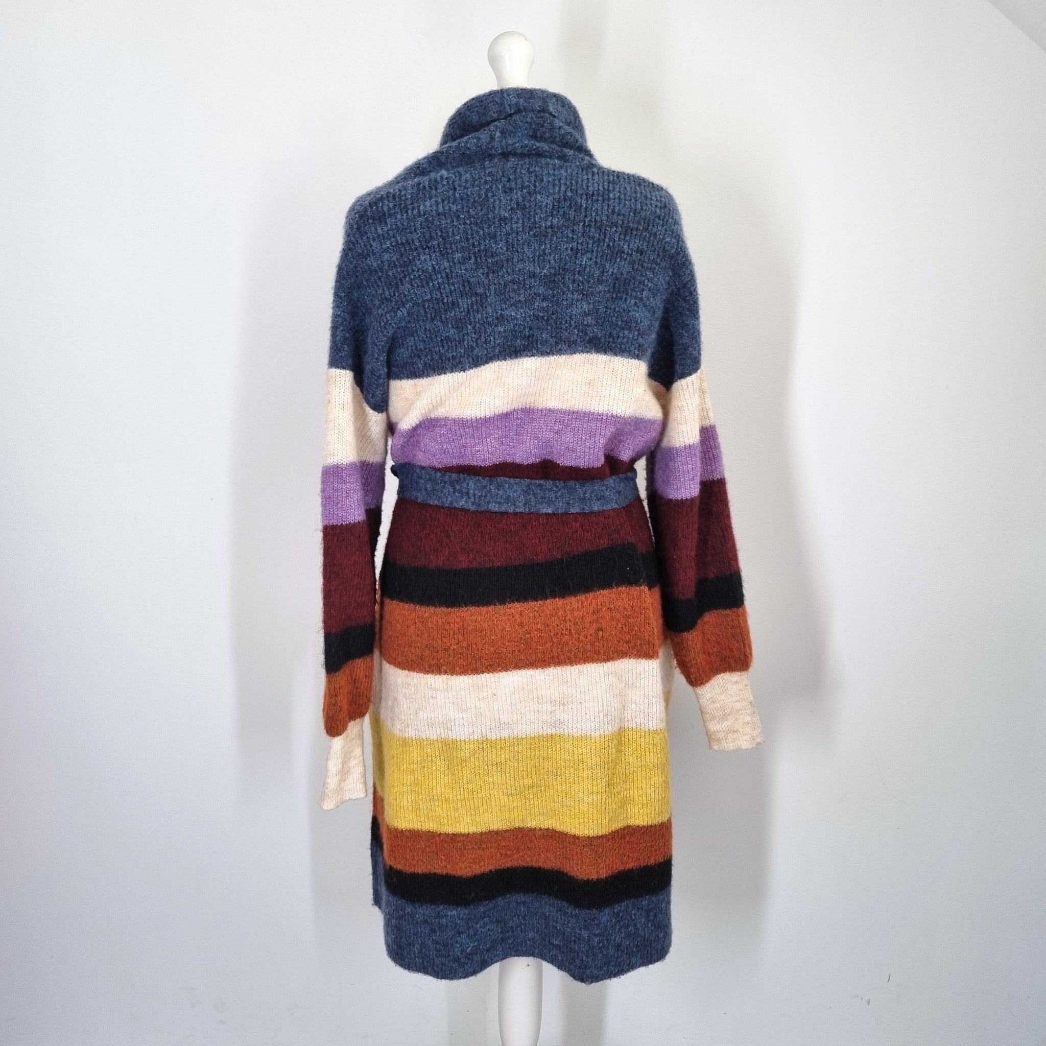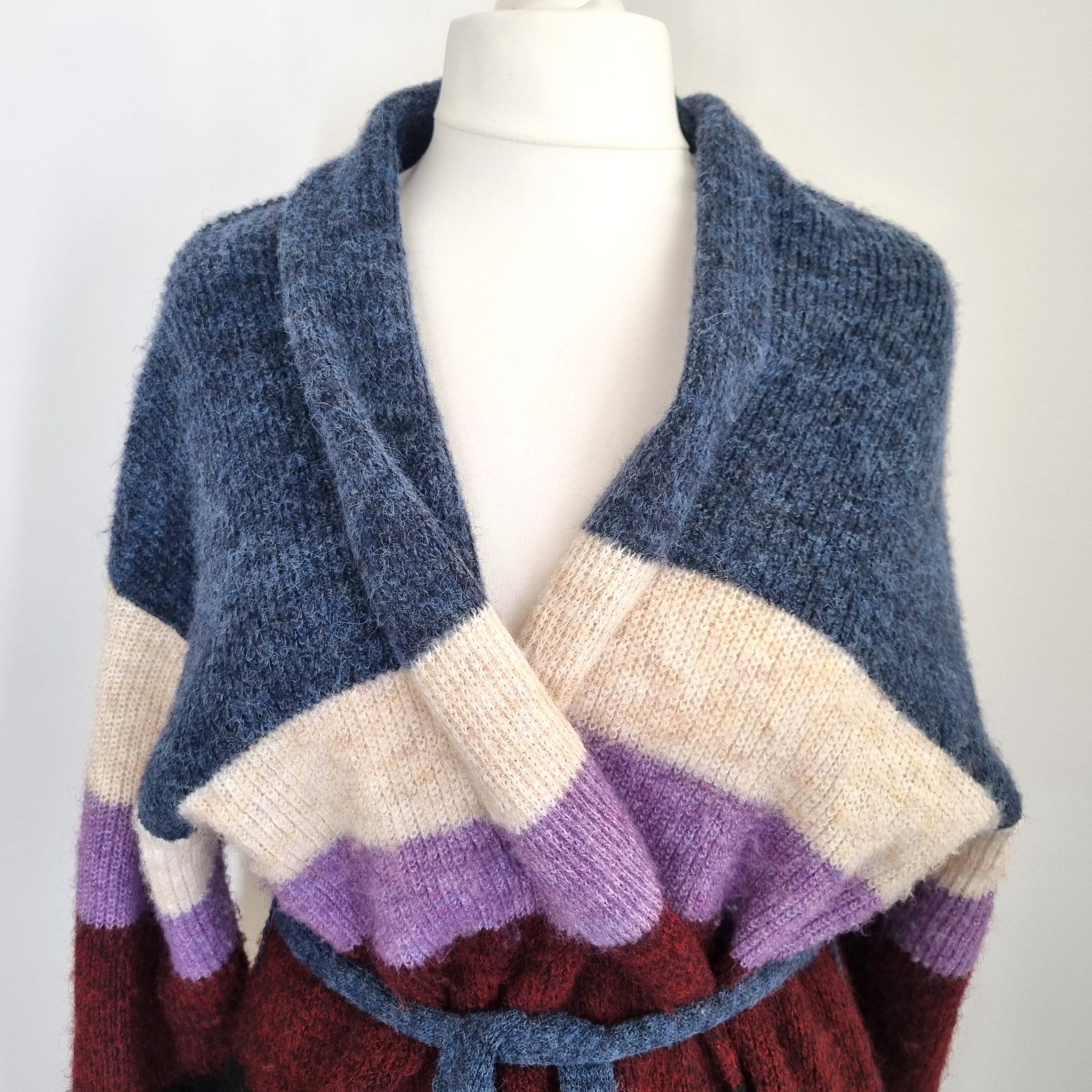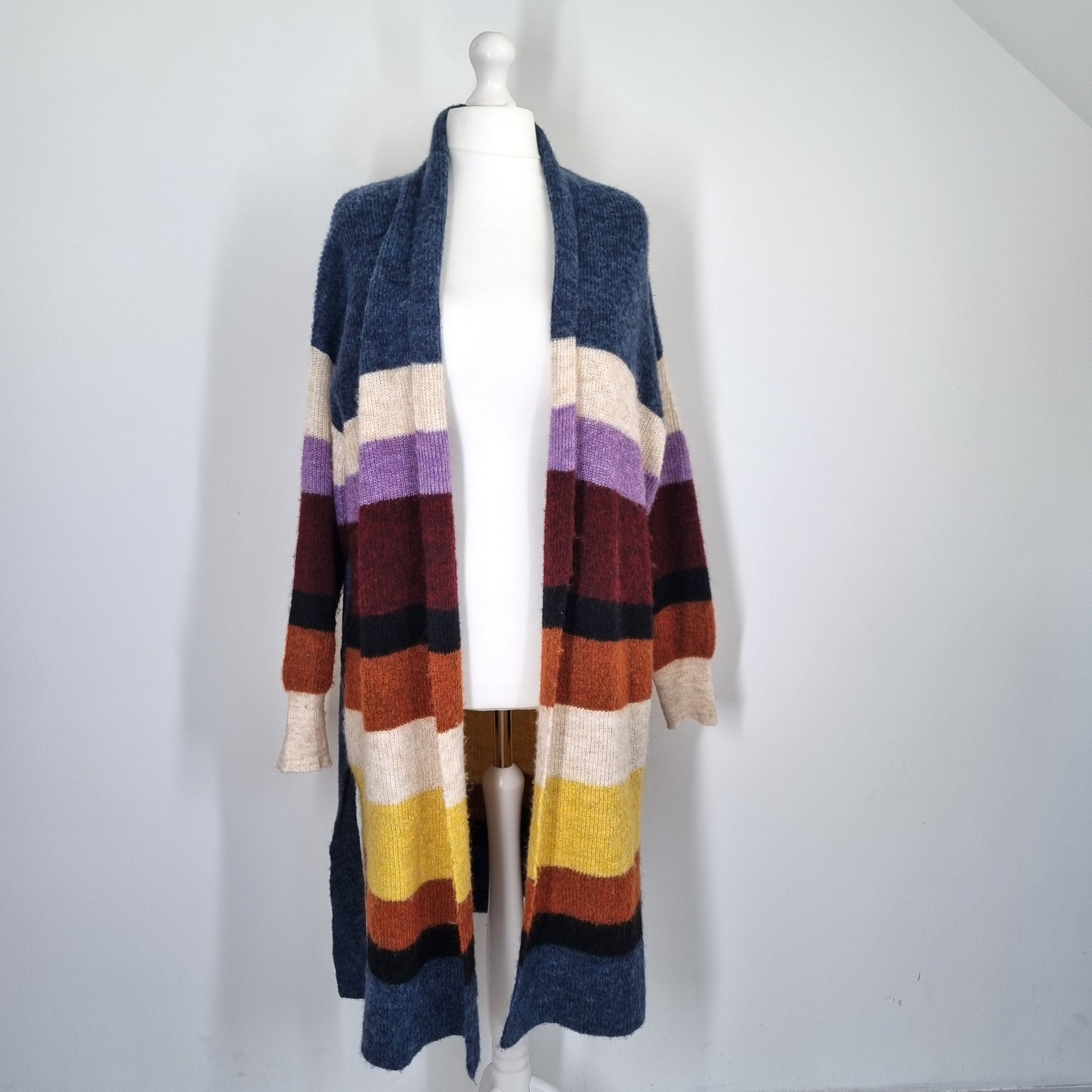 Next Long Cardigan - Belted - Multicoloured - Pockets - Striped - Chunky Knit - Below Knee Length