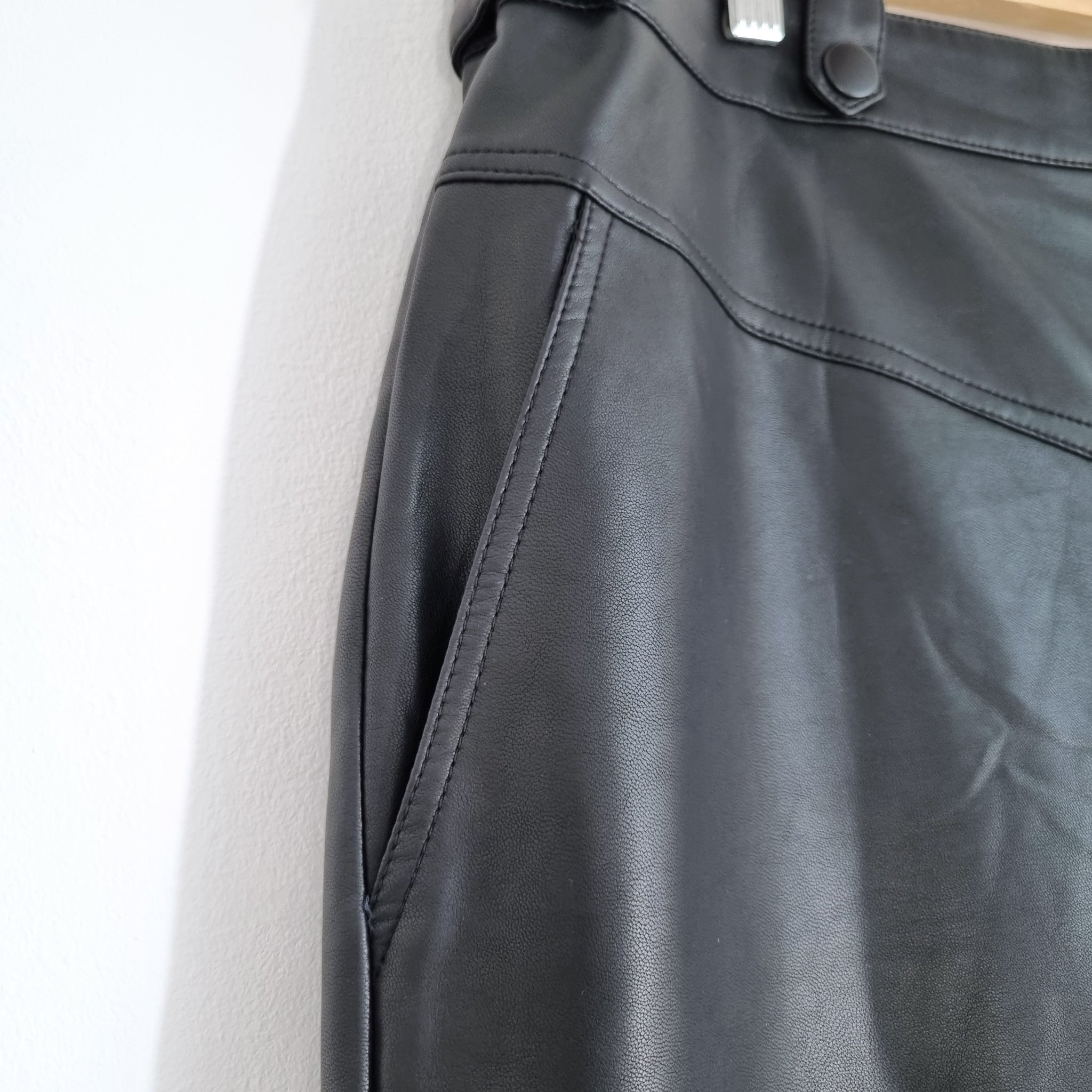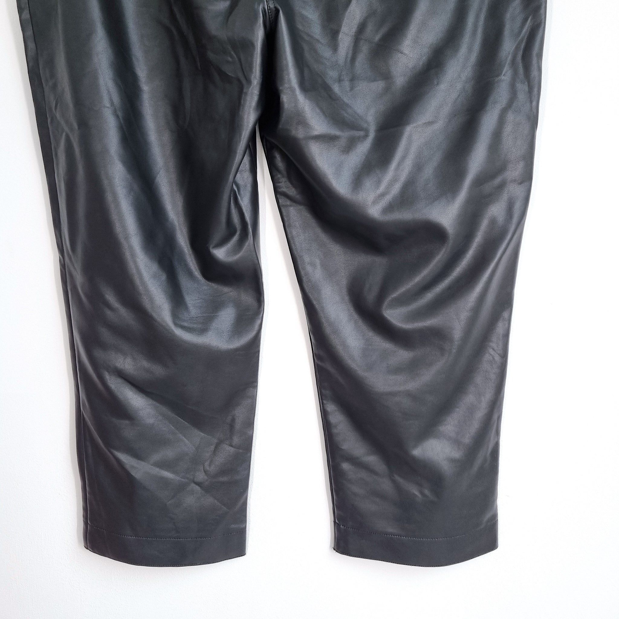 Oliver Bonas Trousers -Buttery Faux Leather - Black - Slightly Tapered Wide Leg - Pockets - High Rise