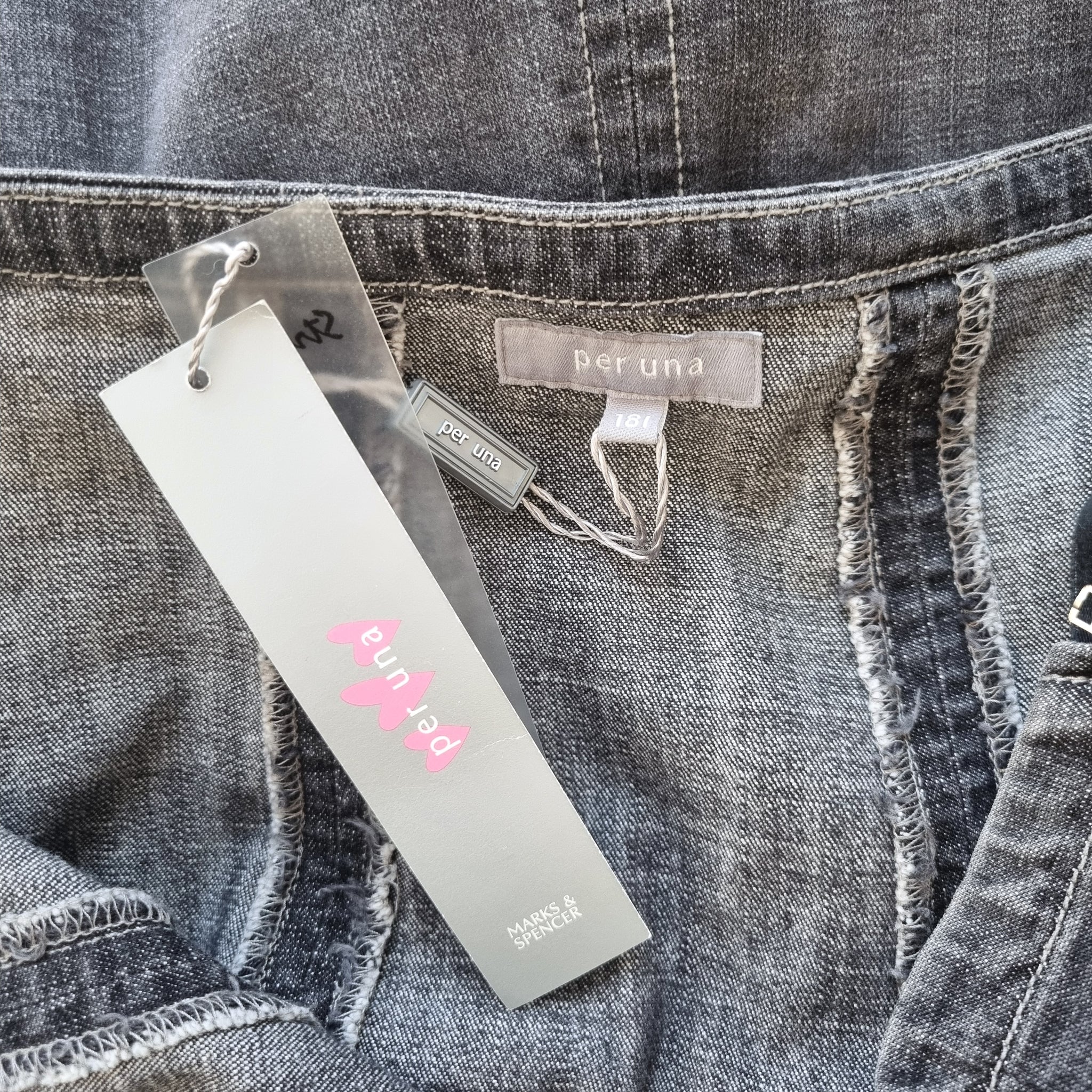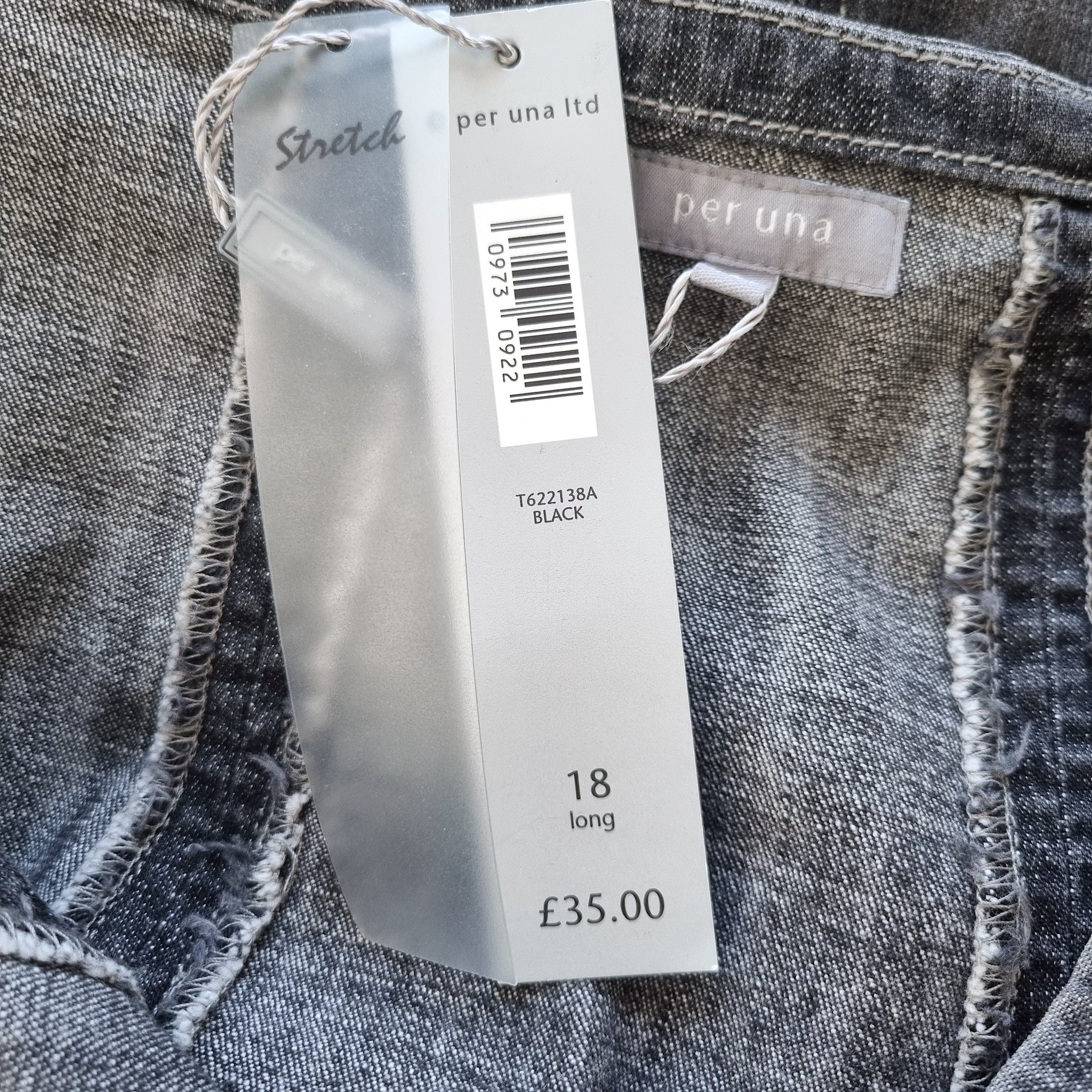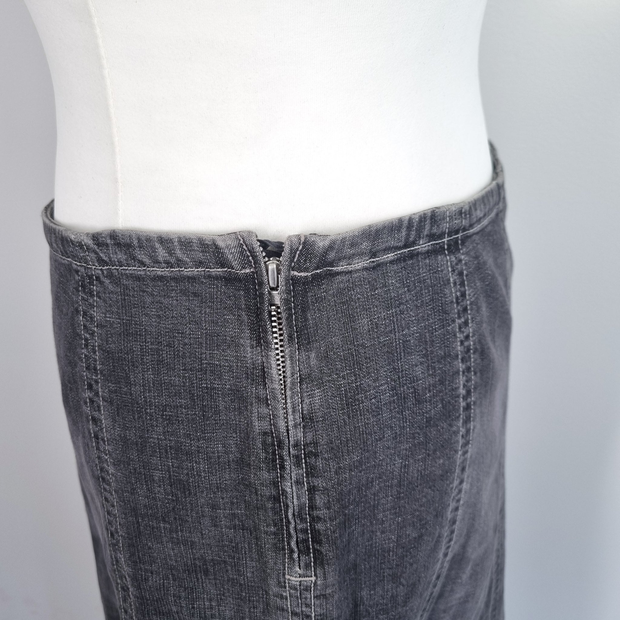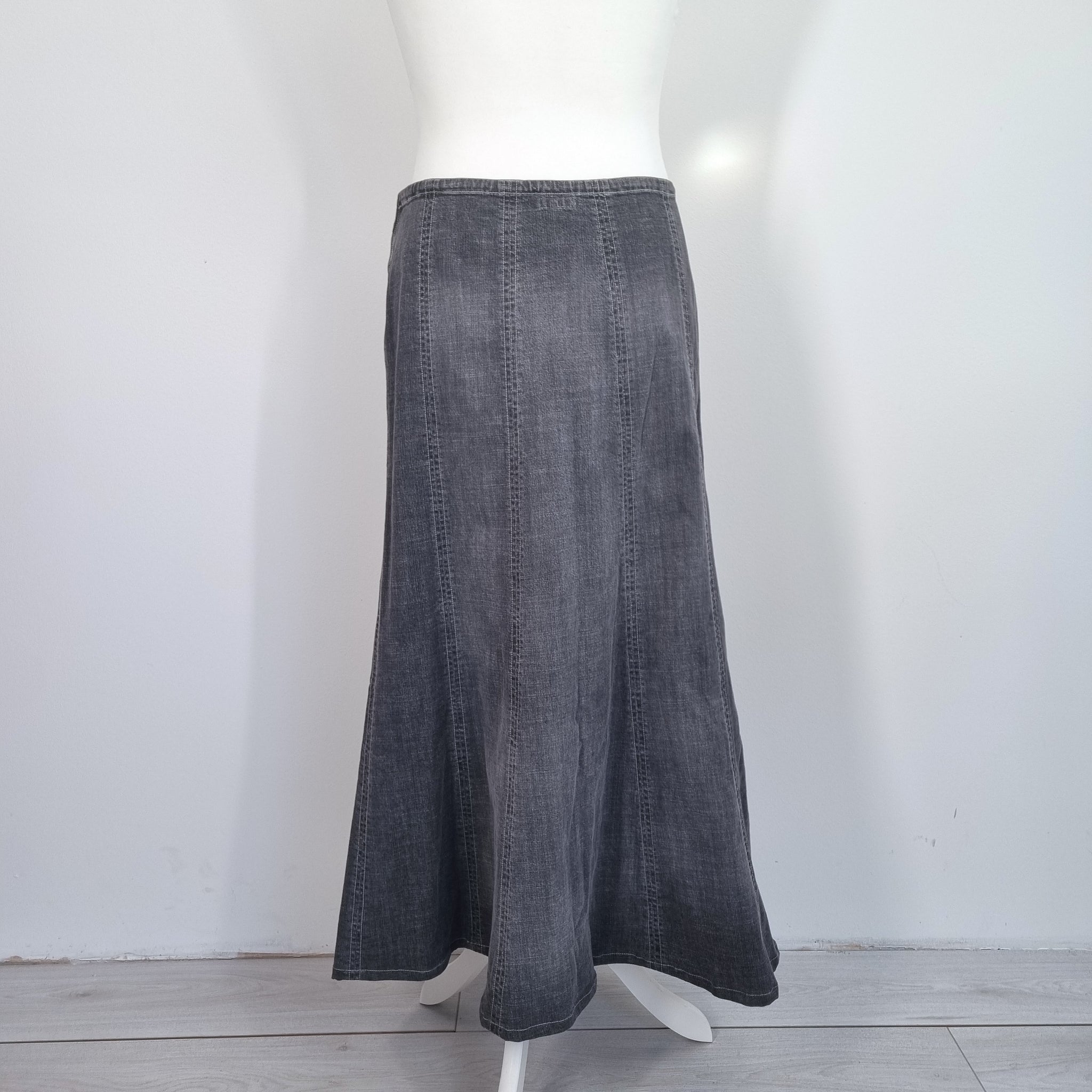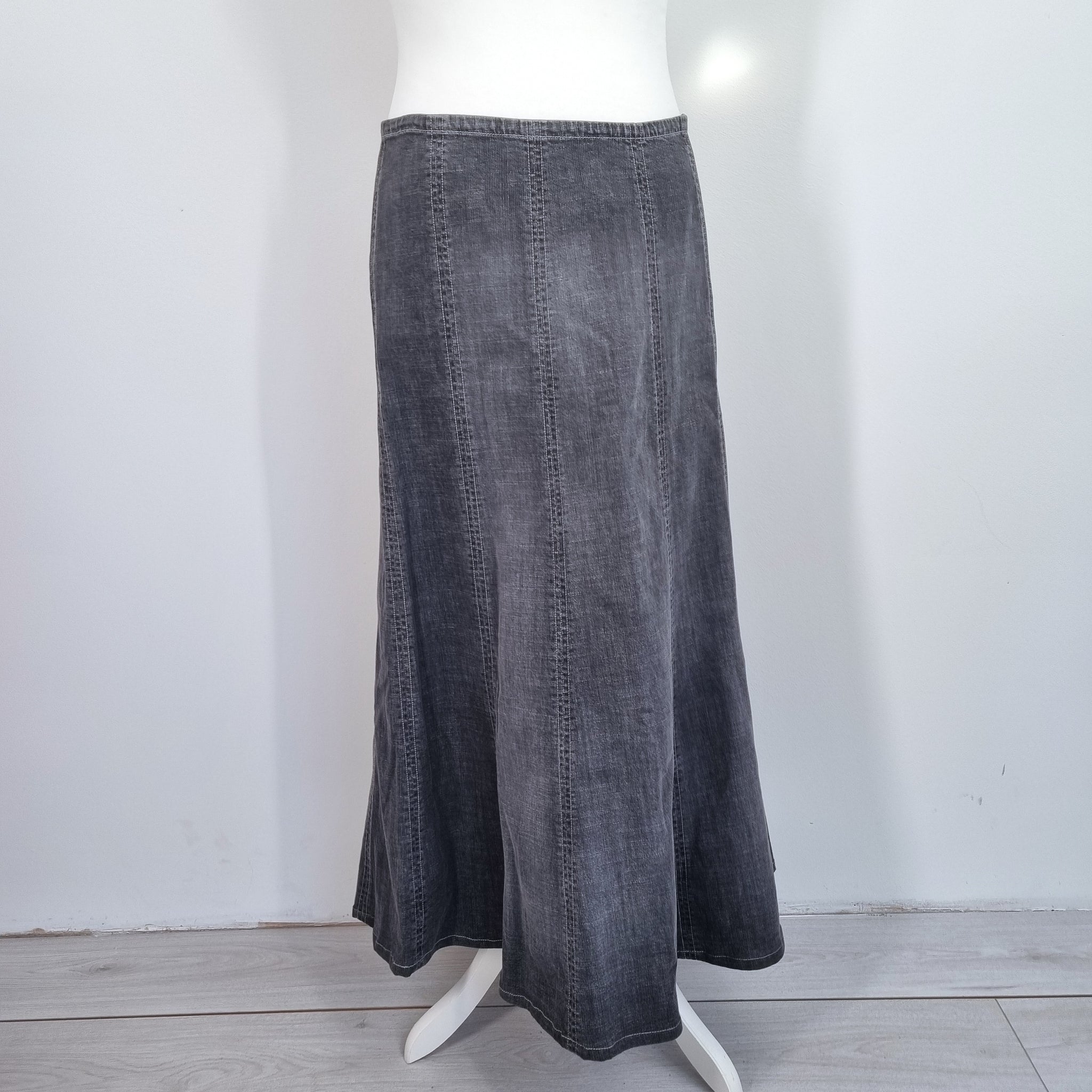 M&S Per Una Denim Skirt - Maxi - Faded Black / Grey - A Line - Panelled - Stretch - Side Zip Fastening
