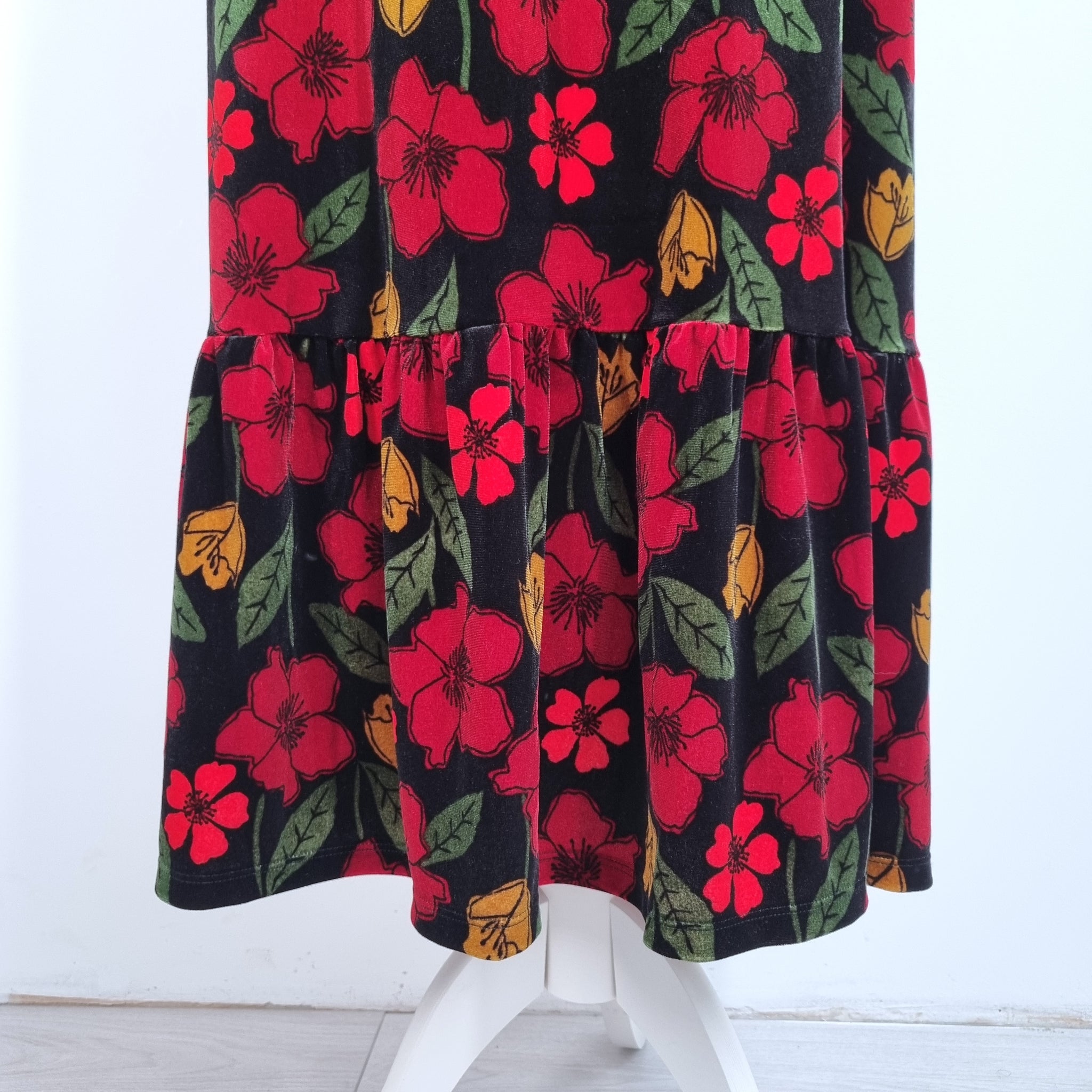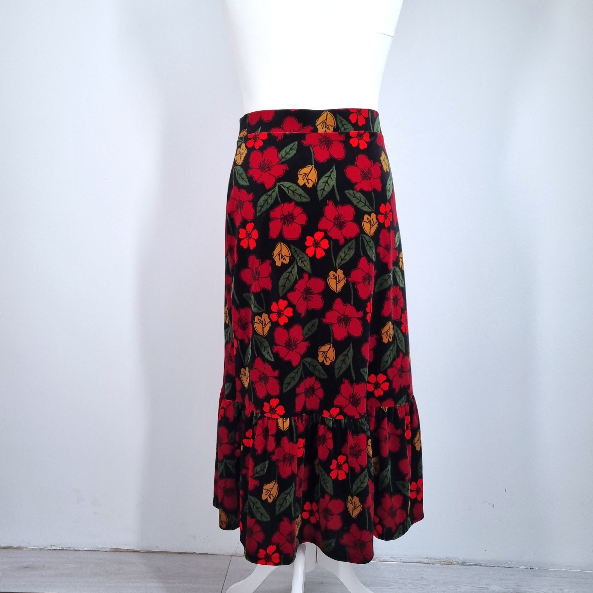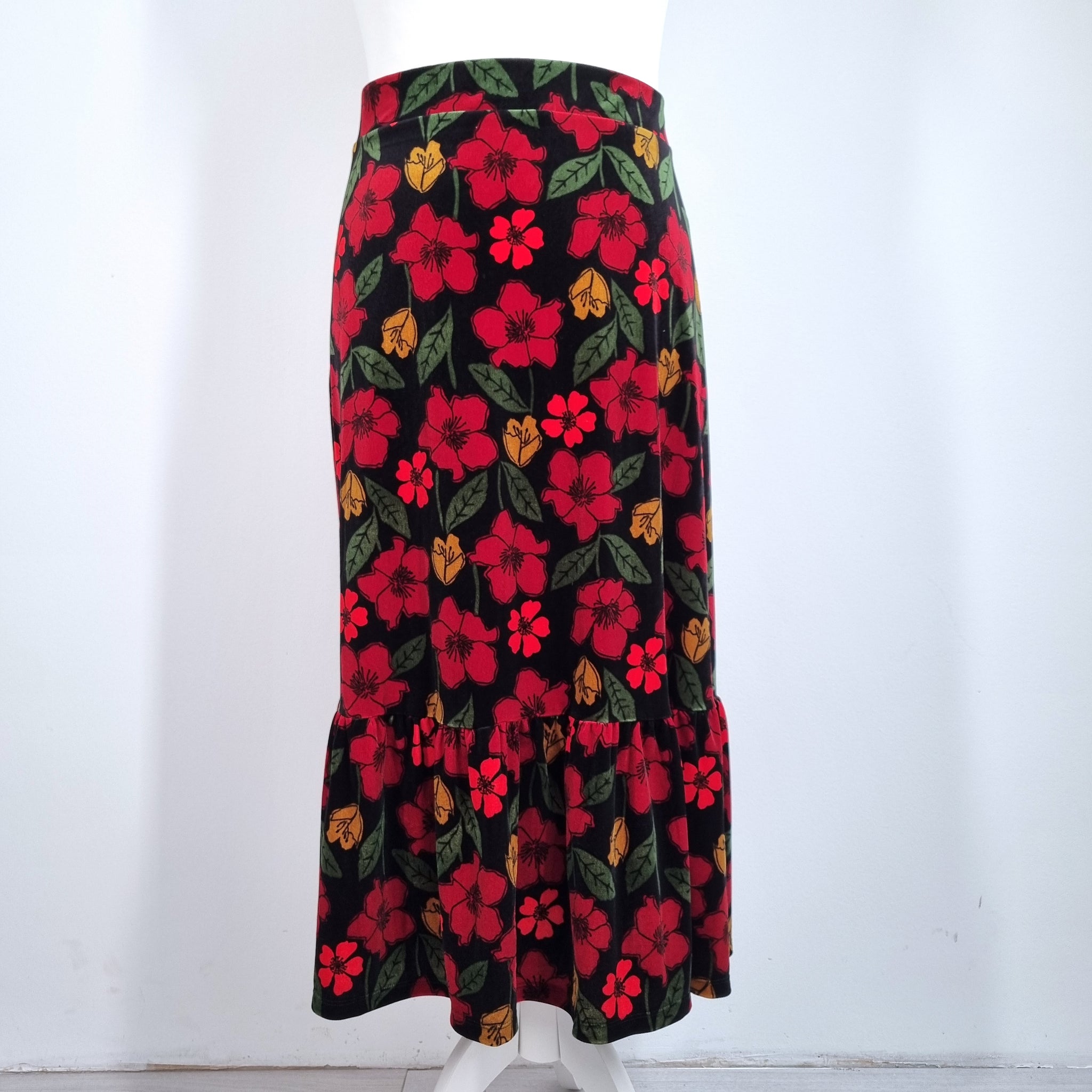 Seasalt Cornwall Velvet Skirt UK 20 Wildflower Print Maxi Black Red Christmas