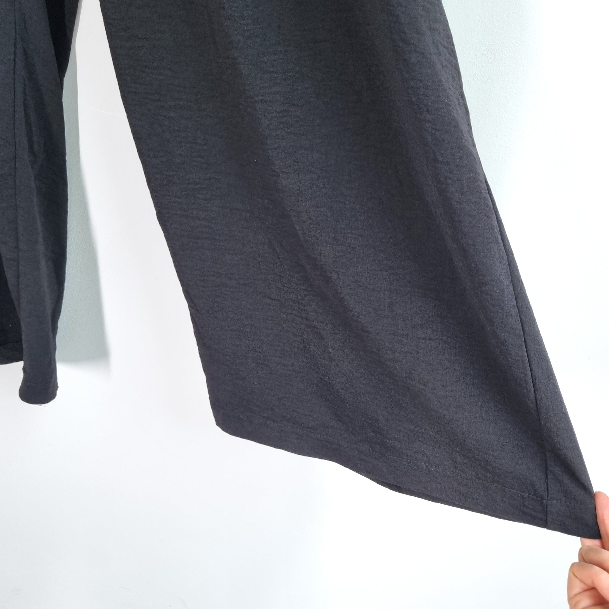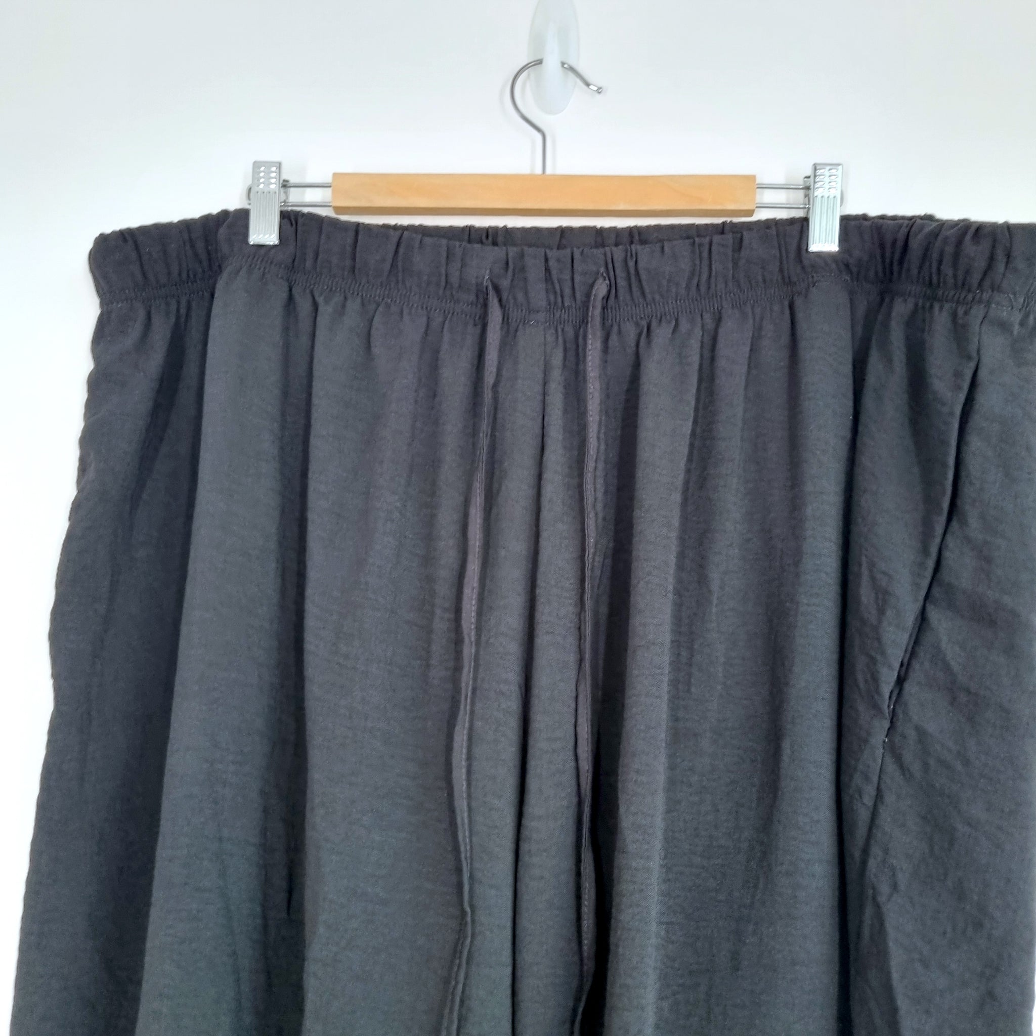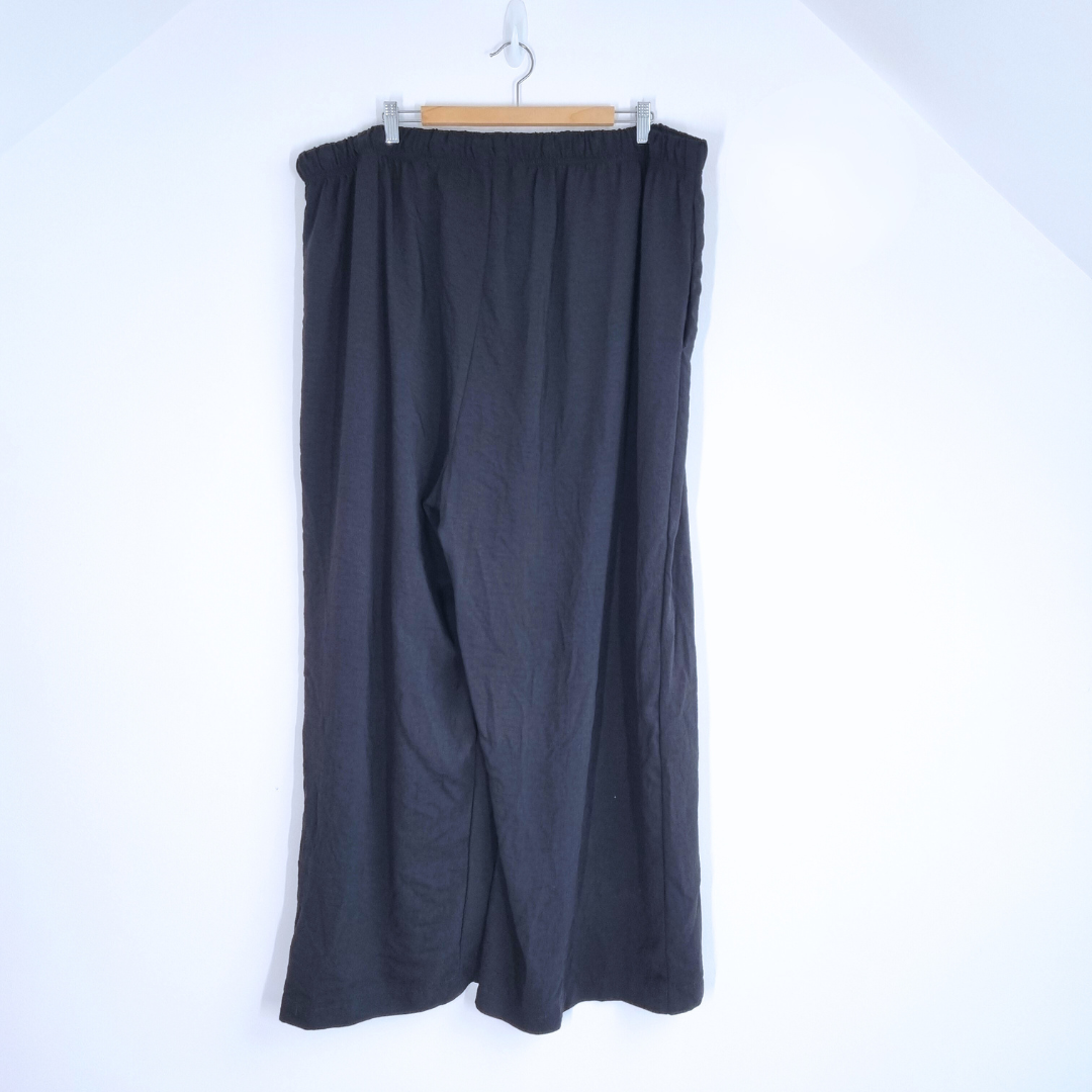Yours Wide Leg Trousers - Black - Pockets - Elasticated Waist - High Rise - Drawstring