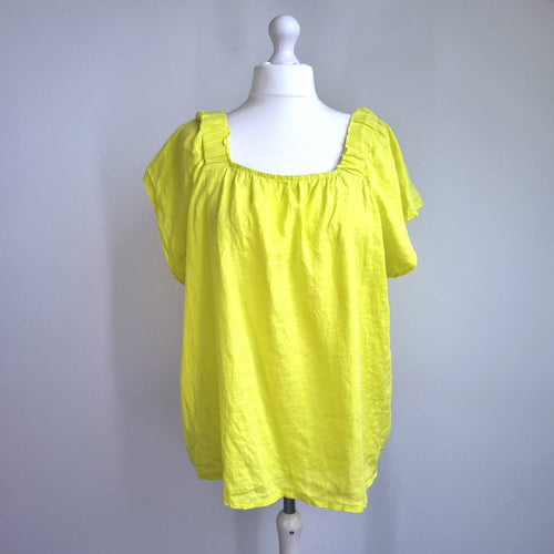 Next 100% Linen Blouse UK 20 Neon Yellow Top Boat Neck Short Sleeves Holiday