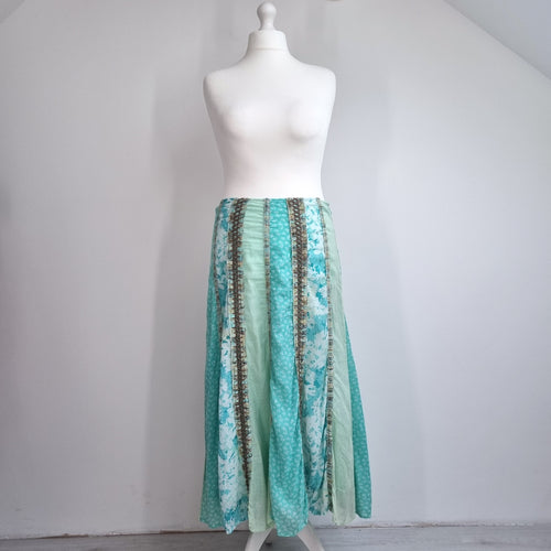 M&S Per Una Skirt Patchwork Midi 16 Turquoise Gipsy A Line Lace Up Boho Western