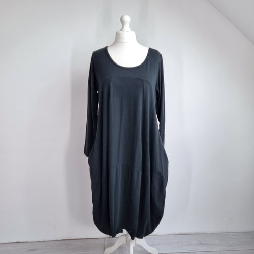 Diverse Italy Midi Dress Lagenlook One Size Balloon Black Pockets Jersey Cotton