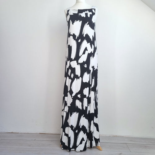 Phase Eight Maxi Dress 12 Jersey Black White Print Viscose Stretch Casual Party