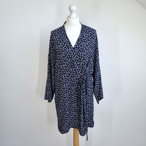 Vintage St Michael Robe Dressing Gown Fits 10-12 Short Ditsy Floral Wrap 90s