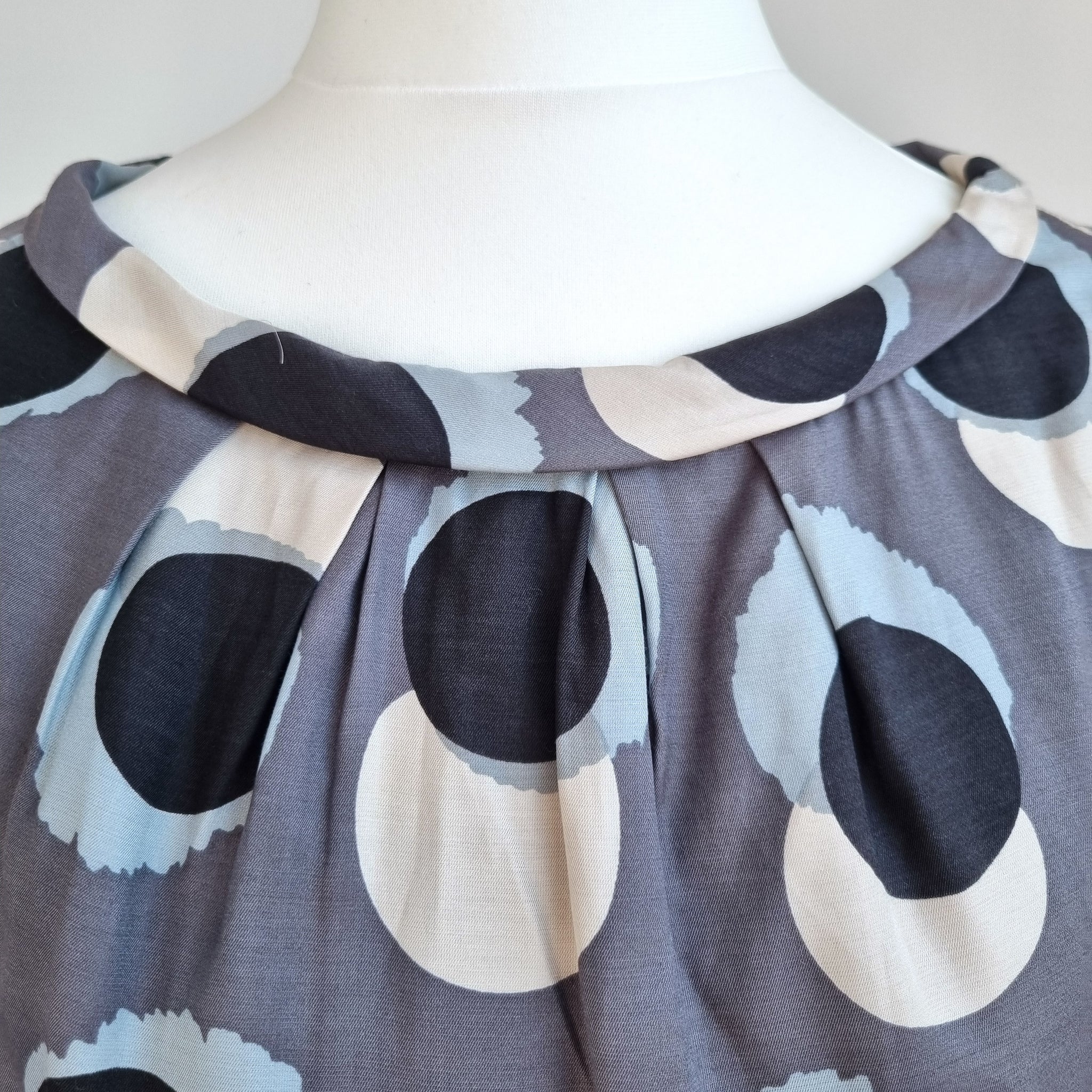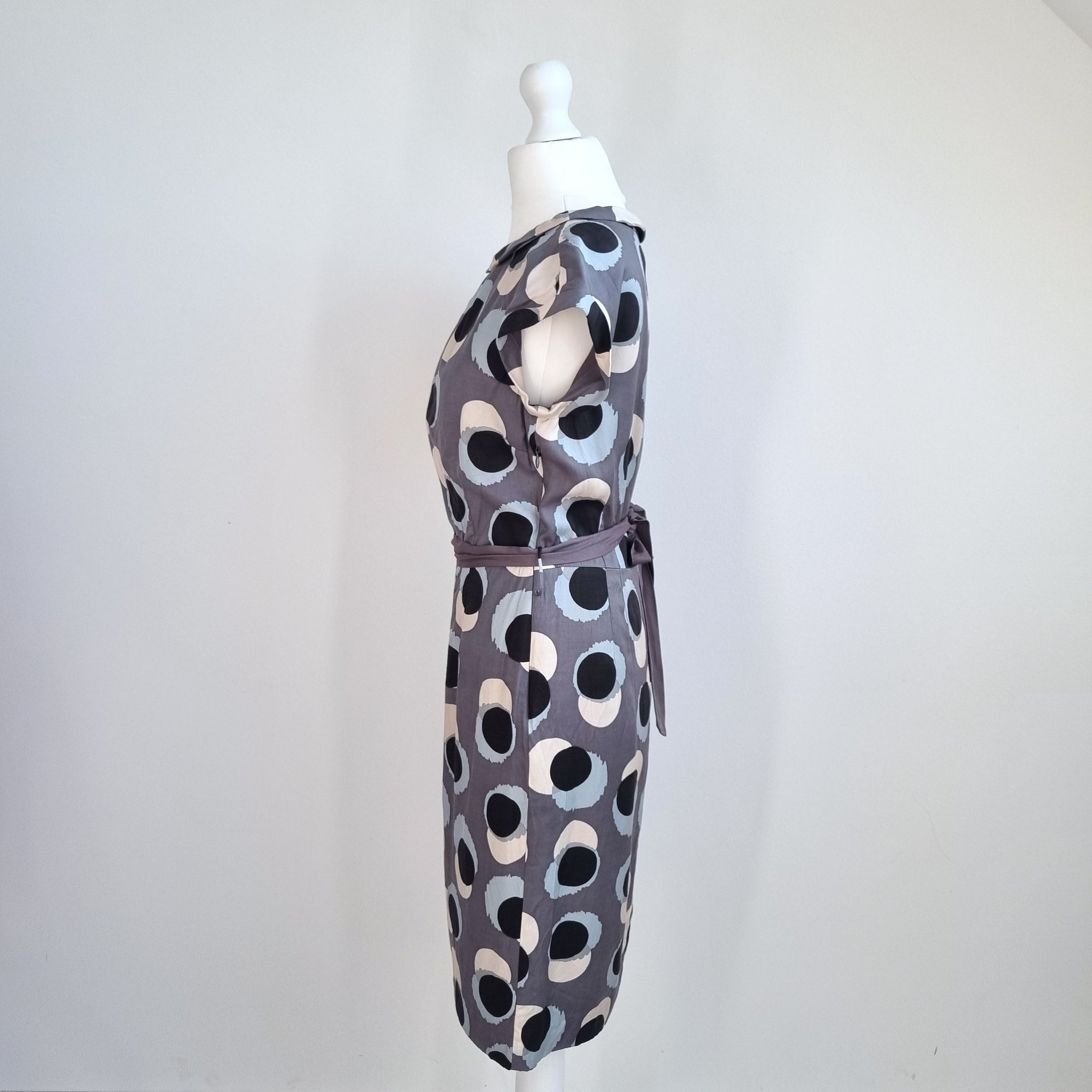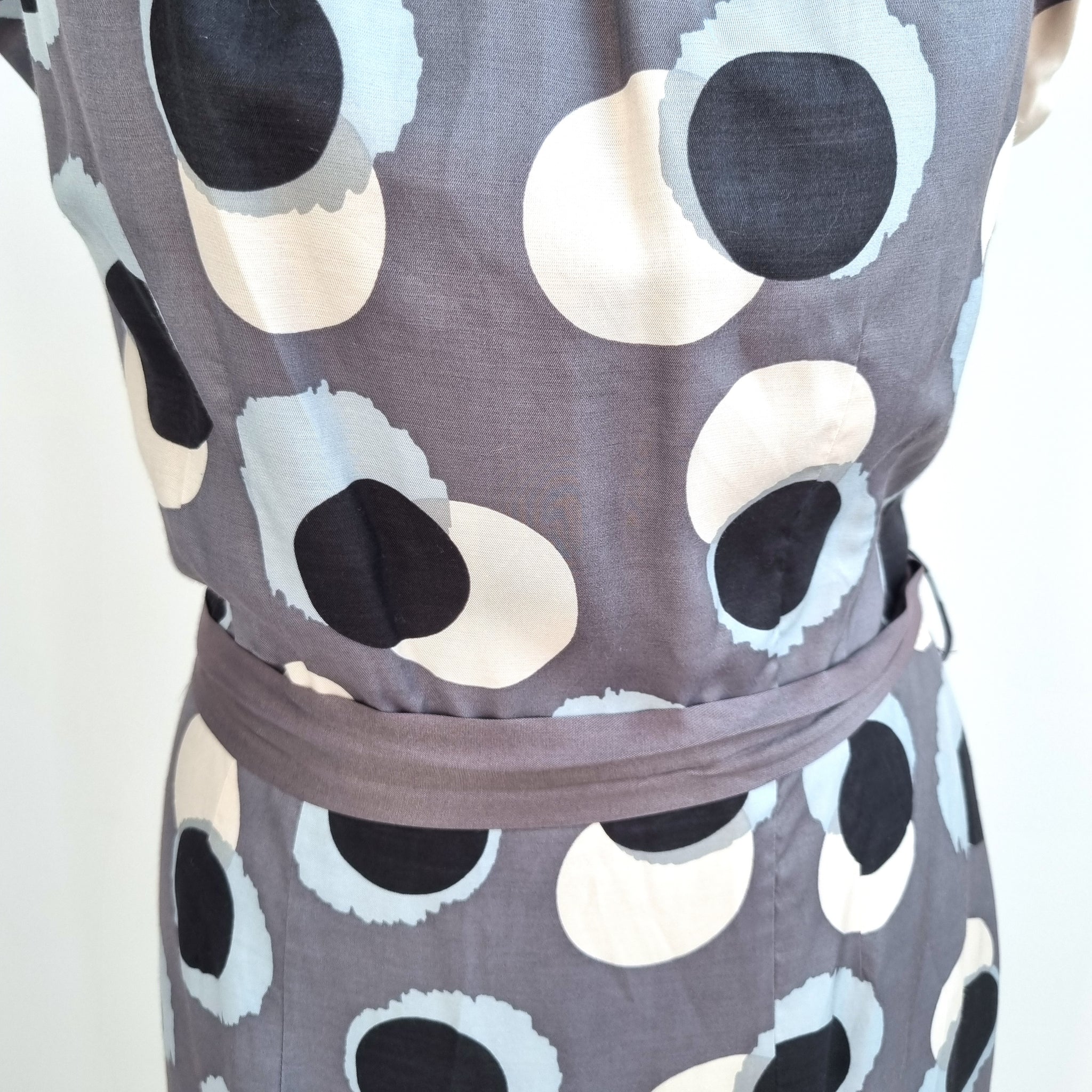 Boden Shift Dress - Grey - Viscose (63%) & Silk (37%) Blend - Knee Length - Polka Dot - Cap Sleeve - Belted - Lined