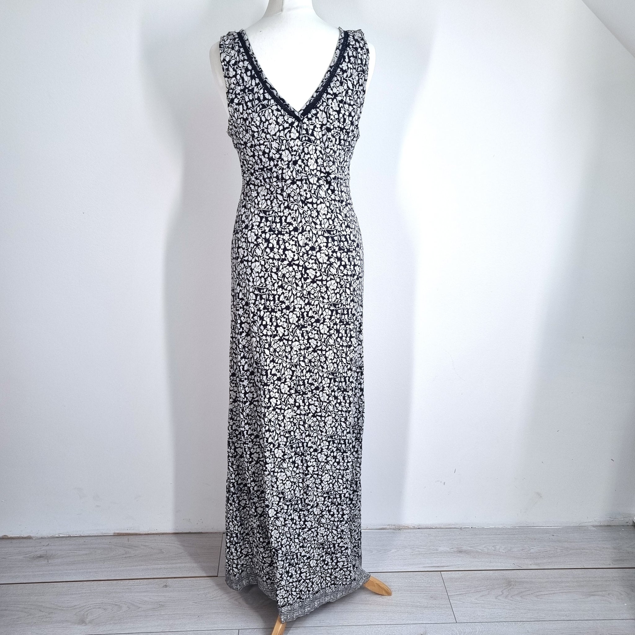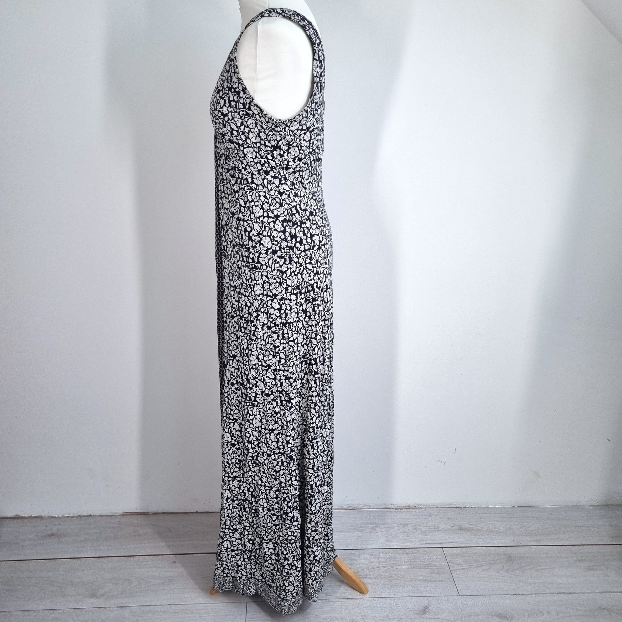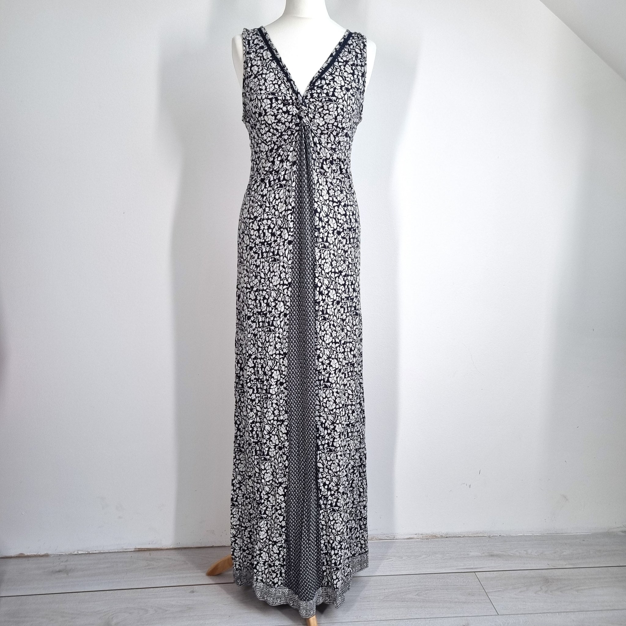 Fat Face Maxi Dress - Jersey - Floral Print - Navy Blue & White - Grecian Style - Sleeveless - 100% Viscose