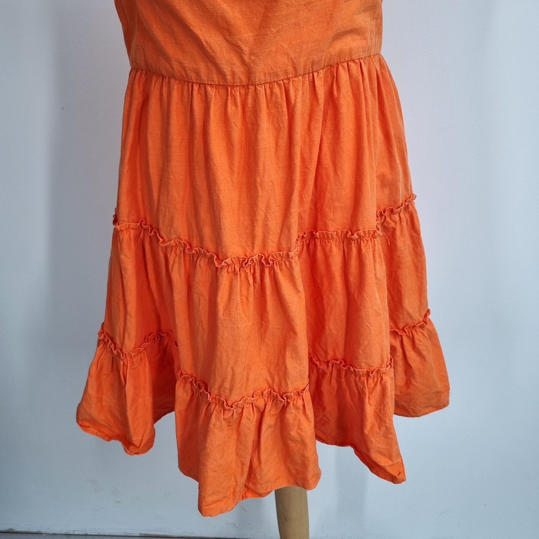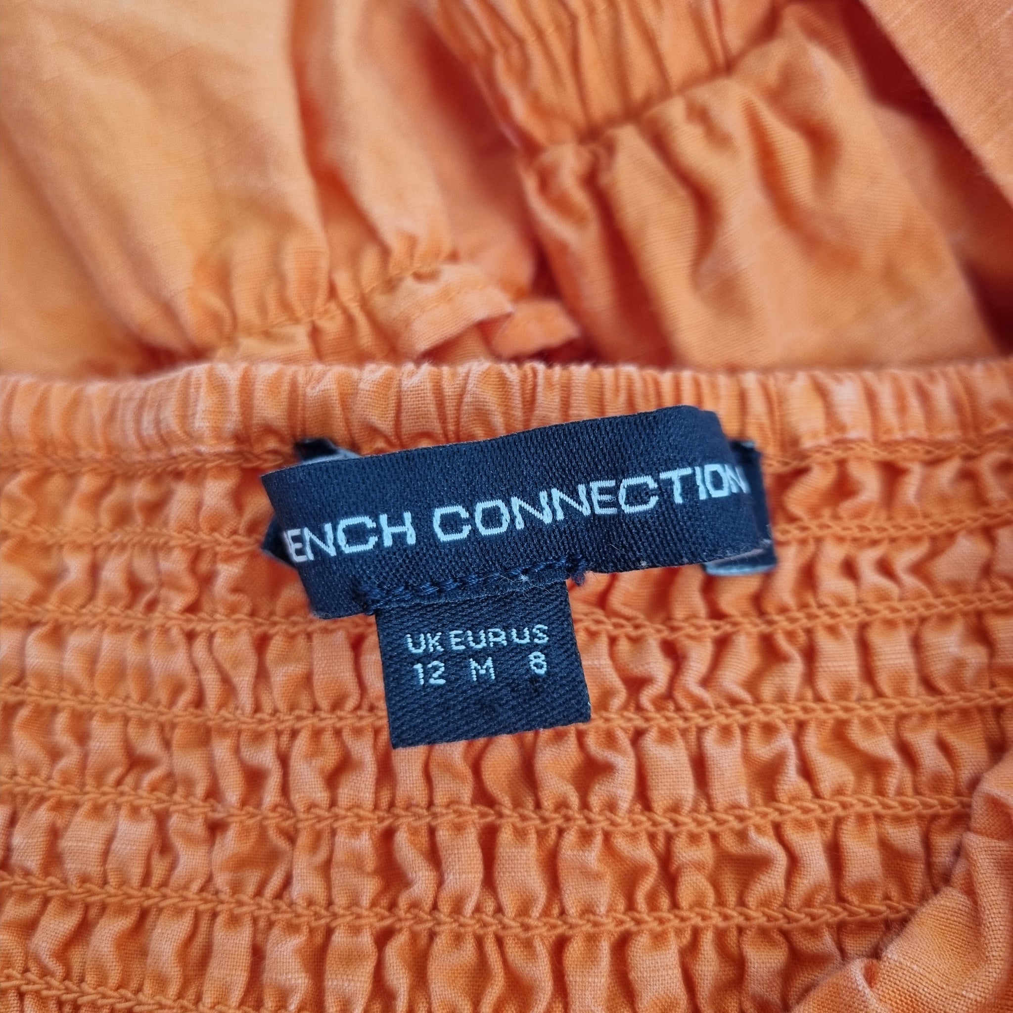 French Connection Mini Dress - Orange - Sweetheart Neckline - Tiered - 100% Cotton - Smocked Back - Puff Sleeves - Side Zip Fastening