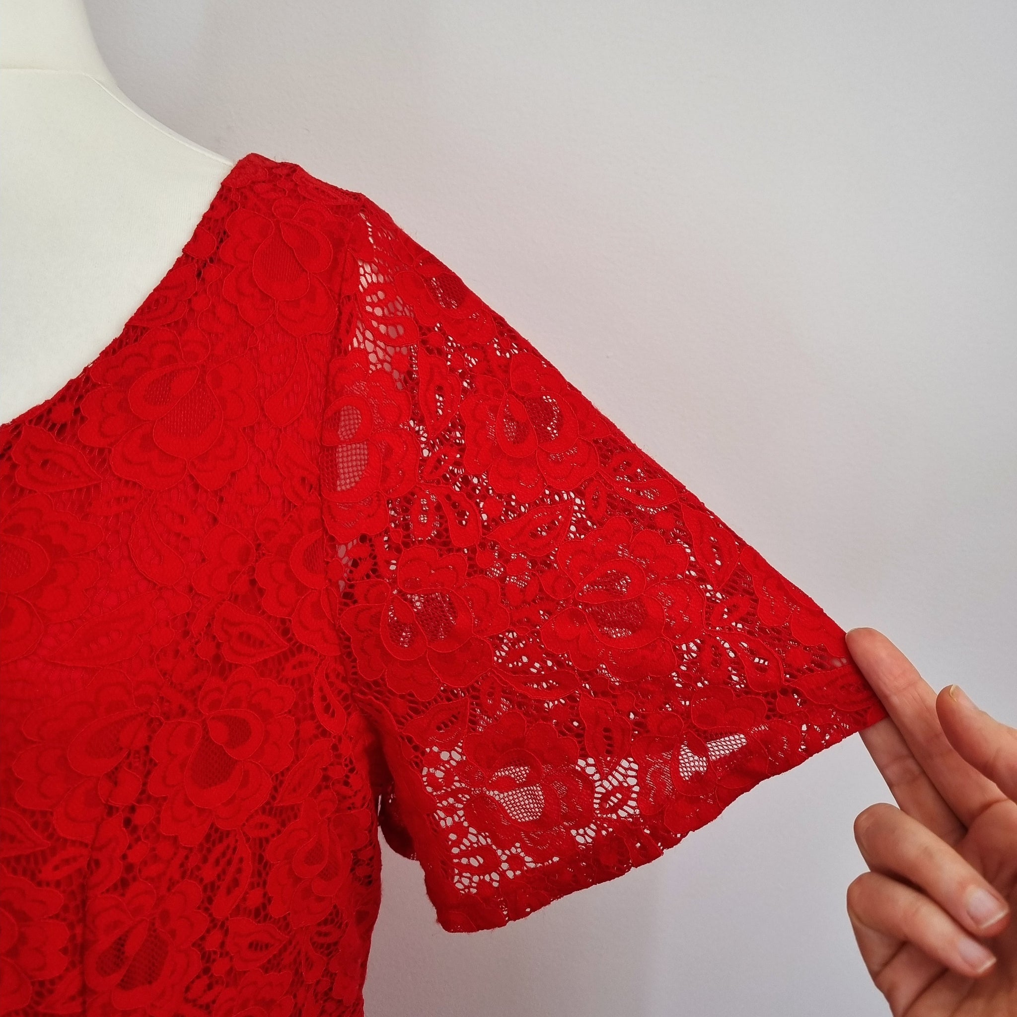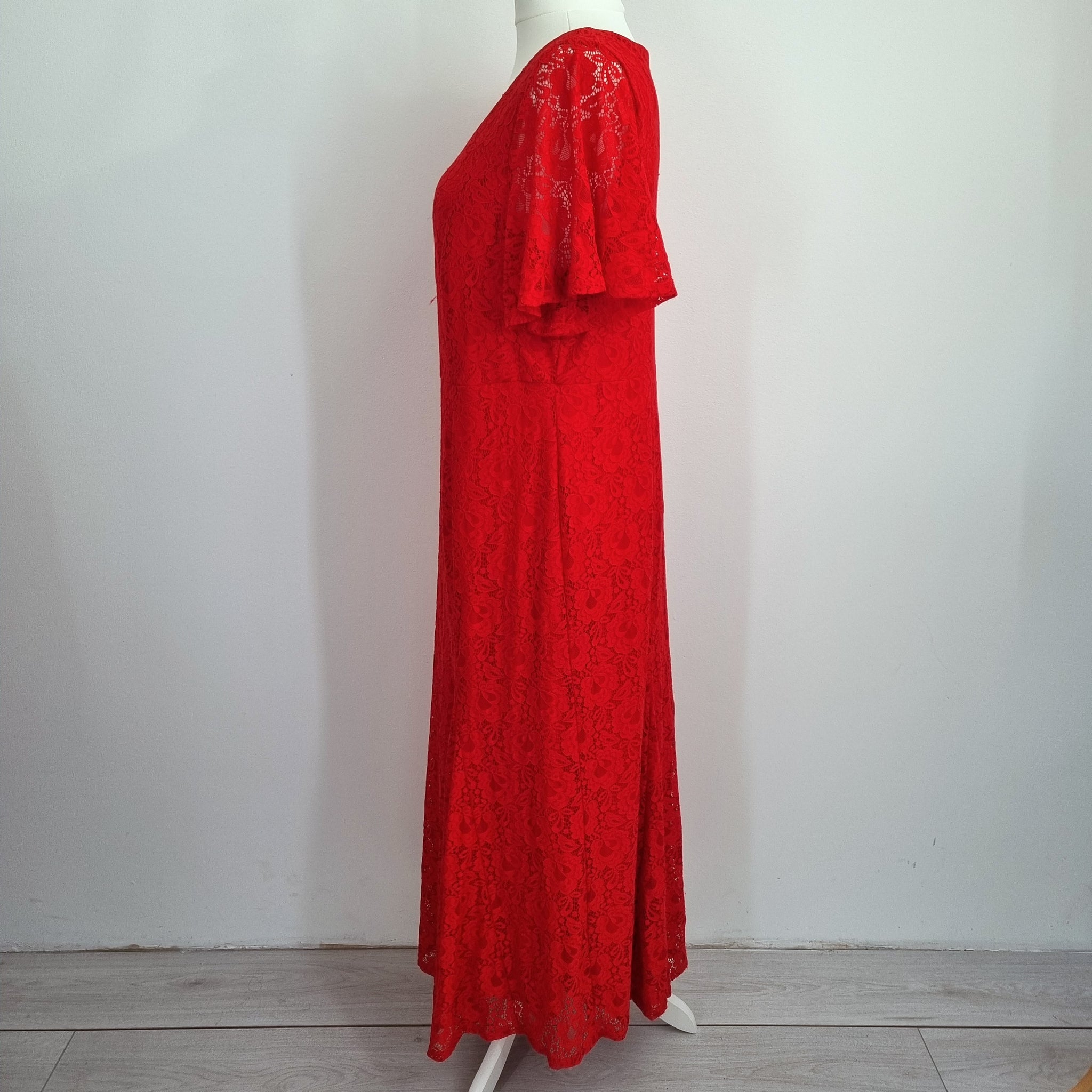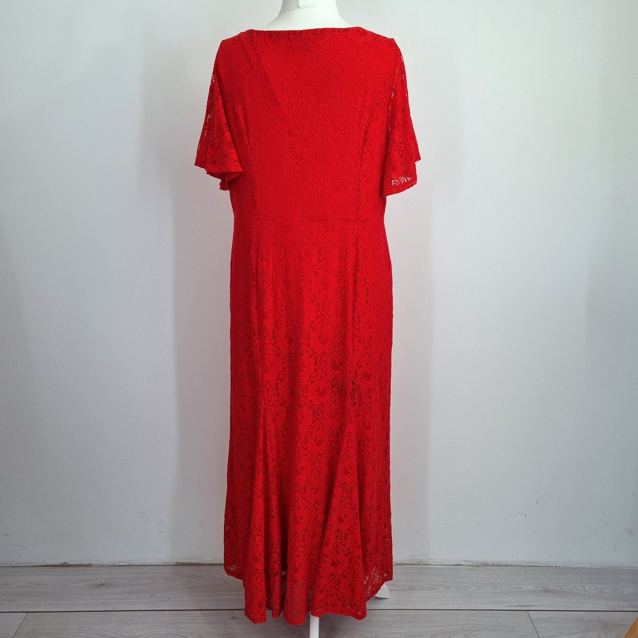 Joanna Hope Lace Dress - Red - Maxi - Lined - Floral Pattern - Short Sleeves - Scoop Neck