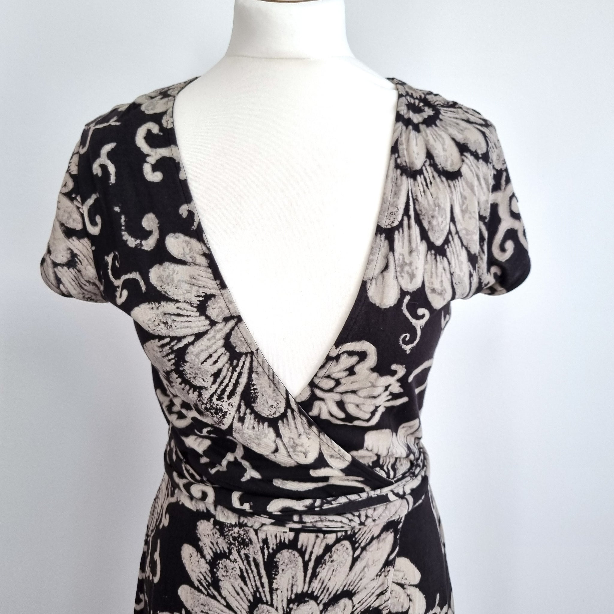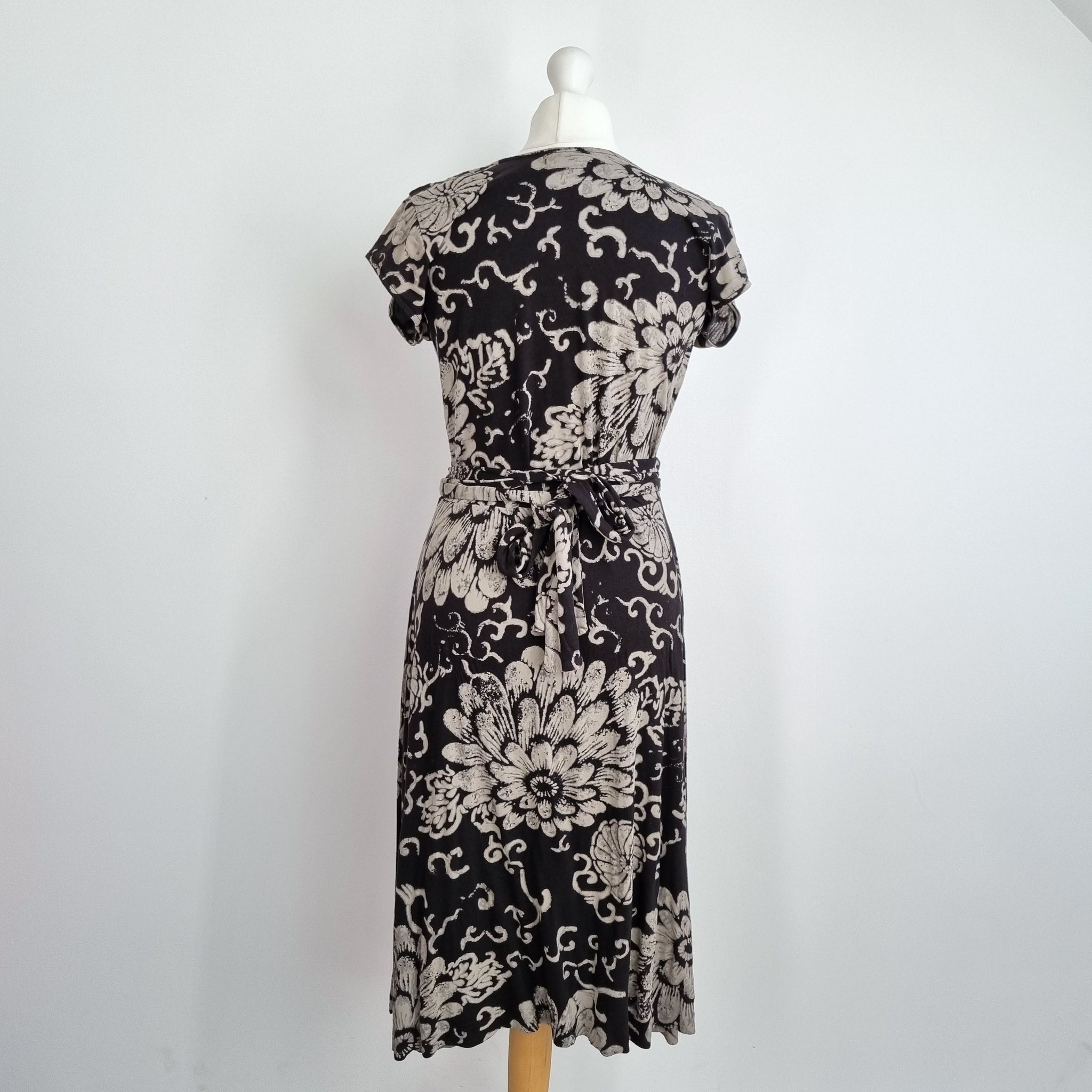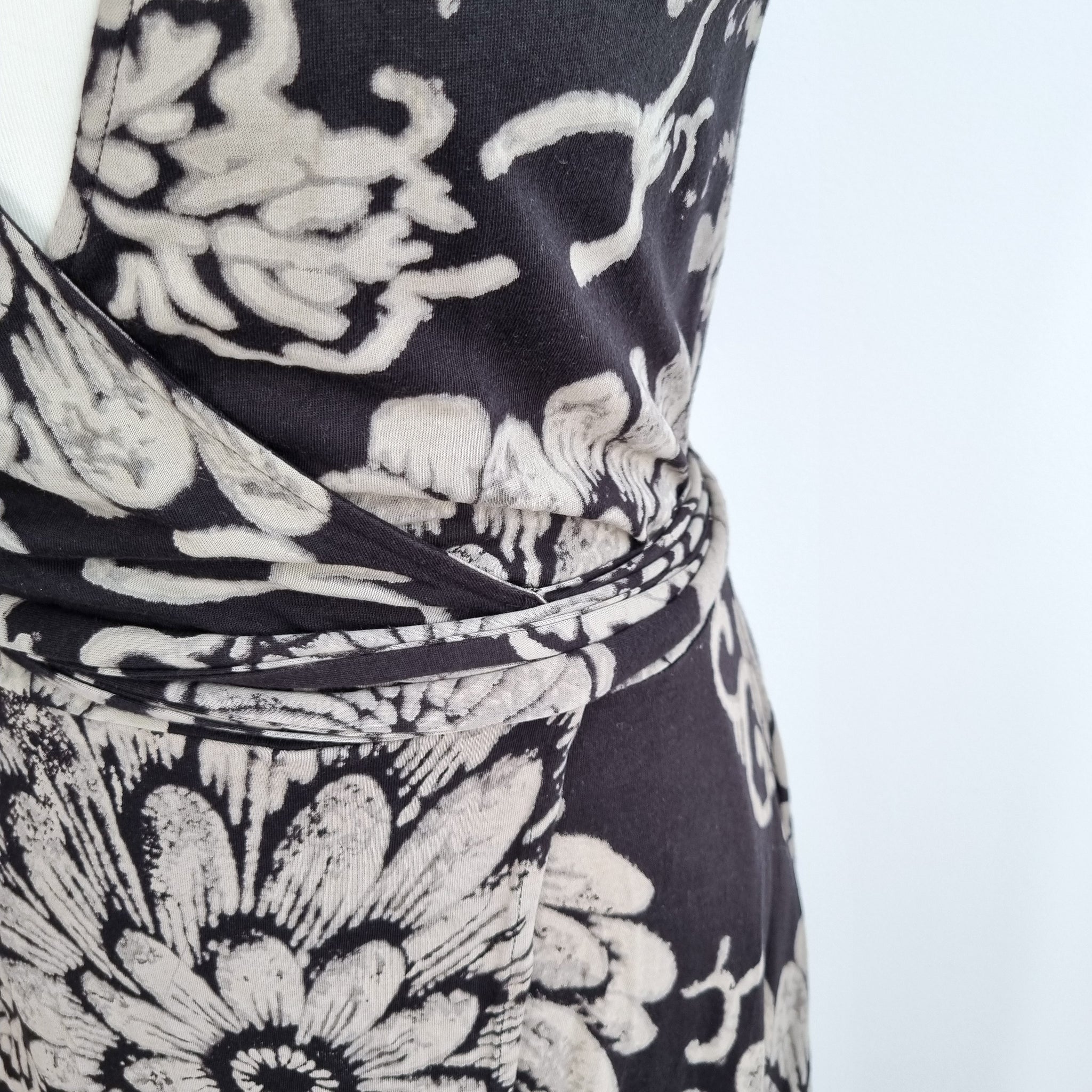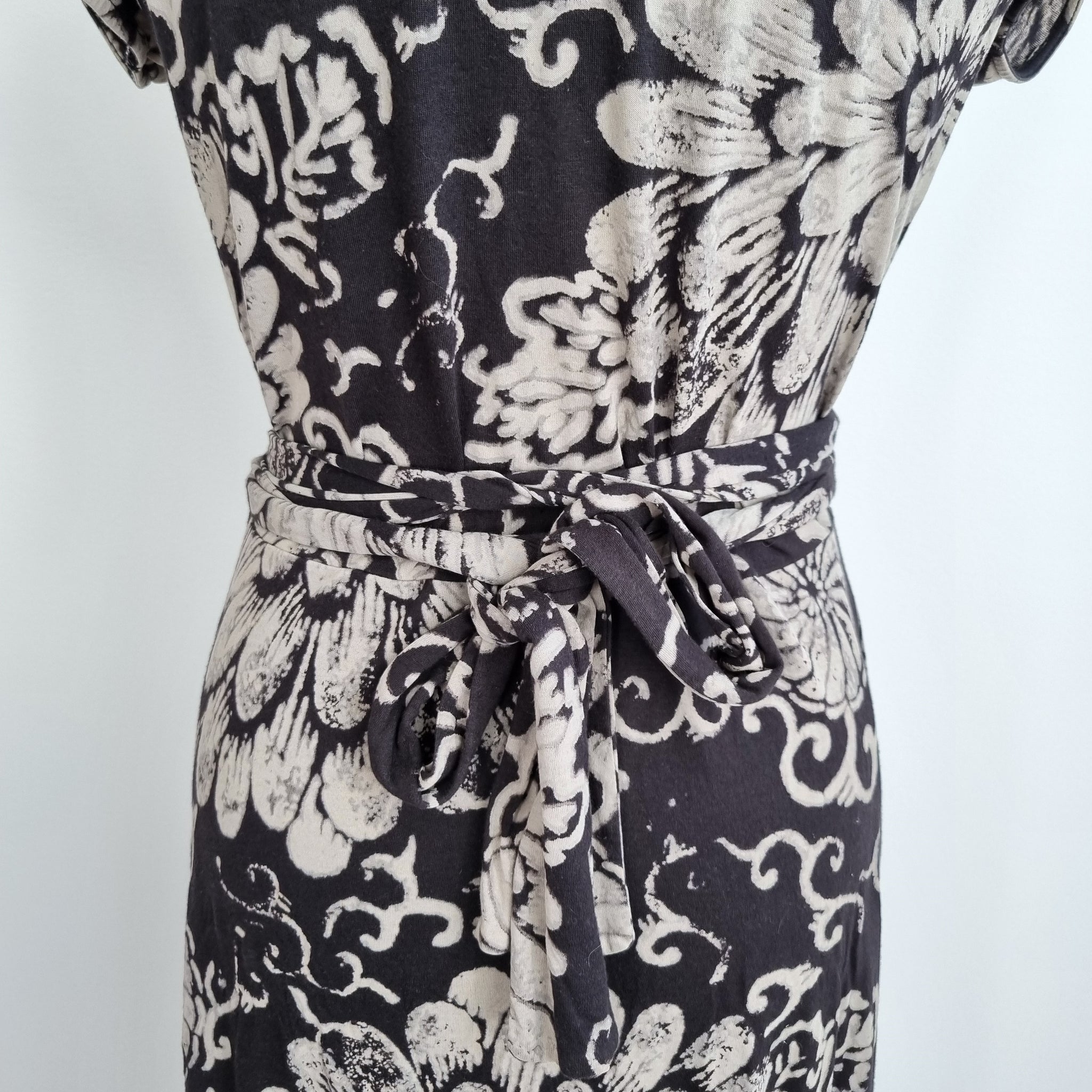 Lucky Brand Wrap Dress - Jersey - Floral Print - Black & Grey - Cotton (50%) & Modal (50%) Blend - Knee Length - Cap Sleeves - Tie Fastening