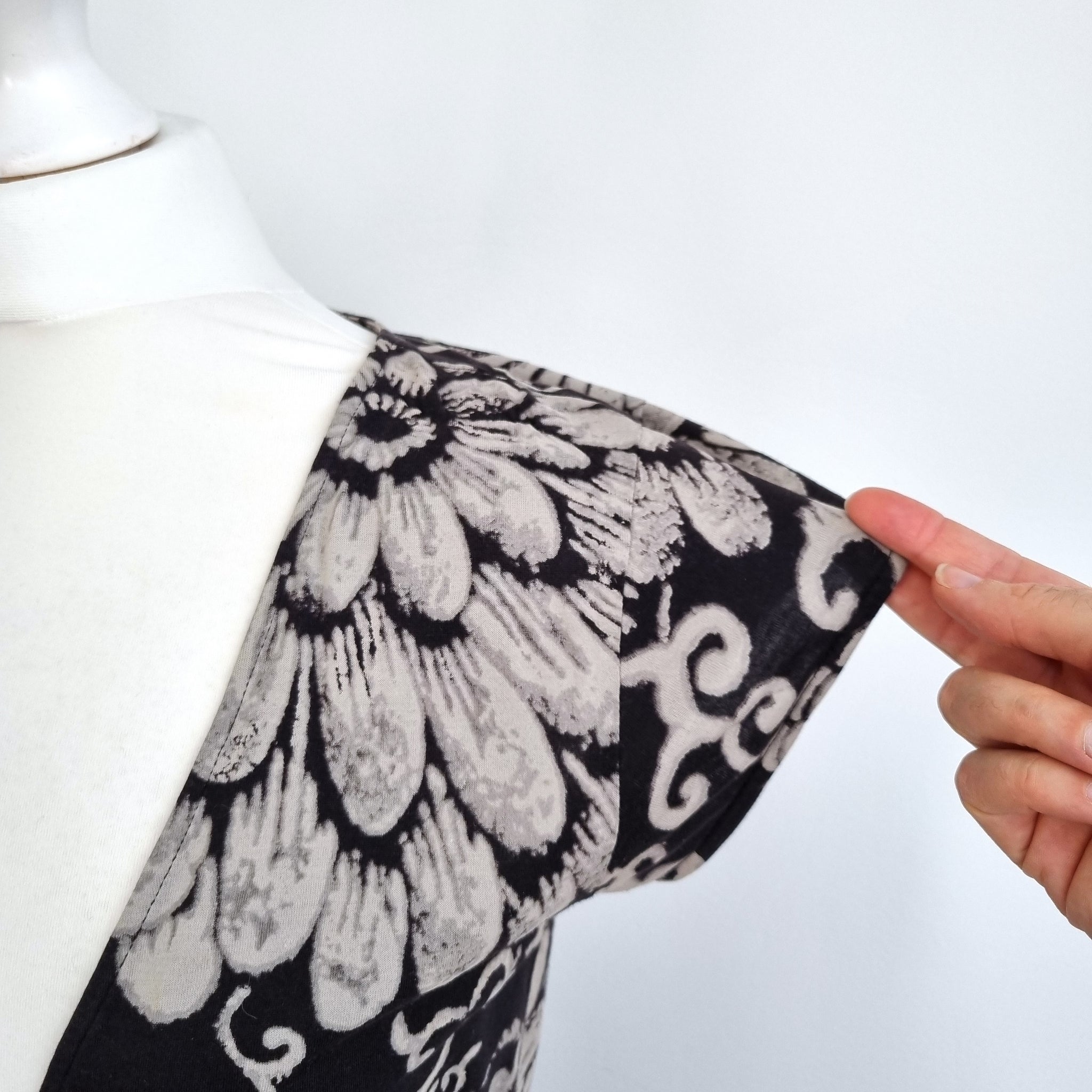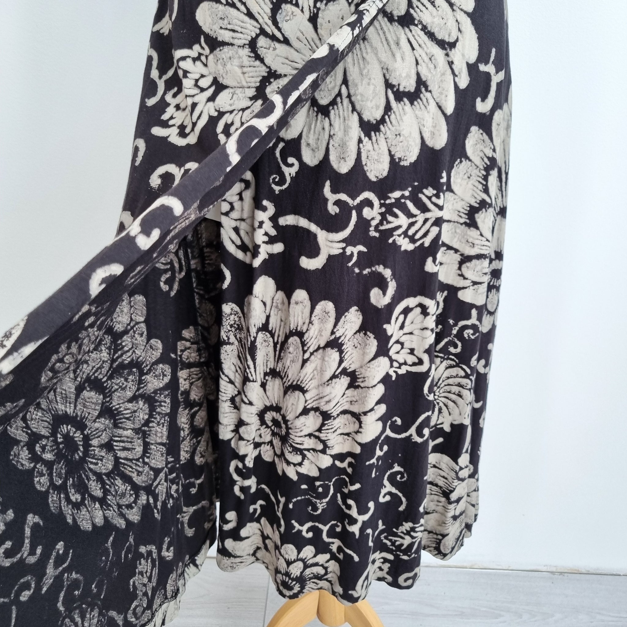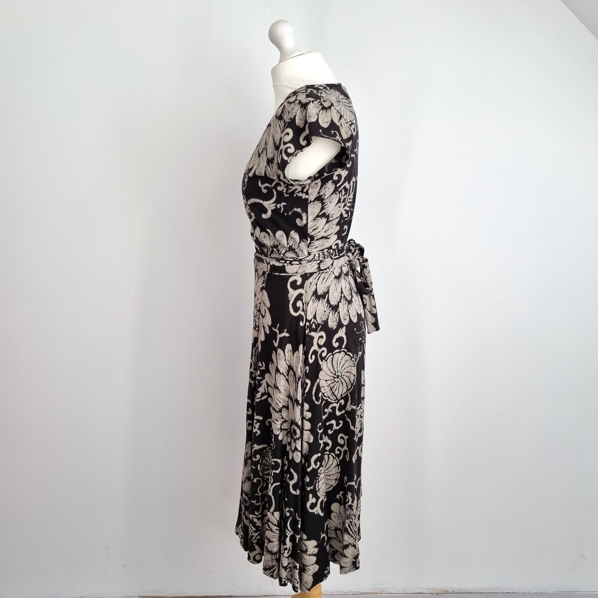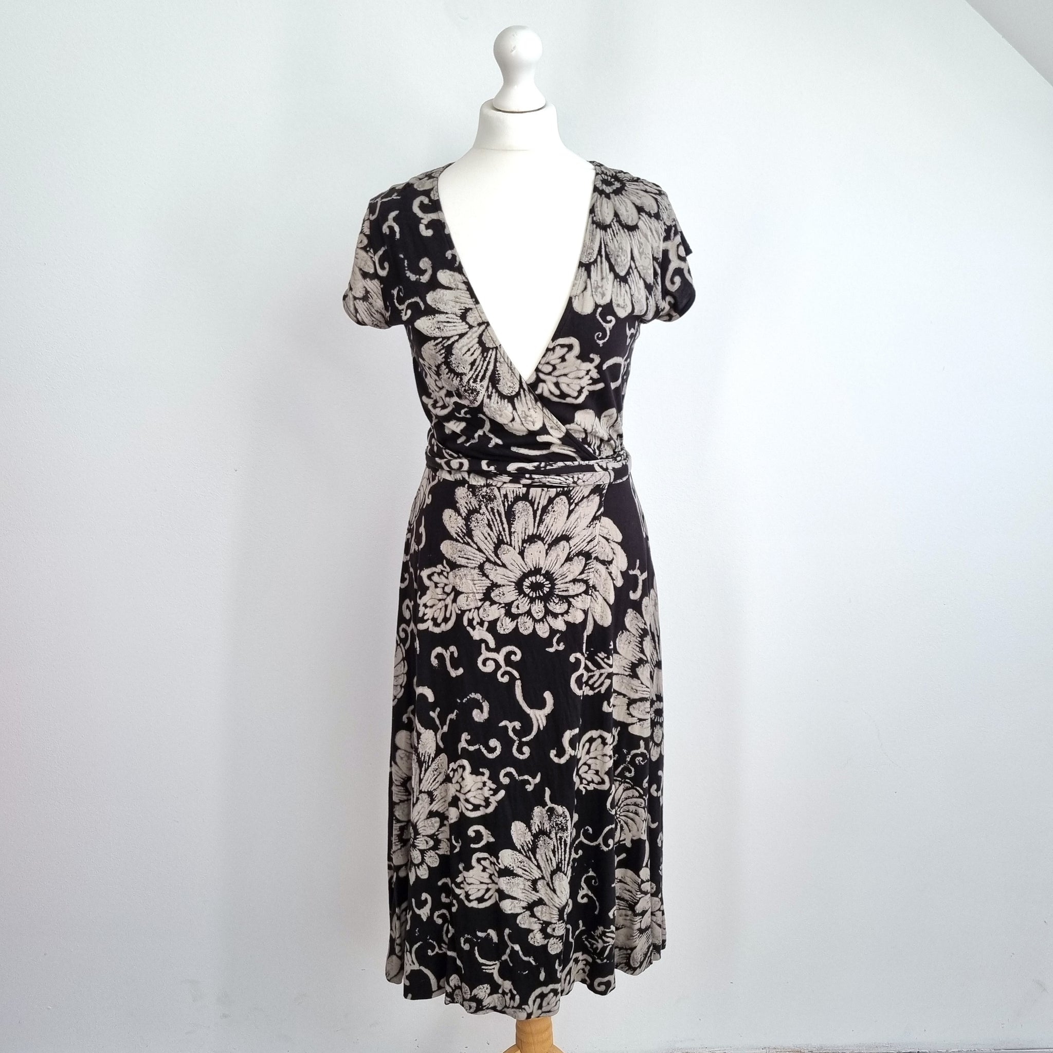Lucky Brand Wrap Dress - Jersey - Floral Print - Black & Grey - Cotton (50%) & Modal (50%) Blend - Knee Length - Cap Sleeves - Tie Fastening