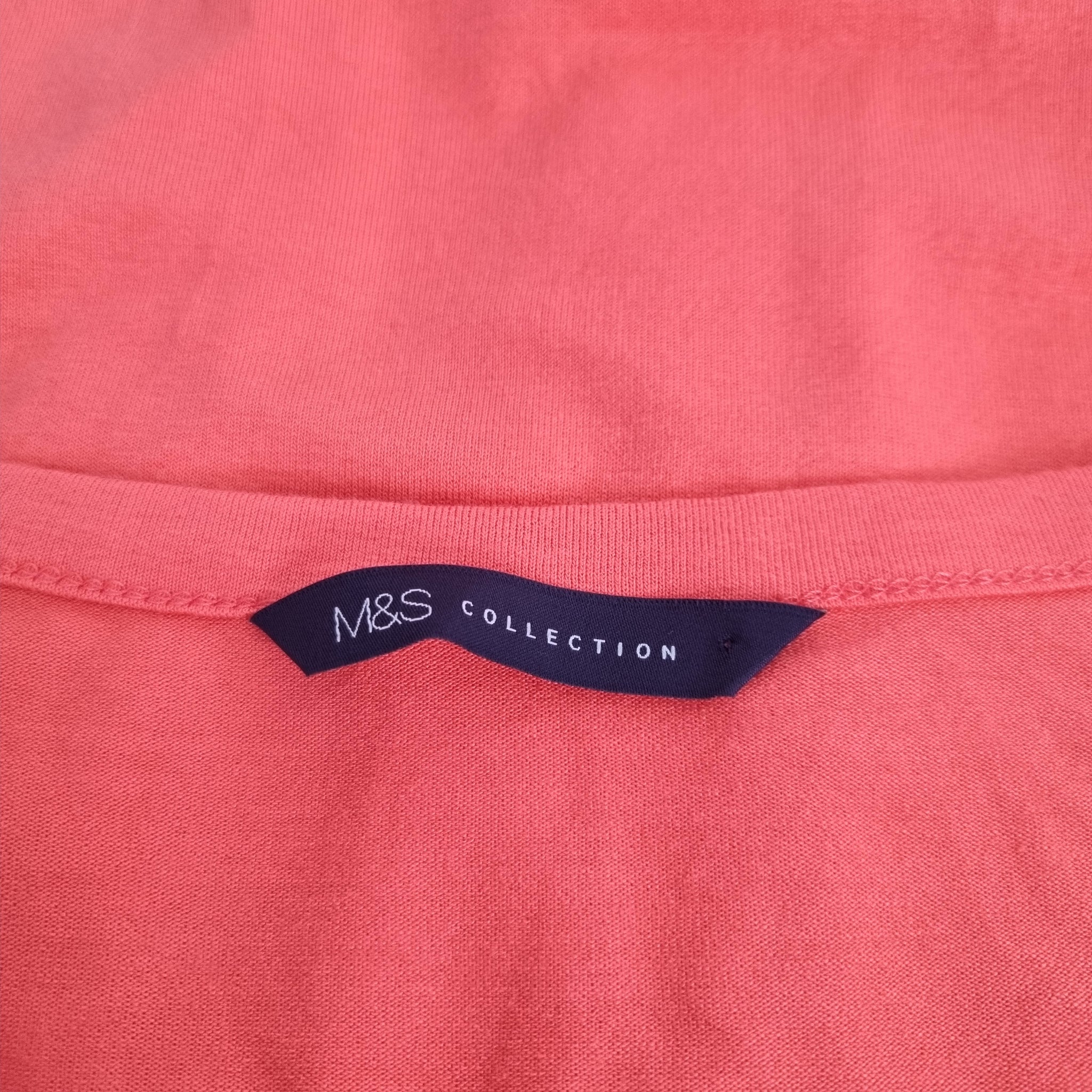 M&S T-shirt Dress - Long - Coral - Short Sleeves - Stretch - Viscose & Elastane Blend - V Neck