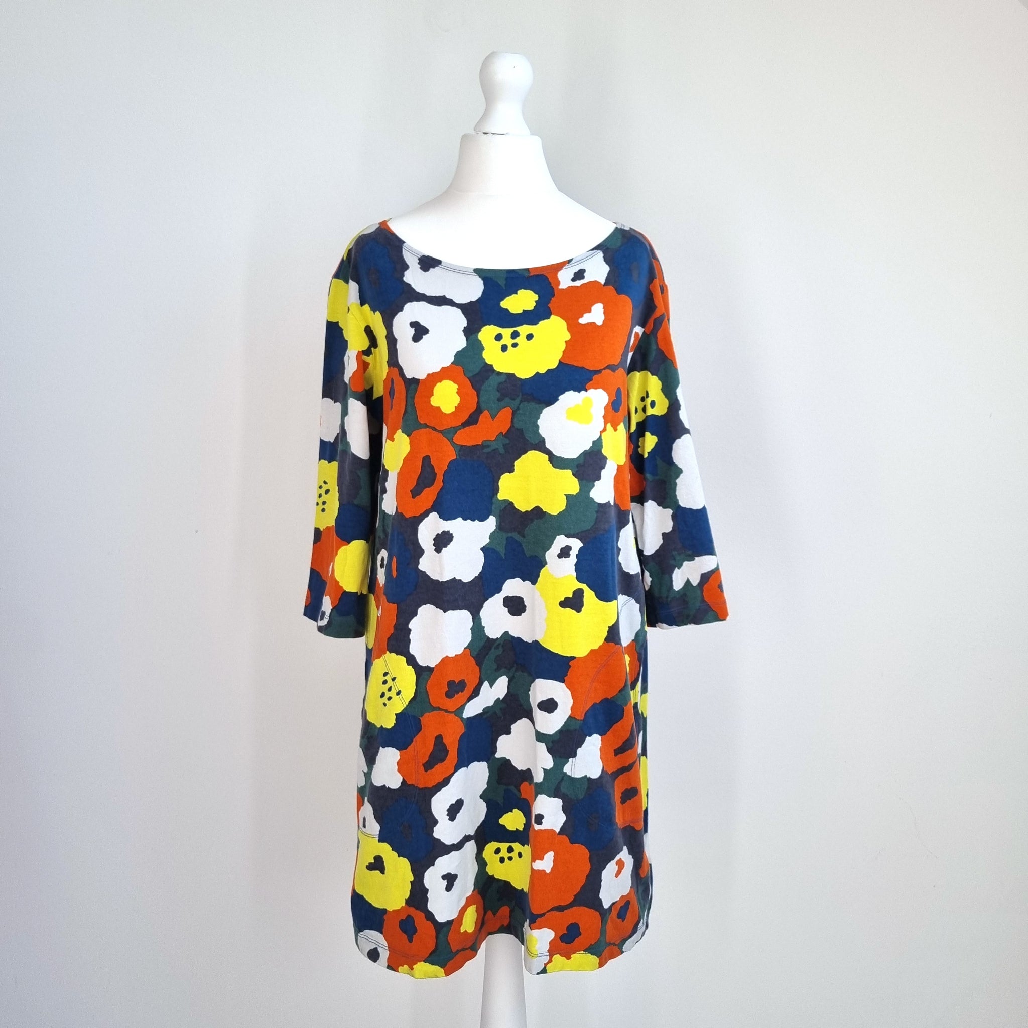 Marimekko Siopa Dress - Unikko Print by Maija Isola - 100% Cotton - Colourful - Floral - Scandinavian Design - Pockets - Mini - 3/4 Sleeves - Shift