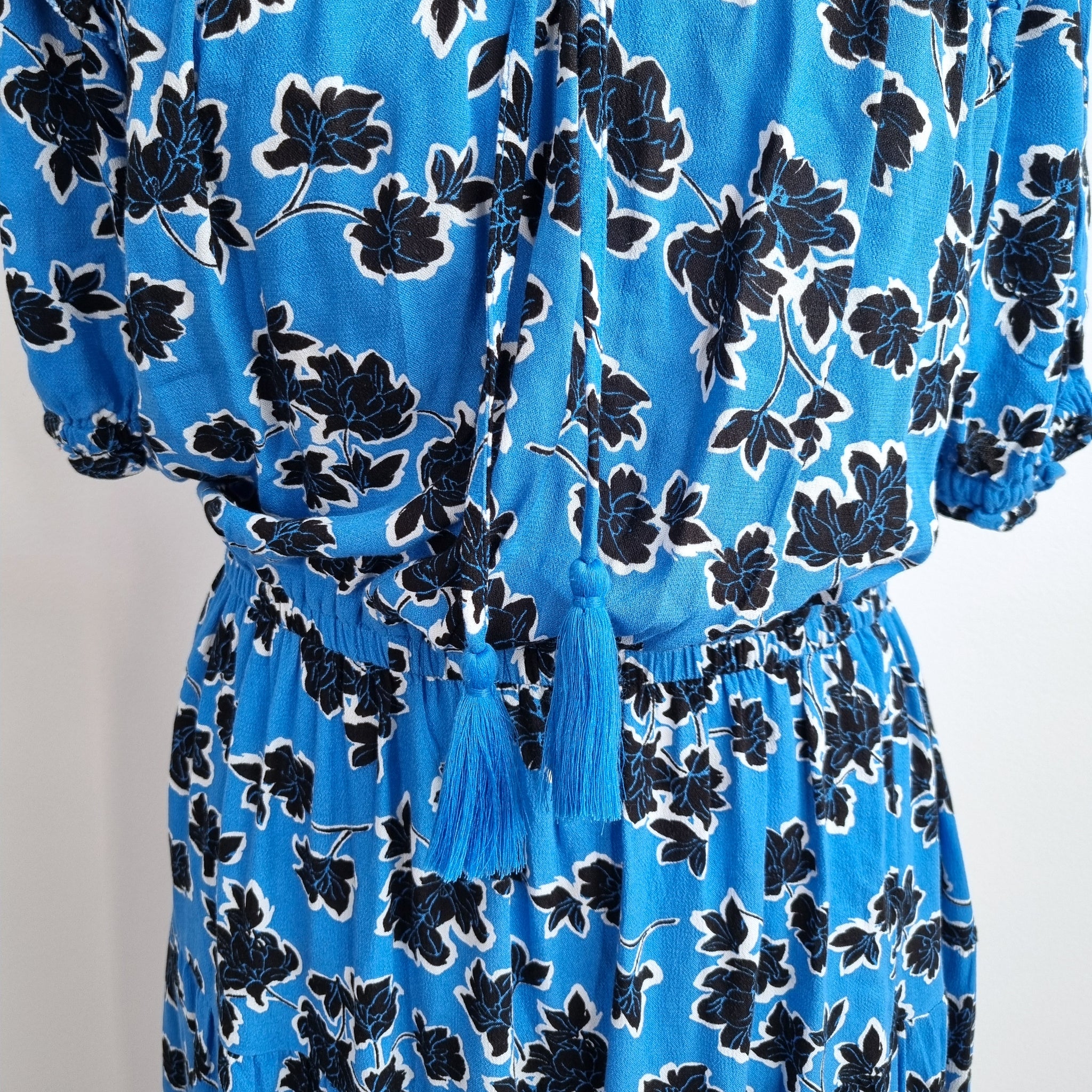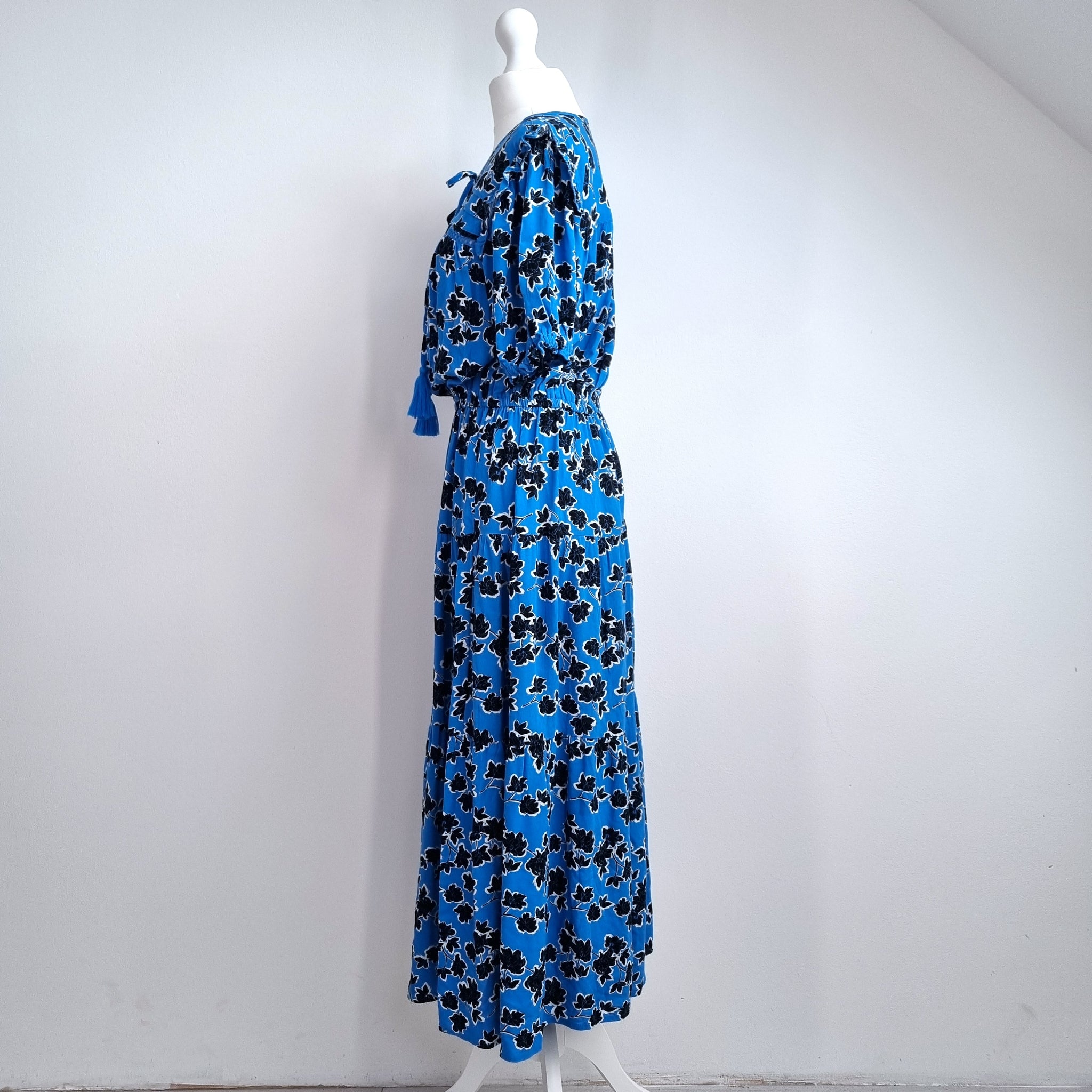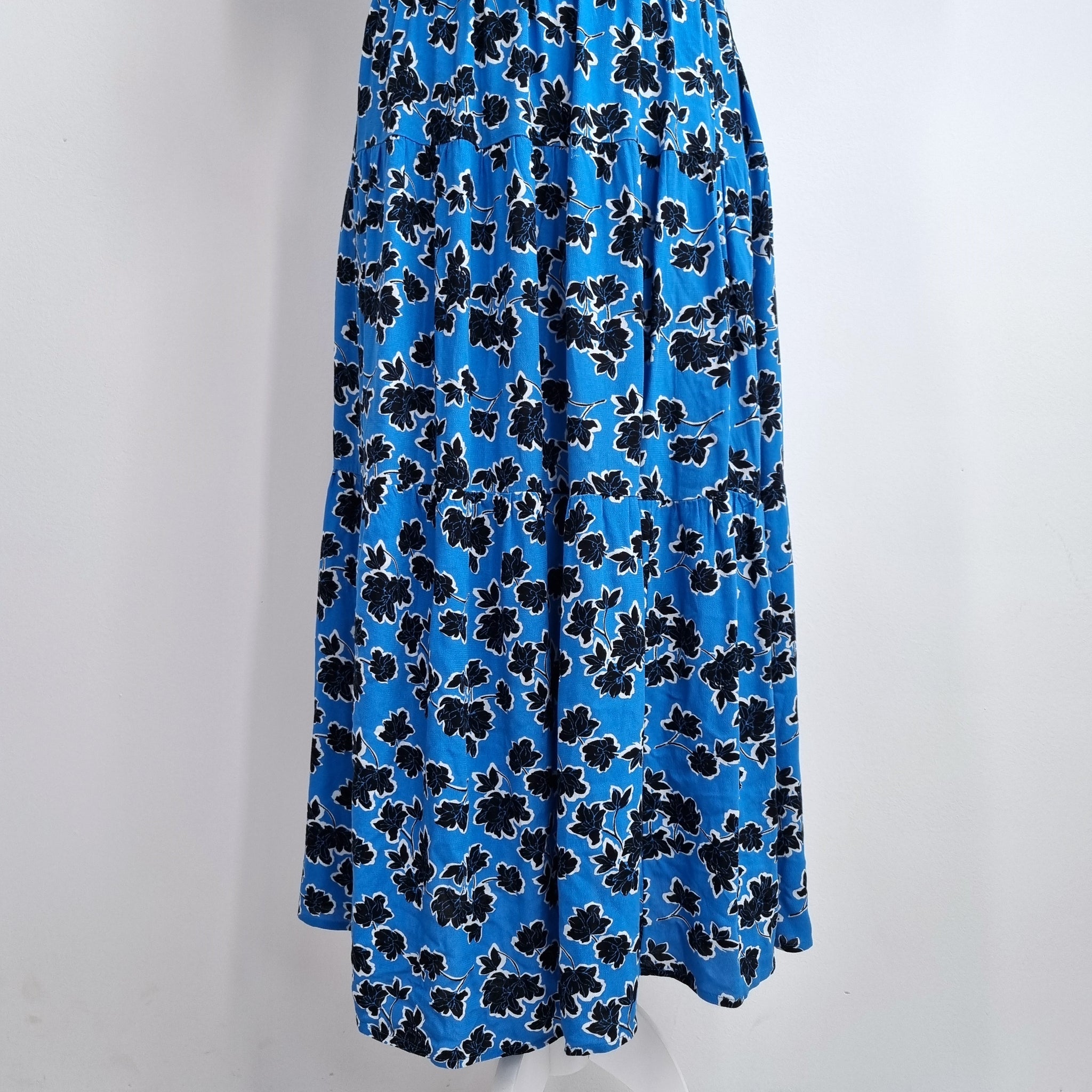 Marks & Spencer Midi Dress - Blue - Floral Print - 100% Viscose - Short Sleeves - Elasticated Waist