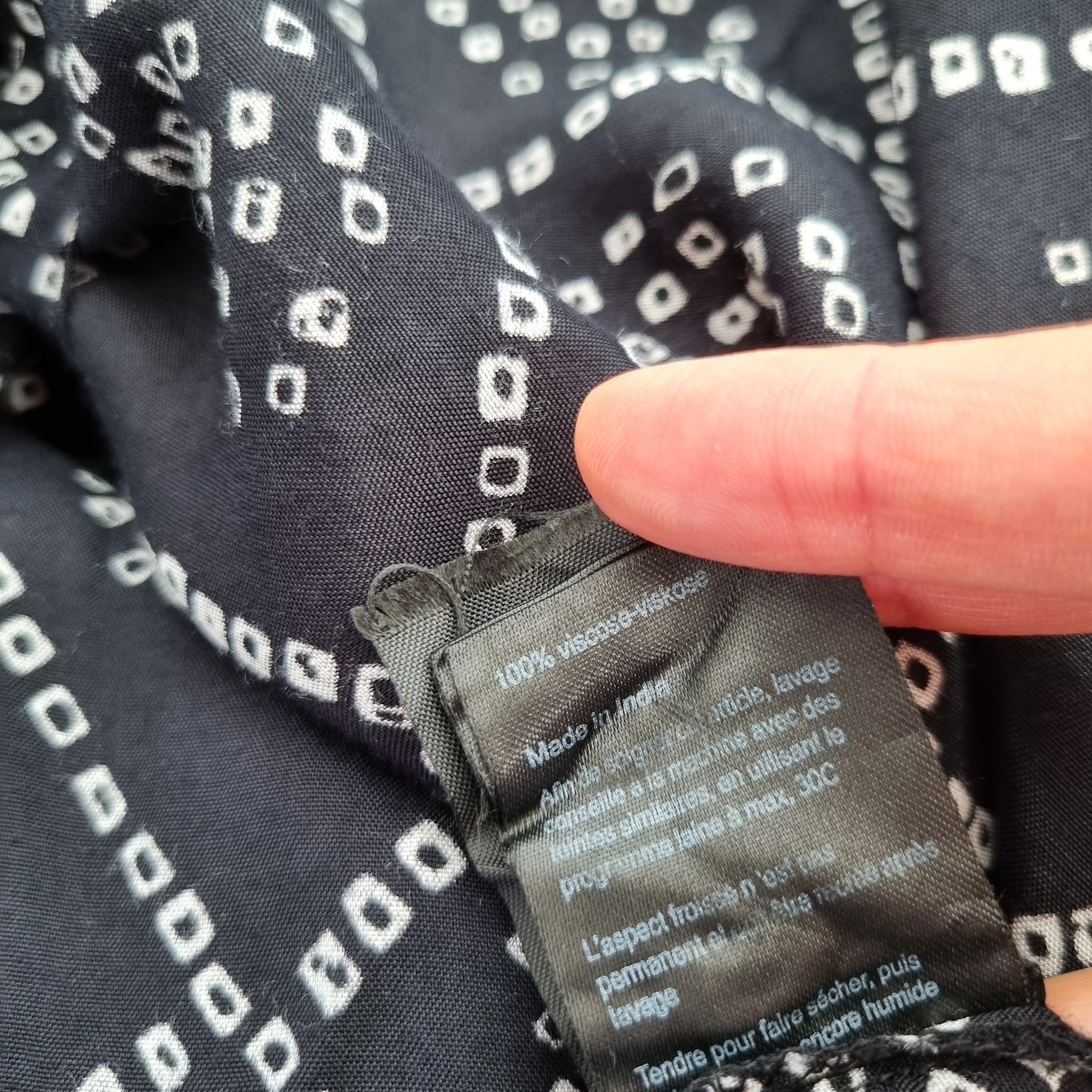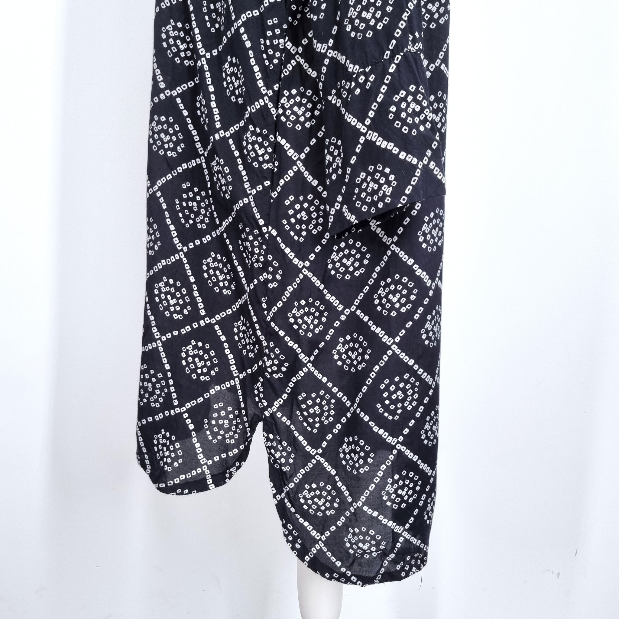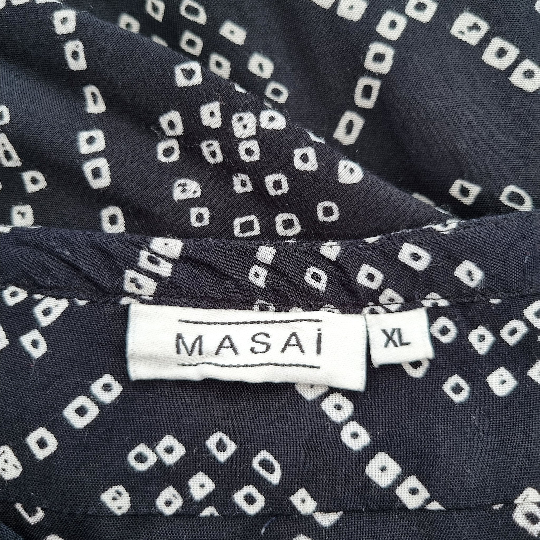Masai Tunic Dress - Pockets - High Low Hem - Knee Length / Midi - Black & White - Long Sleeves - Geometric Print - Neckline Button Detail - 100% Viscose