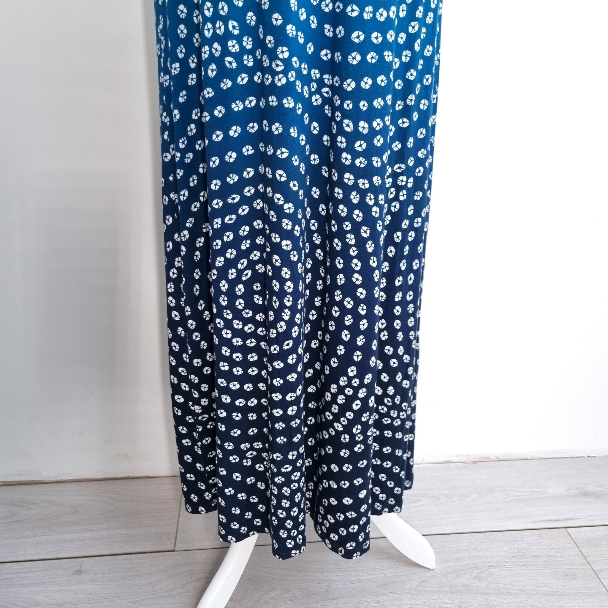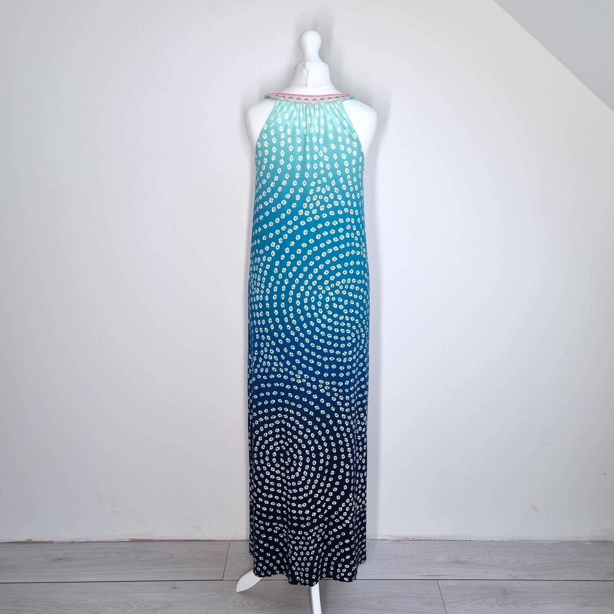 Monsoon Maxi Dress - Jersey - Ombre Blues - Retro Pattern - Embroidered Neckline - Stretch - Sleeveless