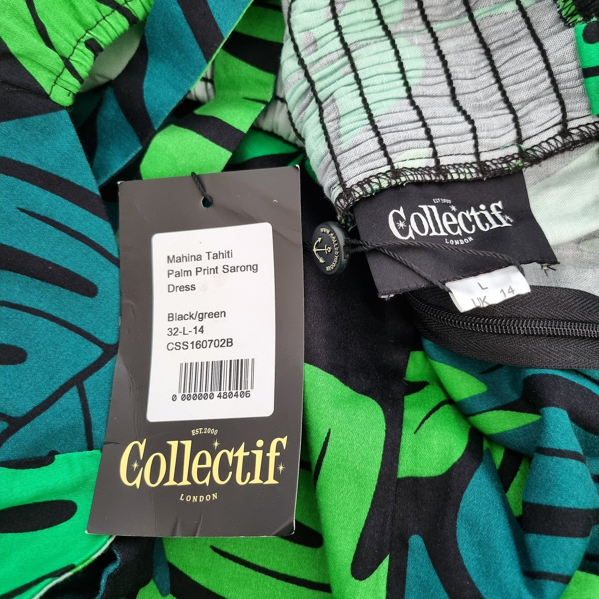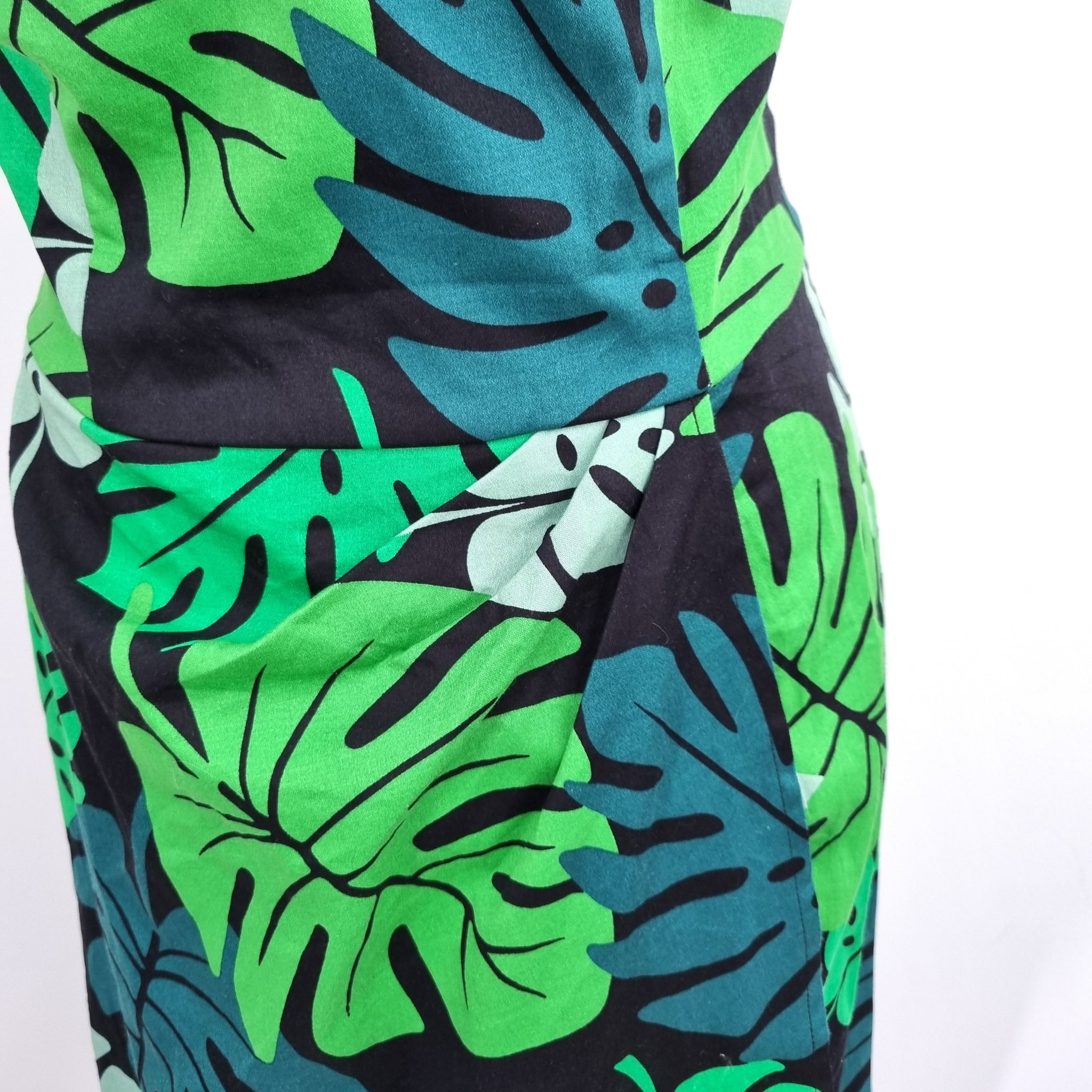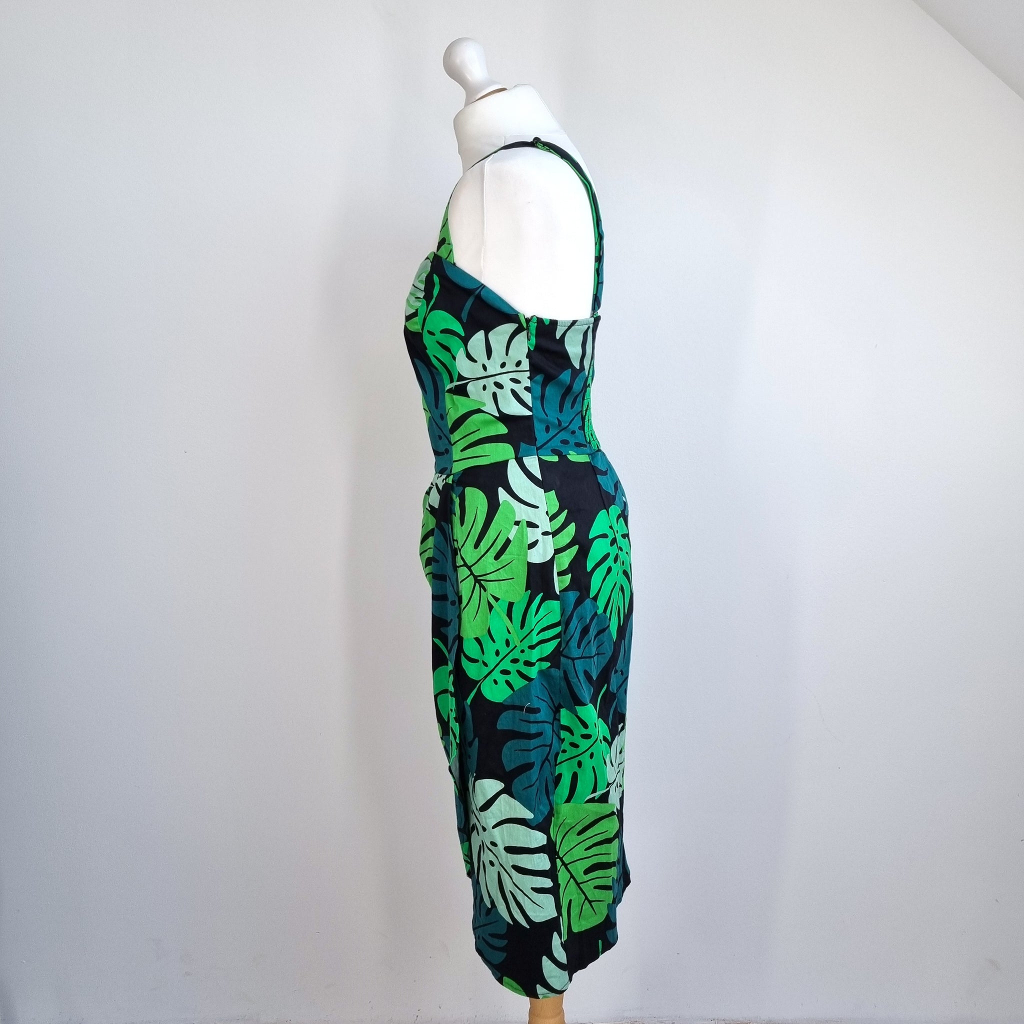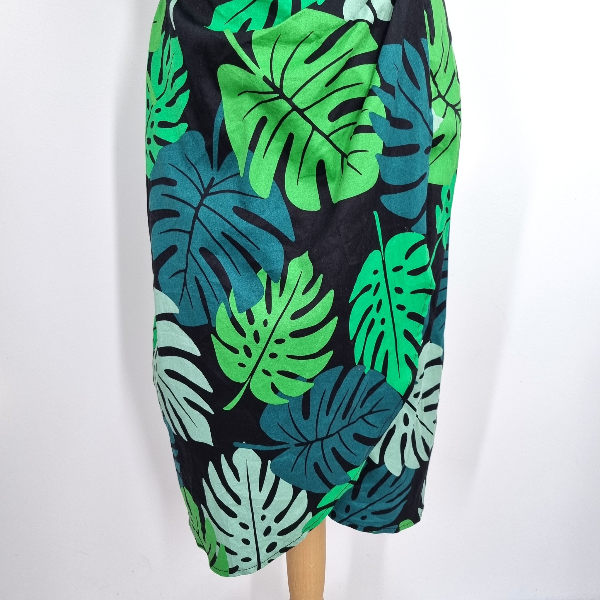 Collectif Mahina Tahiti Sarong Dress - Palm Tree Print - Green & Black - Removable Straps - Stretch - Cotton & Elastane Blend - Knee Length