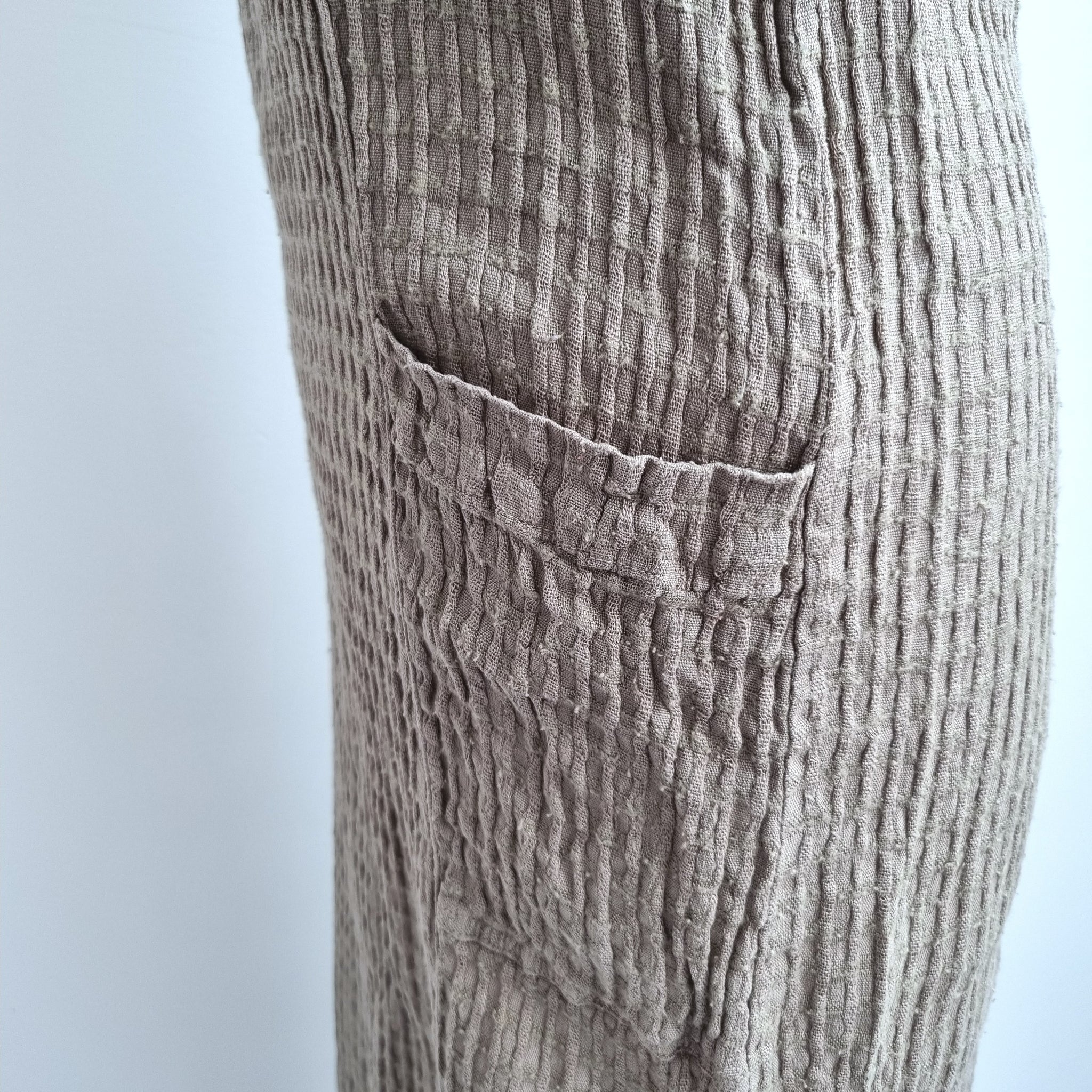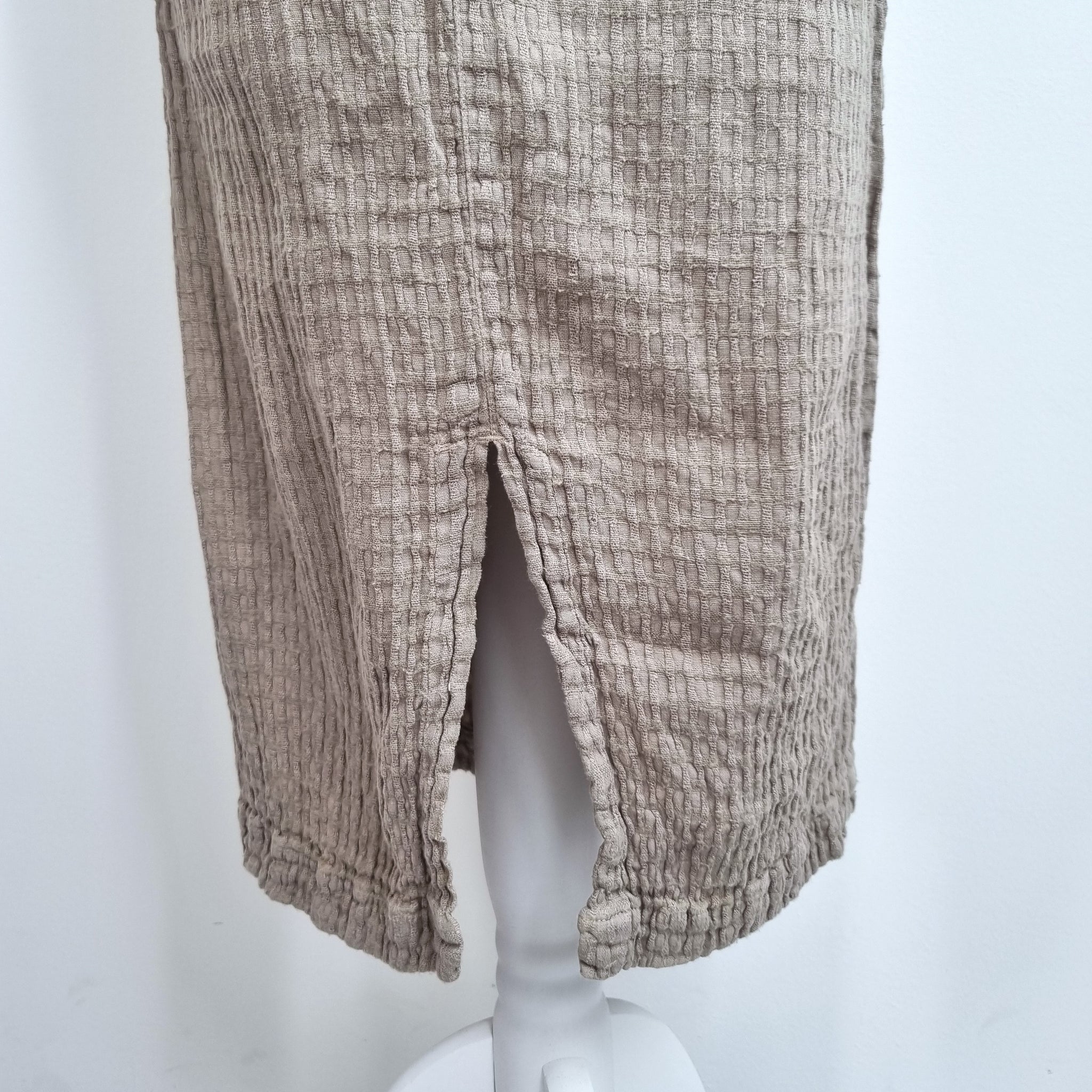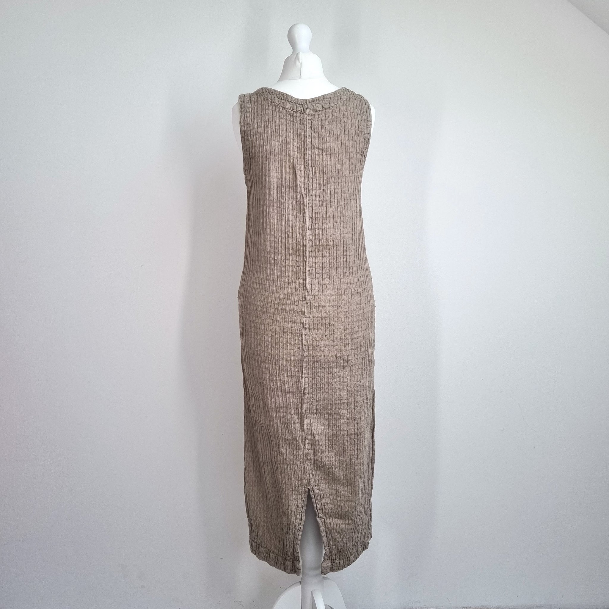 Sahara Midi Dress - Beige - Linen (80%) & Bamboo (20%) Blend - Sheath - Pockets - Back Slit - Textured Fabric - Sleeveless - Square Neckline