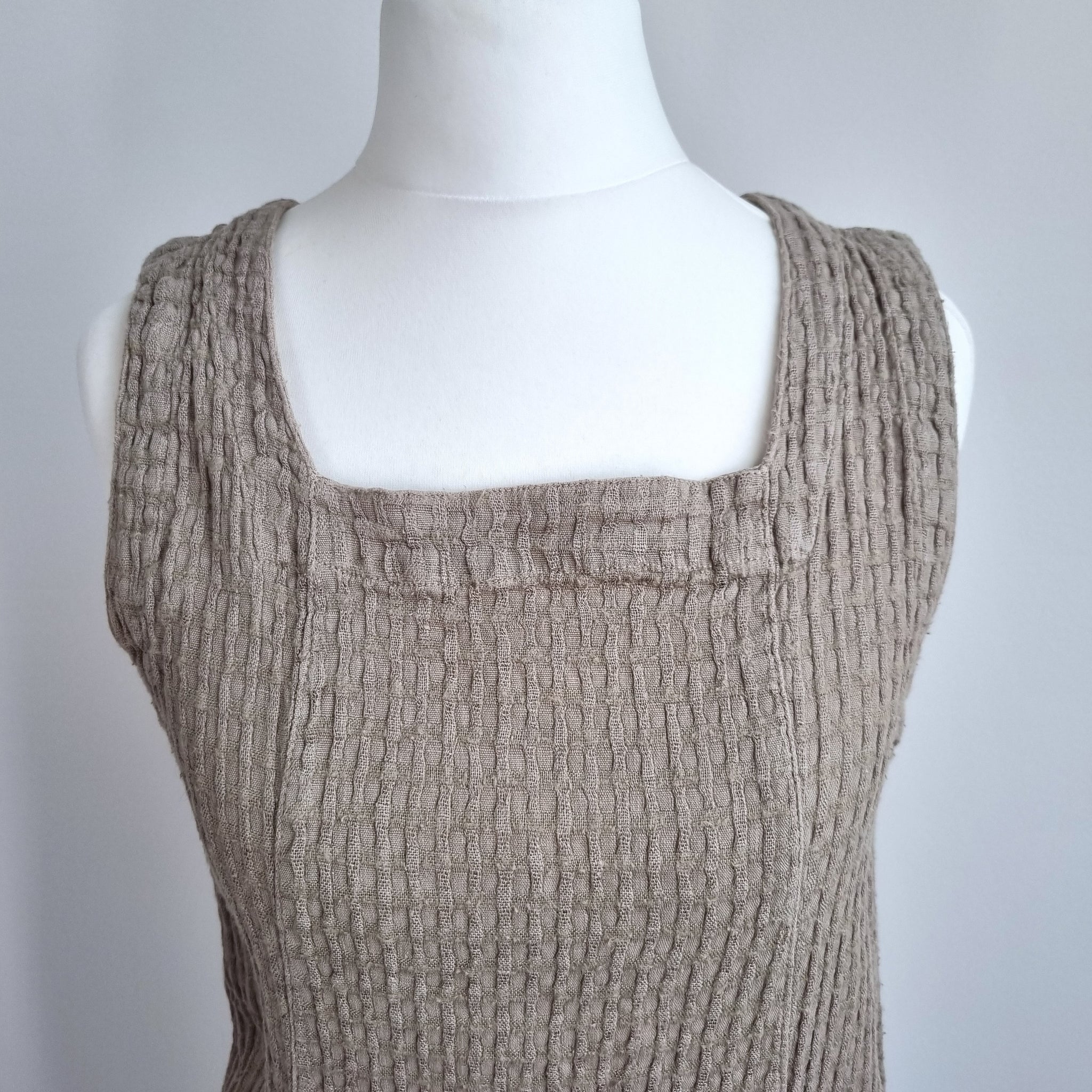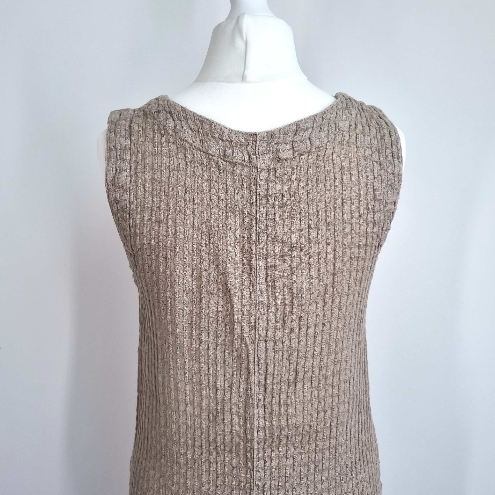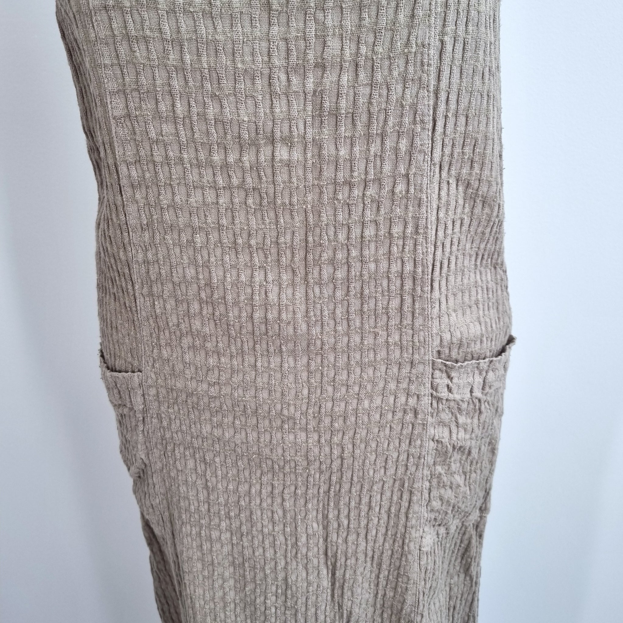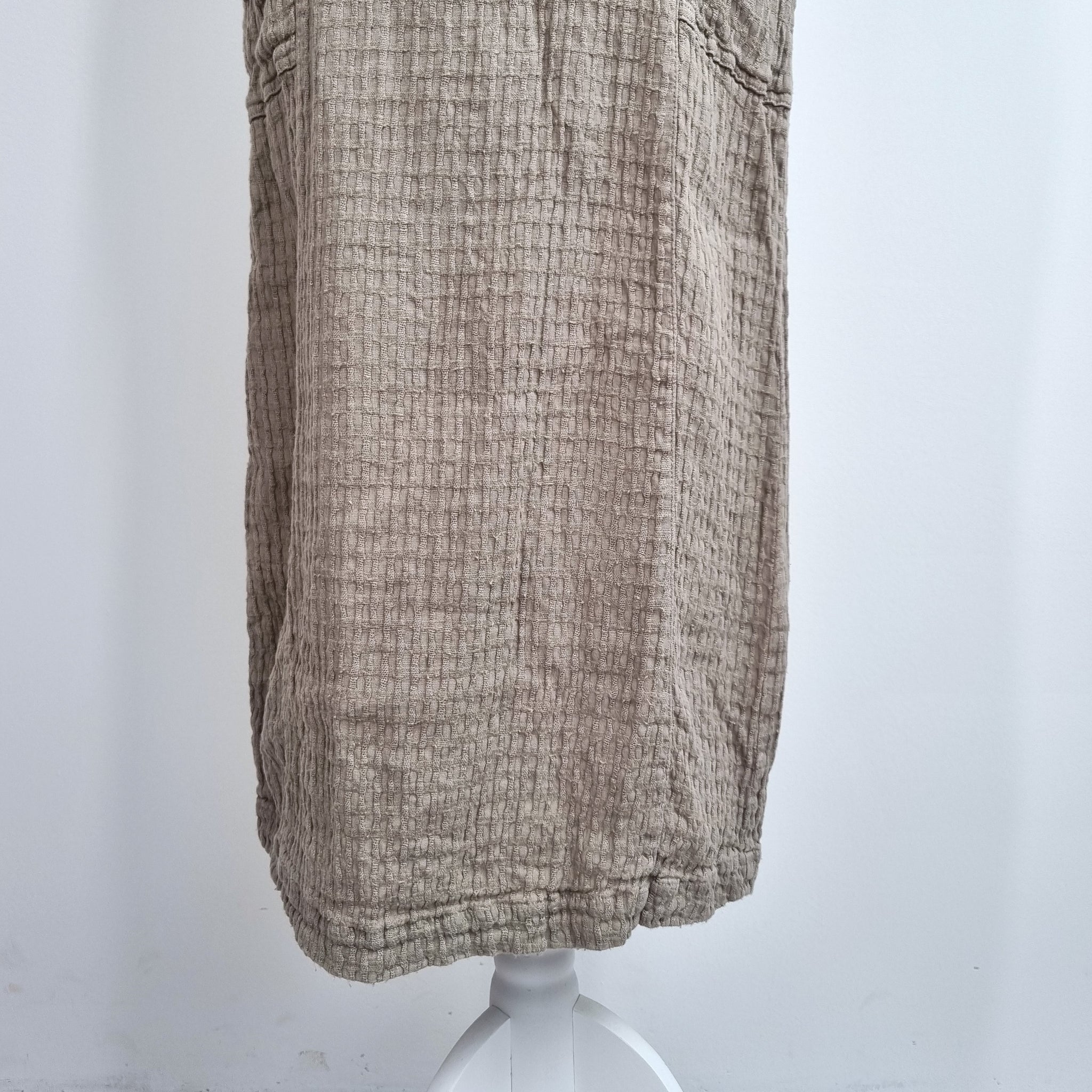 Sahara Midi Dress - Beige - Linen (80%) & Bamboo (20%) Blend - Sheath - Pockets - Back Slit - Textured Fabric - Sleeveless - Square Neckline