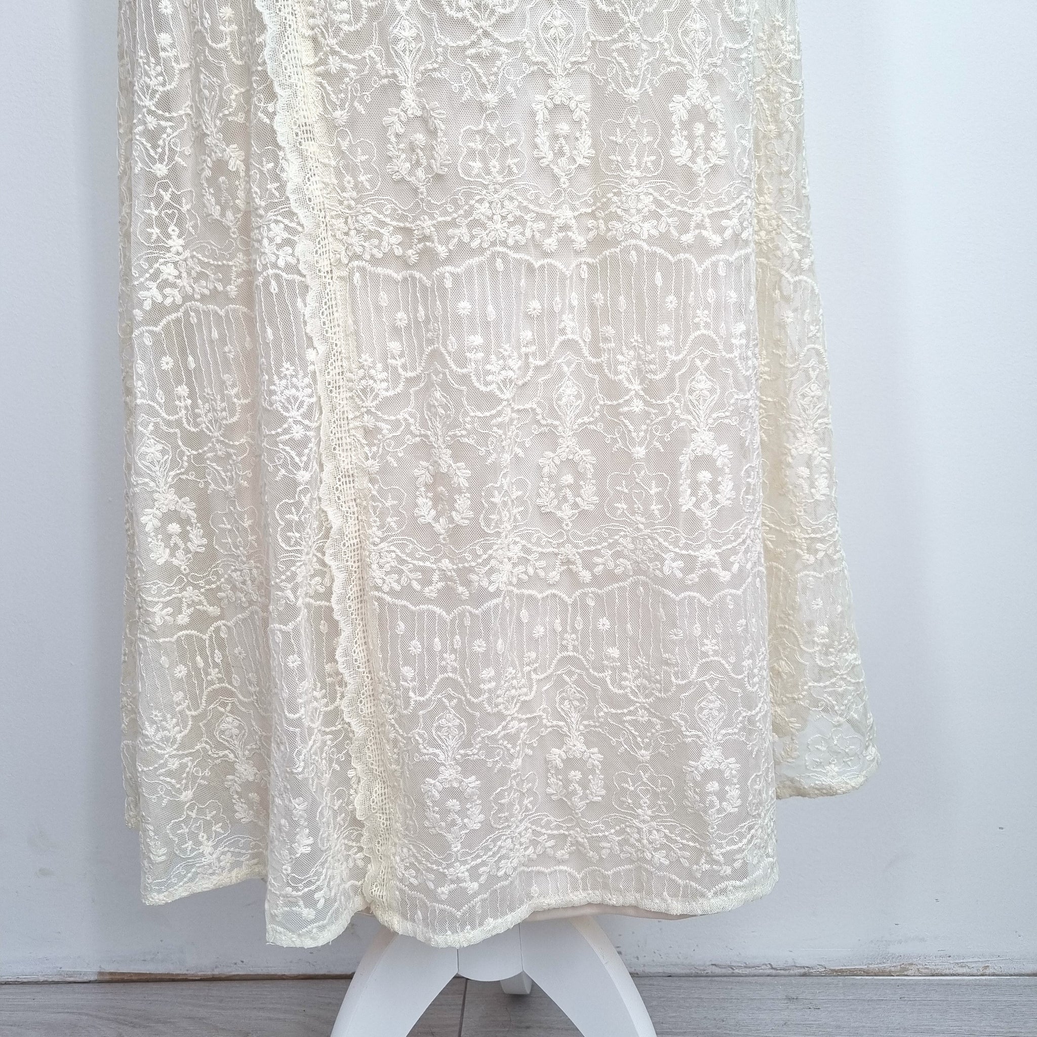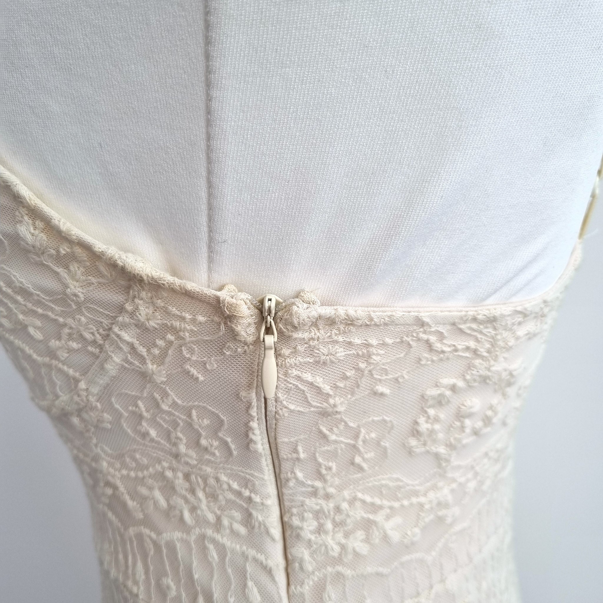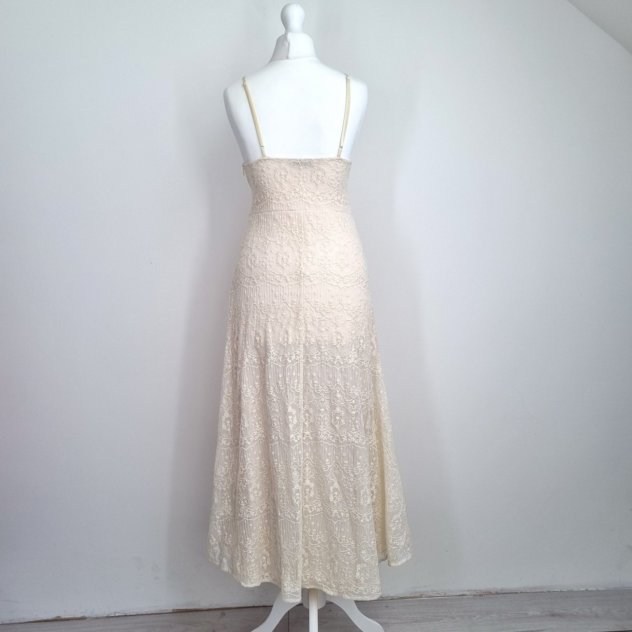 Zara Midi Dress - Embroidered Lace - Cream - Floral Pattern - A Line -Strappy - Adjustable Straps - Lined - Side Zip Fastening