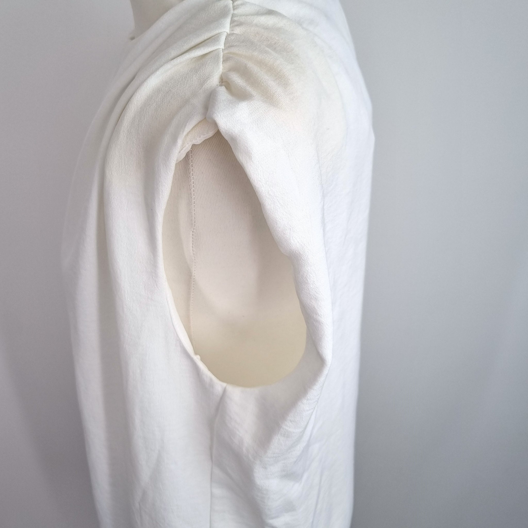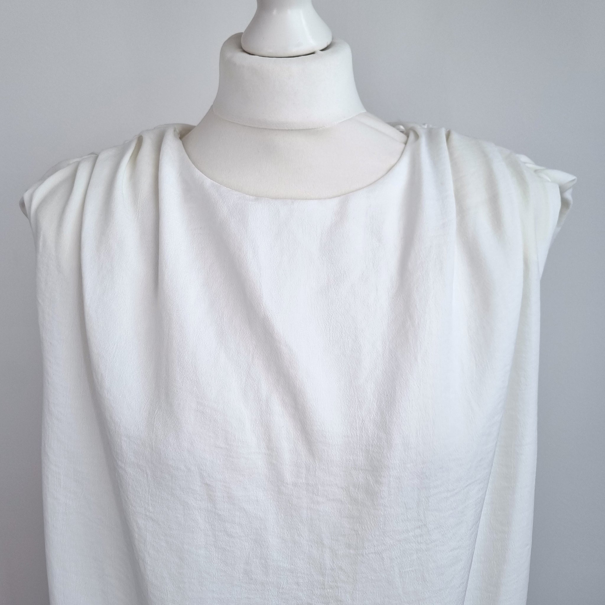 Zara Mini Dress / Tunic - Off-White - Grecian Style - Shoulders Pads - Sleeveless - Lined - Gathered Detail