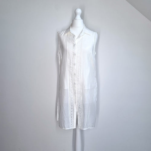Mint Velvet Sleeveless Shirt 8 White Tunic Broderie Anglaise Silk Cotton Lined