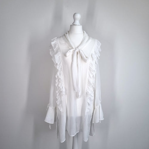 Zara Lavaliere White Blouse XS Sheer Oversized Bow Tunic Chiffon Steampunk