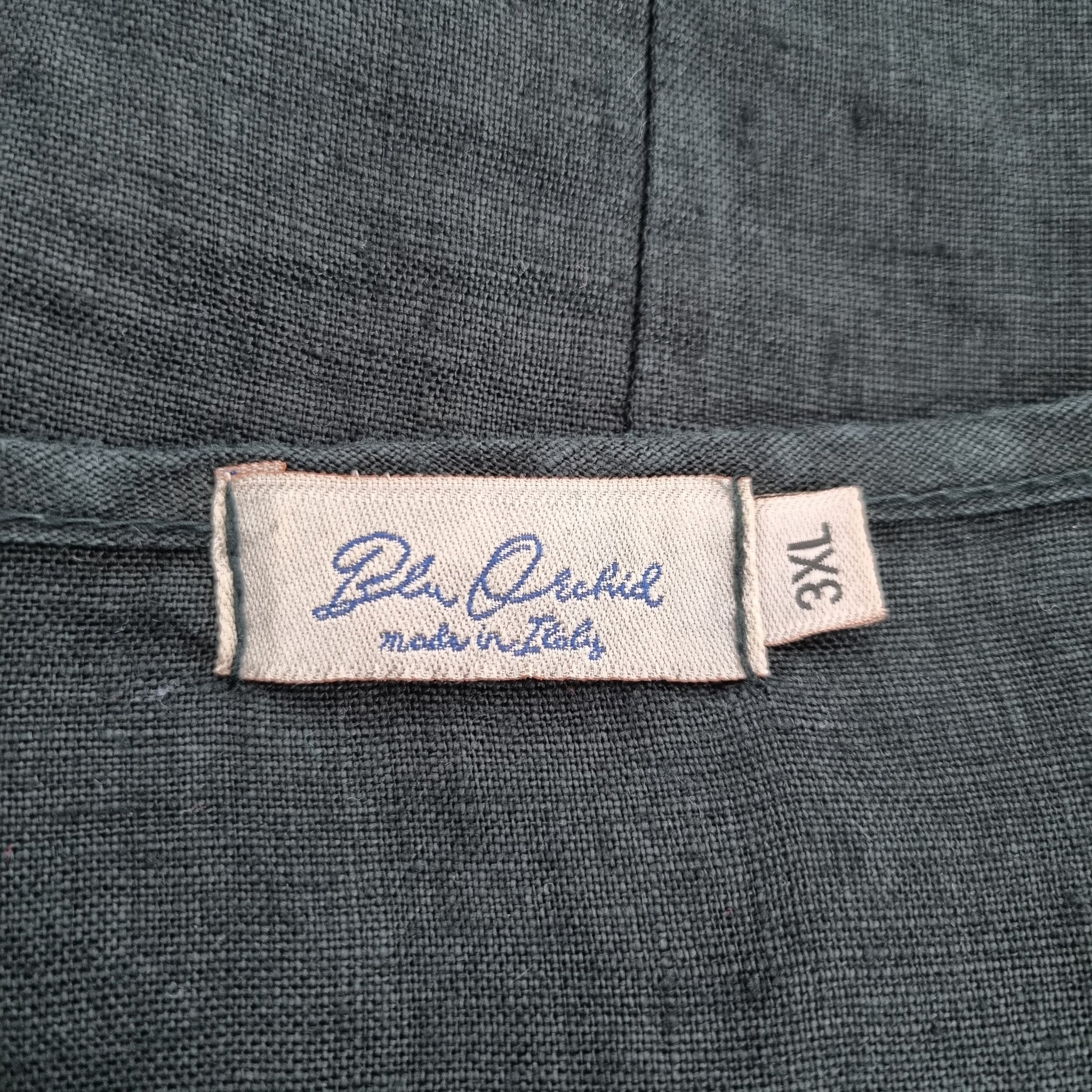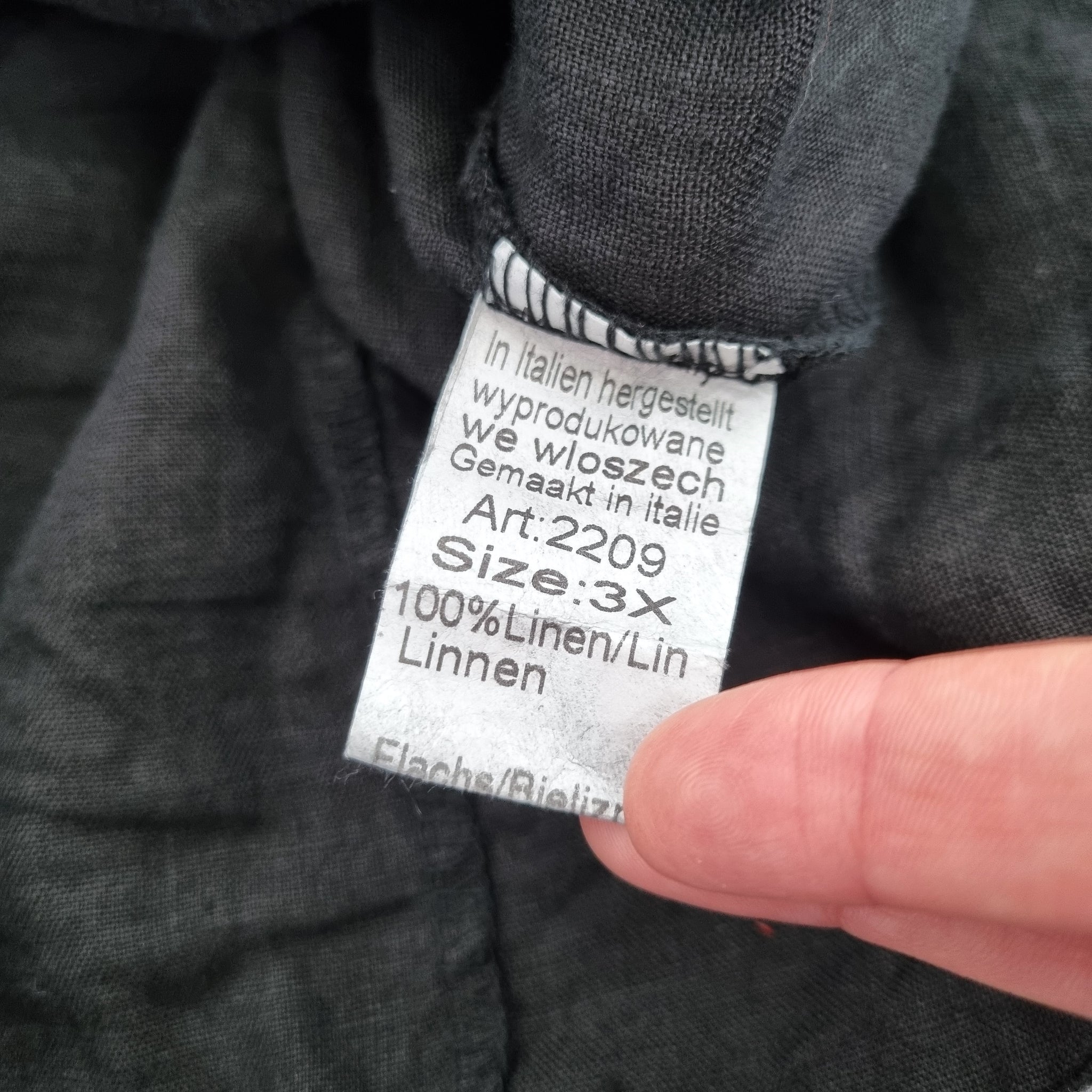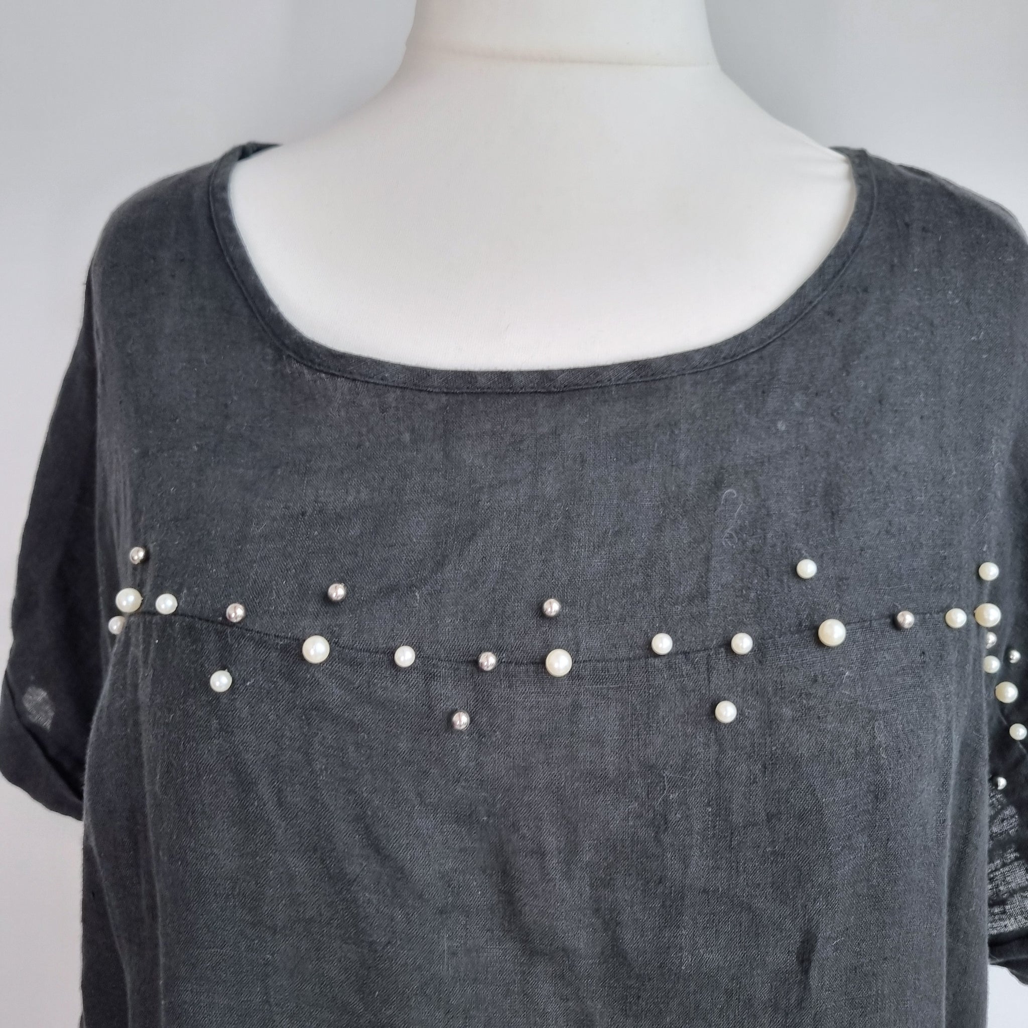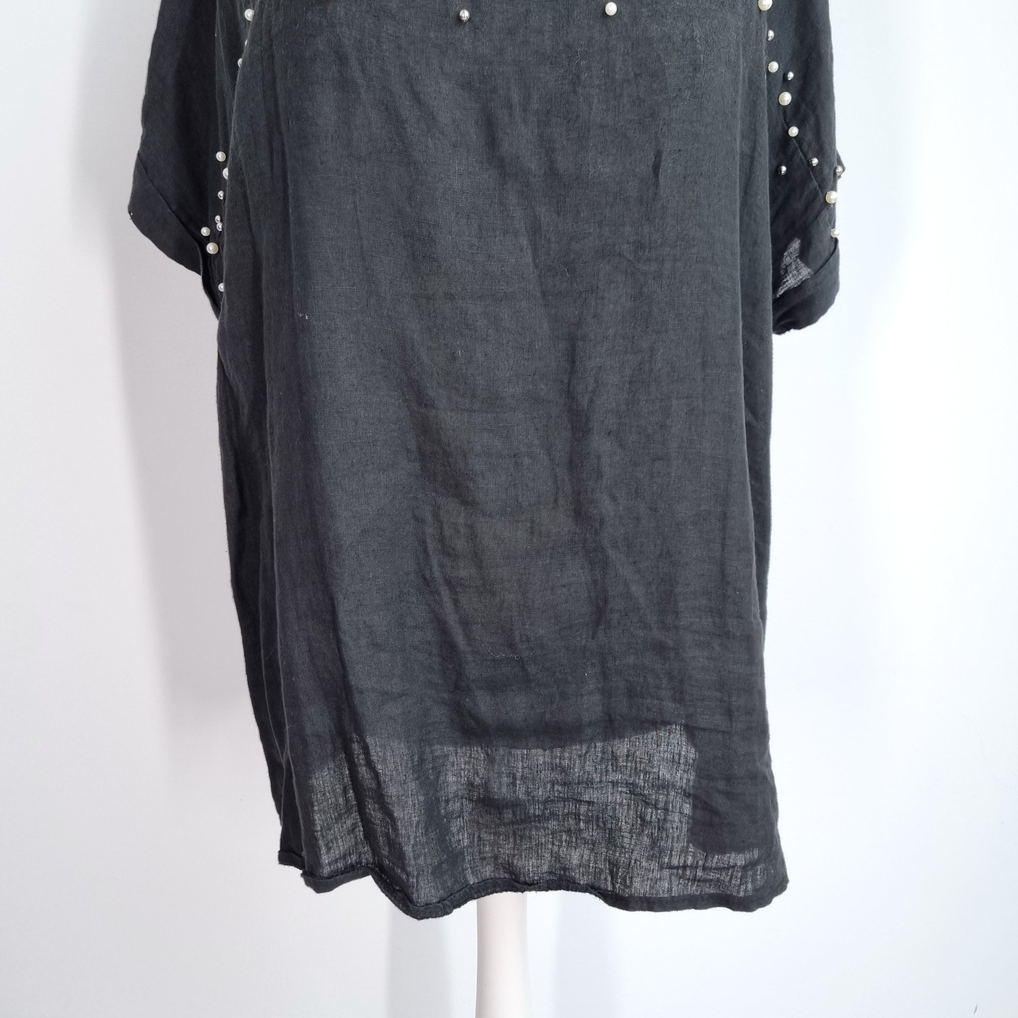 Blu Orchid Made in Italy Blouse - 100% Linen - Faux Pearls & Beads Detail - Black - Short Sleeves - Relaxed Fit