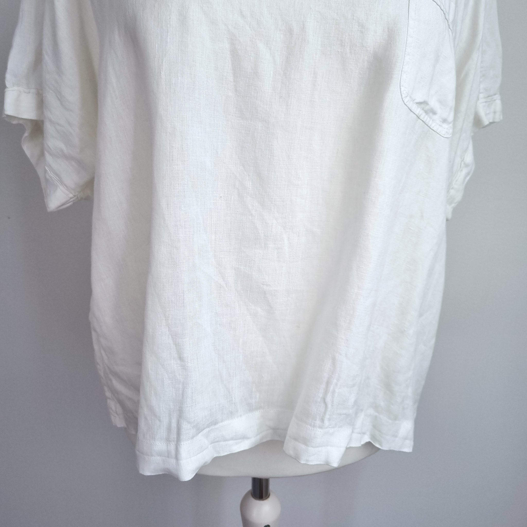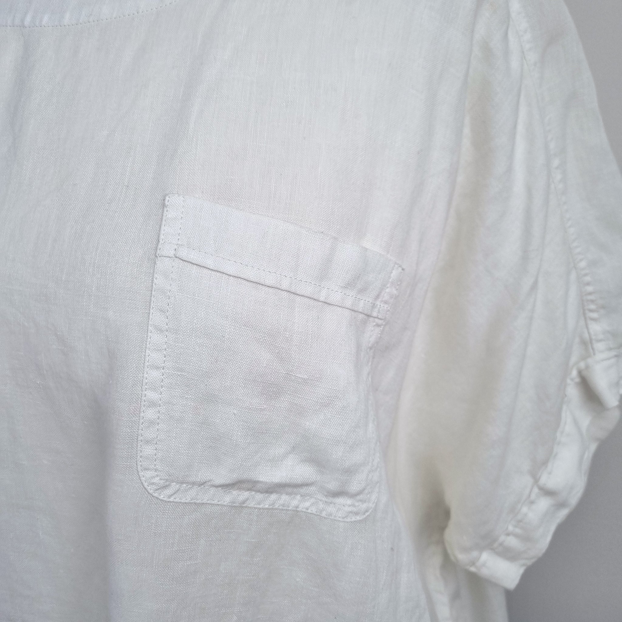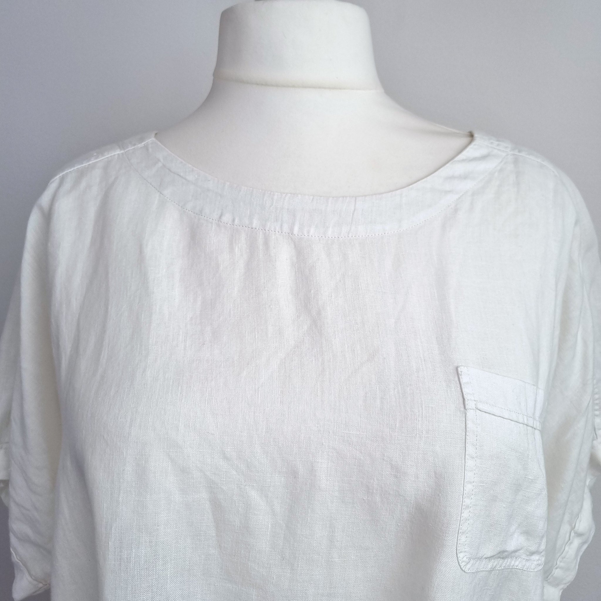 M&S Blouse - 100& Linen - Soft White - Short Sleeves - Chest Pocket - Dolman Sleeves - Relaxed Fit - Boat Neck