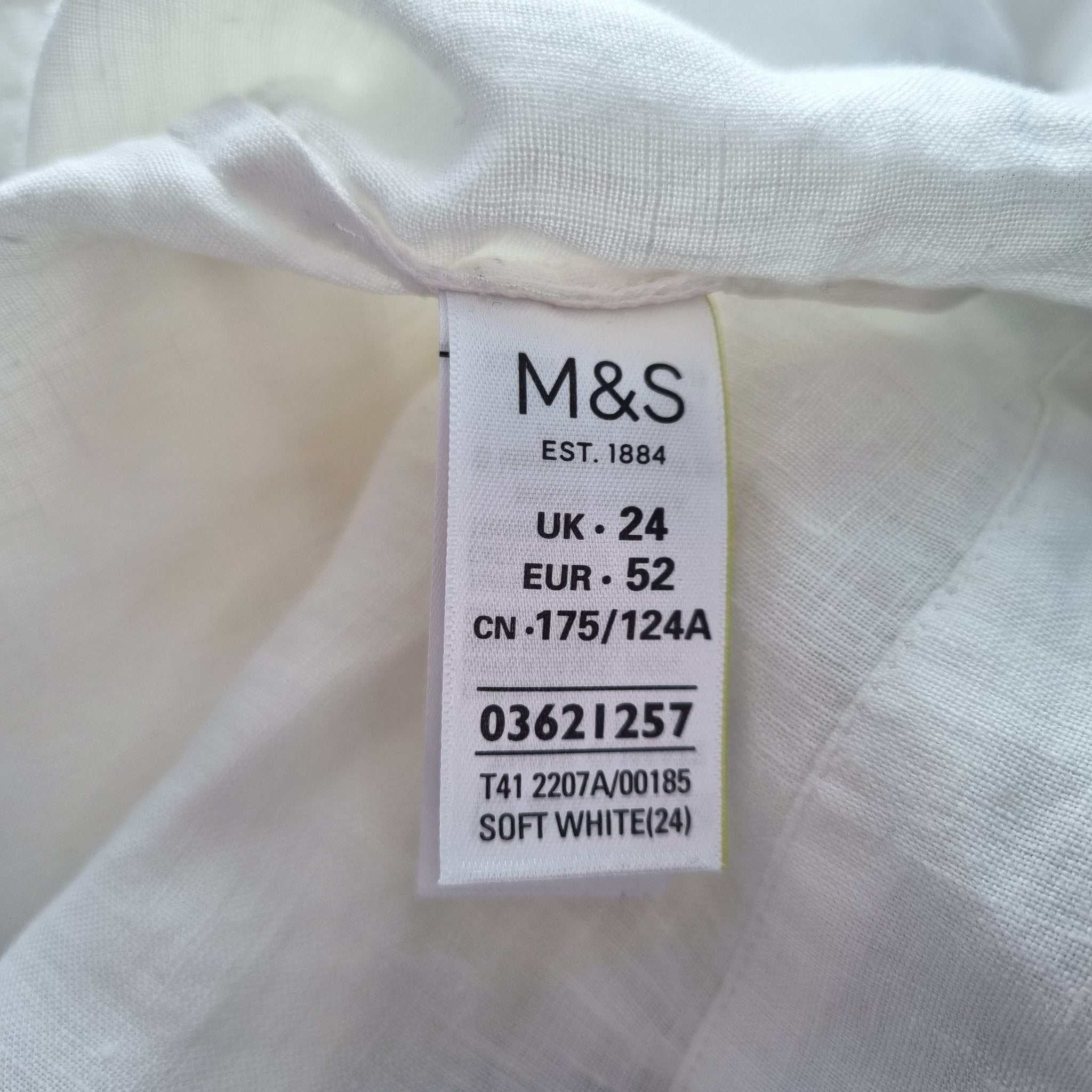M&S 100& Linen Blouse UK 24 White Short Sleeves Top Casual Plus Size Work Tee