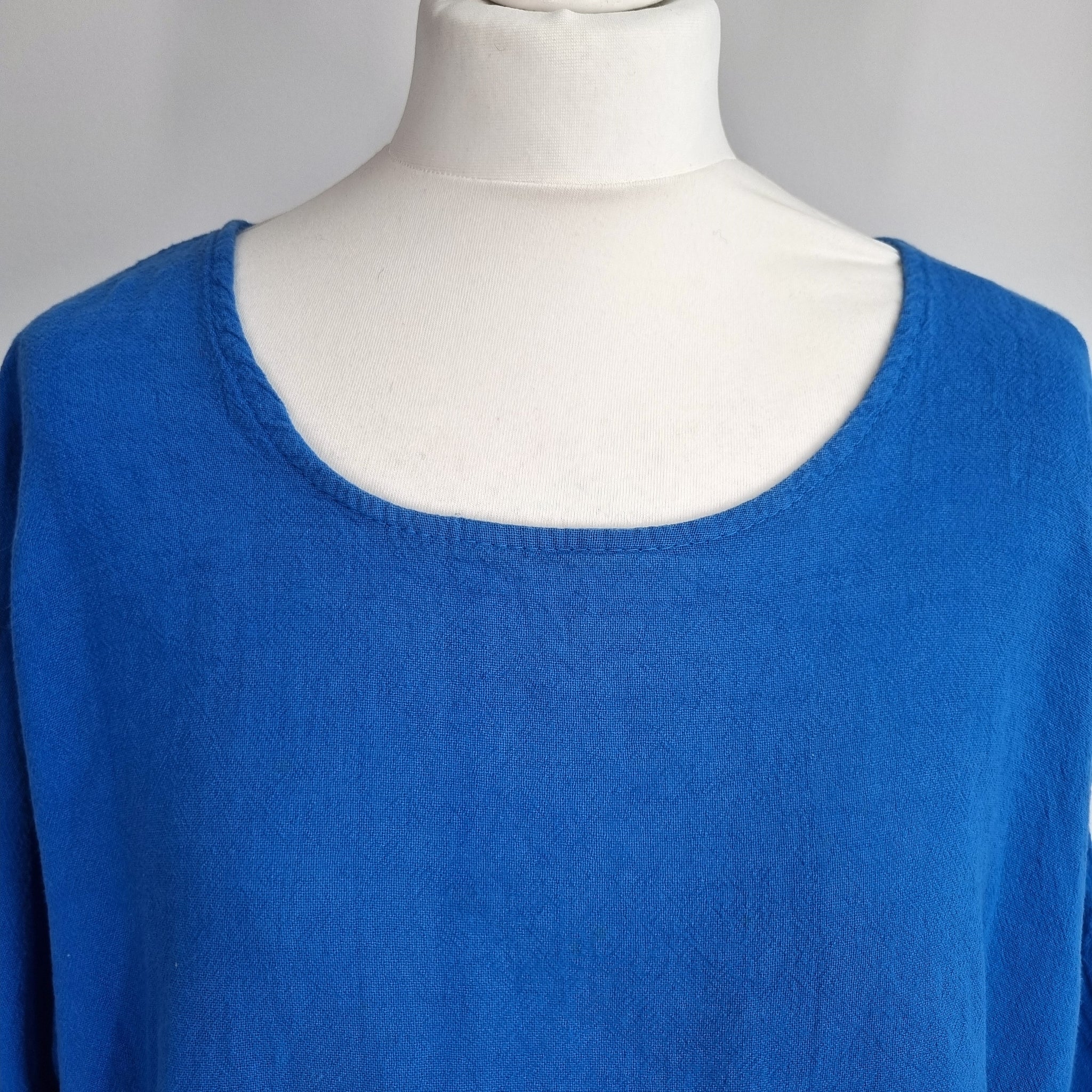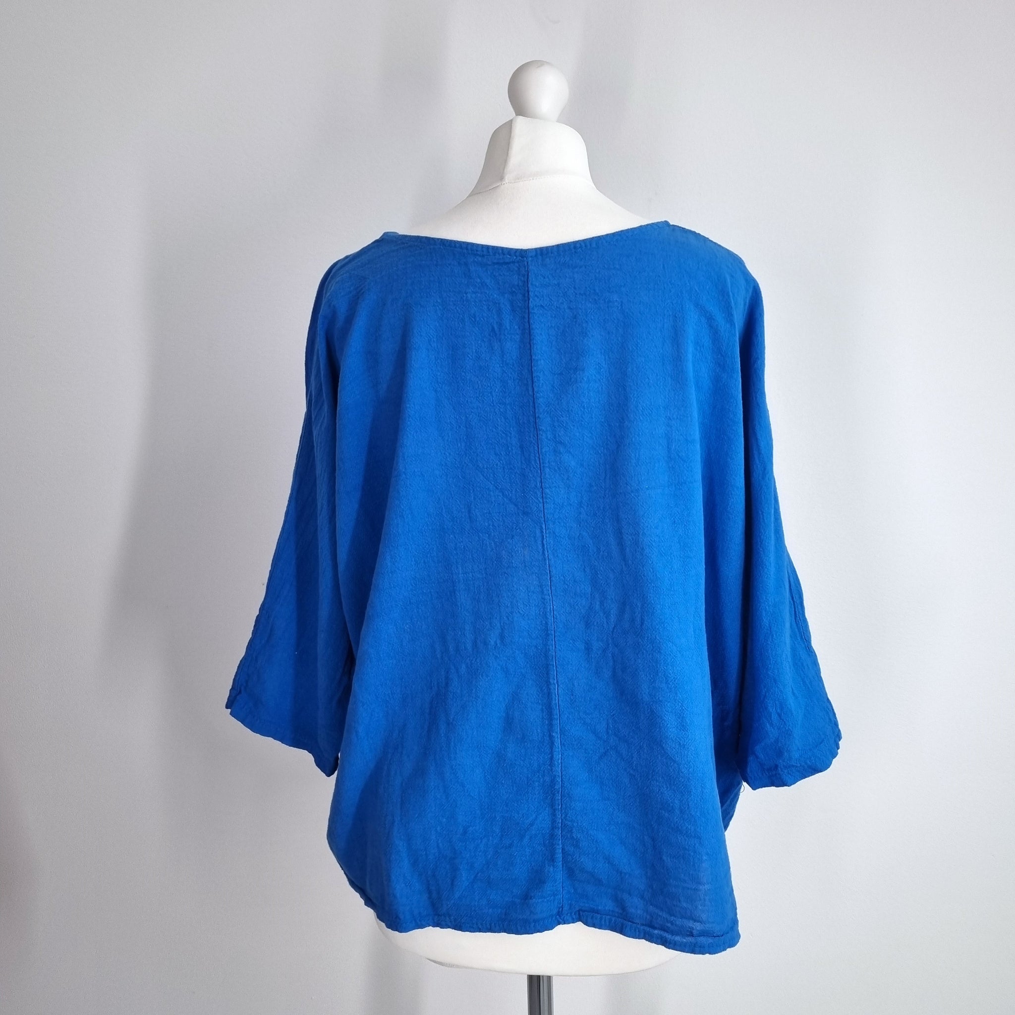 Made in Italy Colette Blouse - Cotton (60%) & Linen (40%) Blend - Royal Blue - Oversized - Boxy - 3/4 Sleeves
