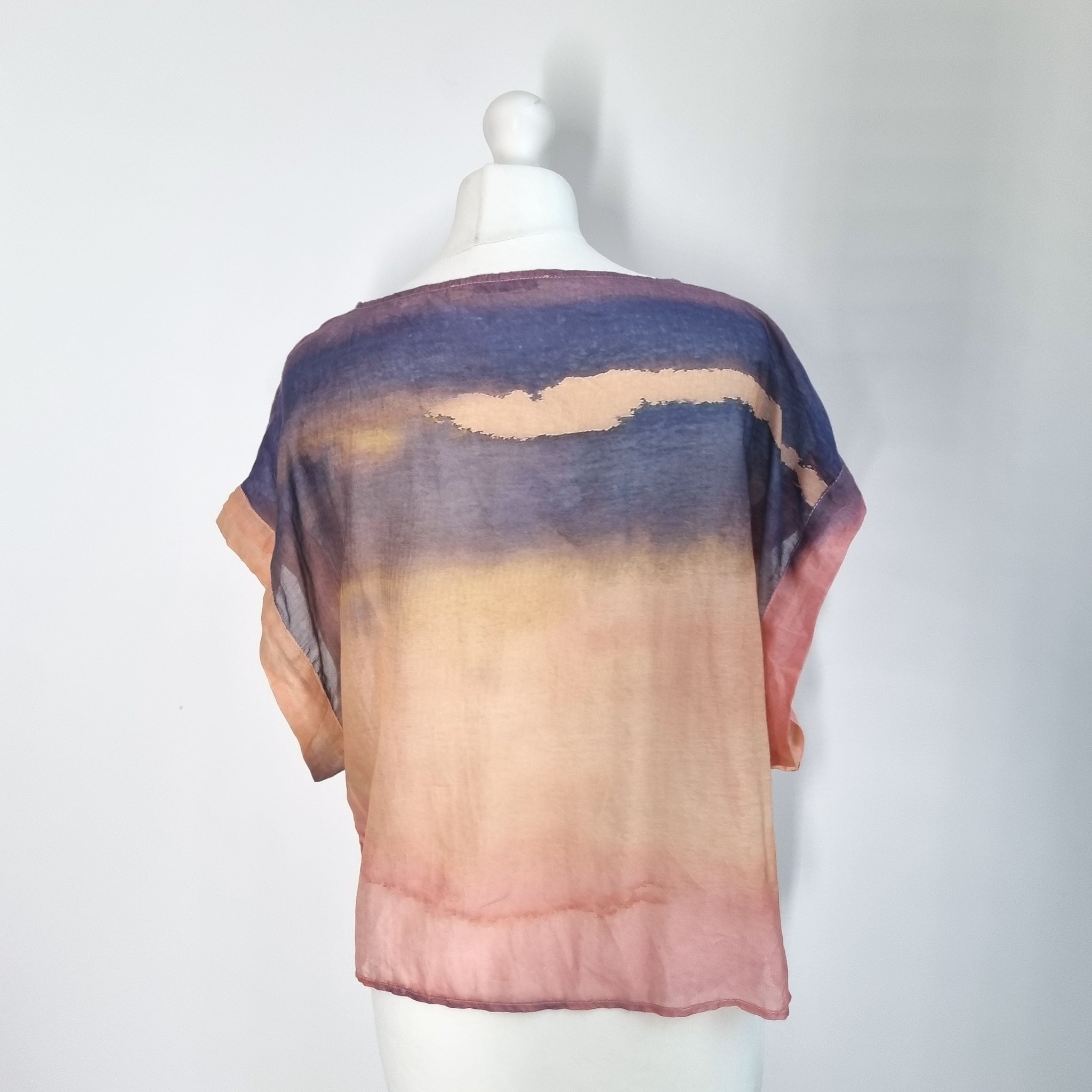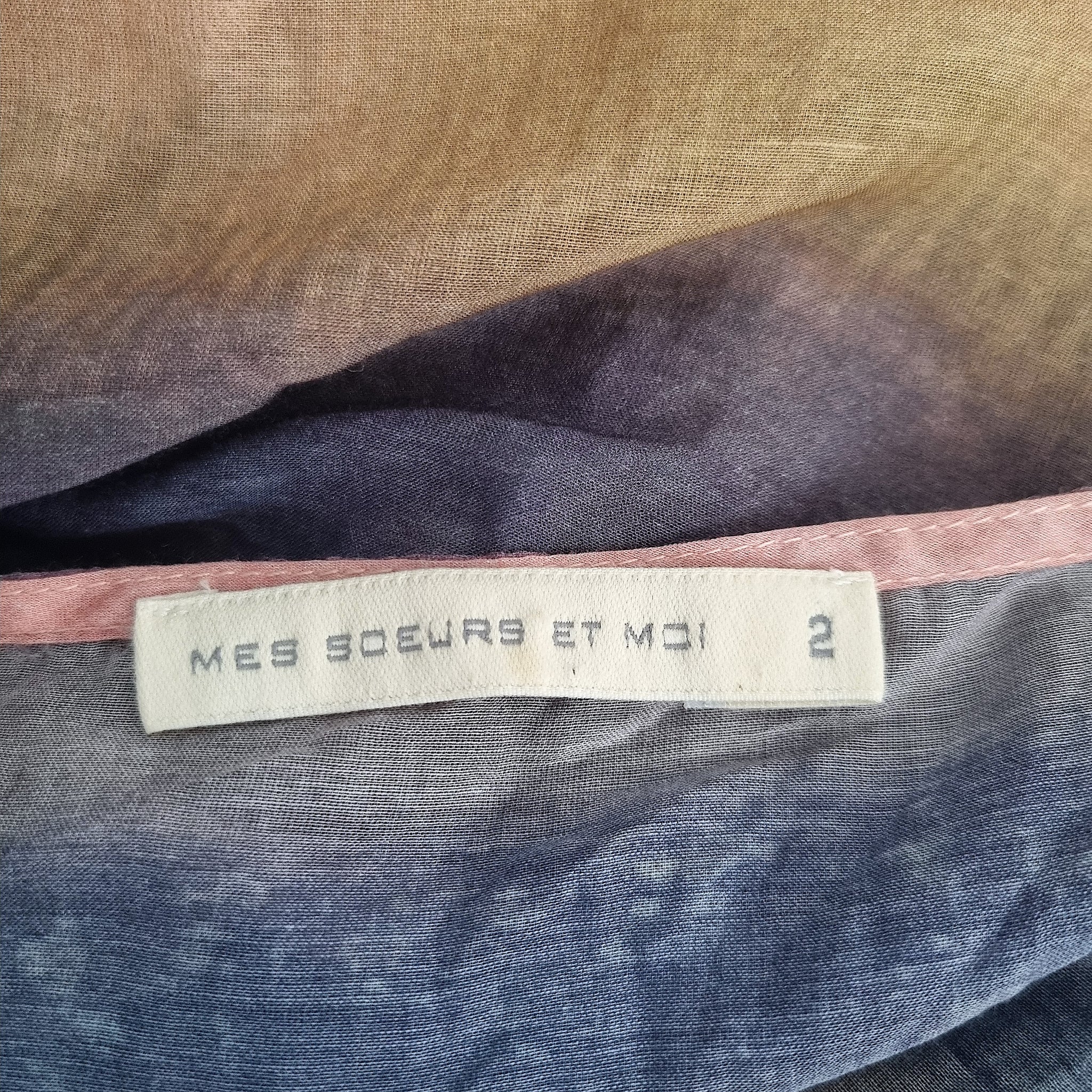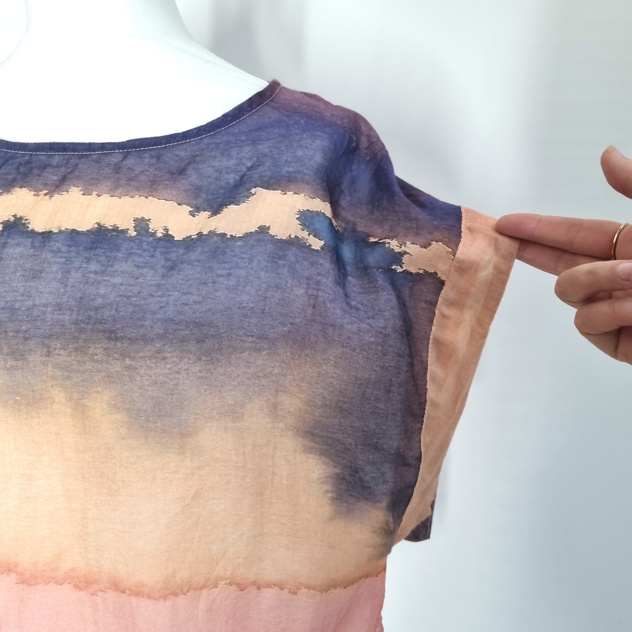 Mes Soeurs Et Moi Top - Cotton (75%) & Silk (25%) Blend - Tie-Dye Print - Boxy - Short Sleeves - Blue, Peach & Pink