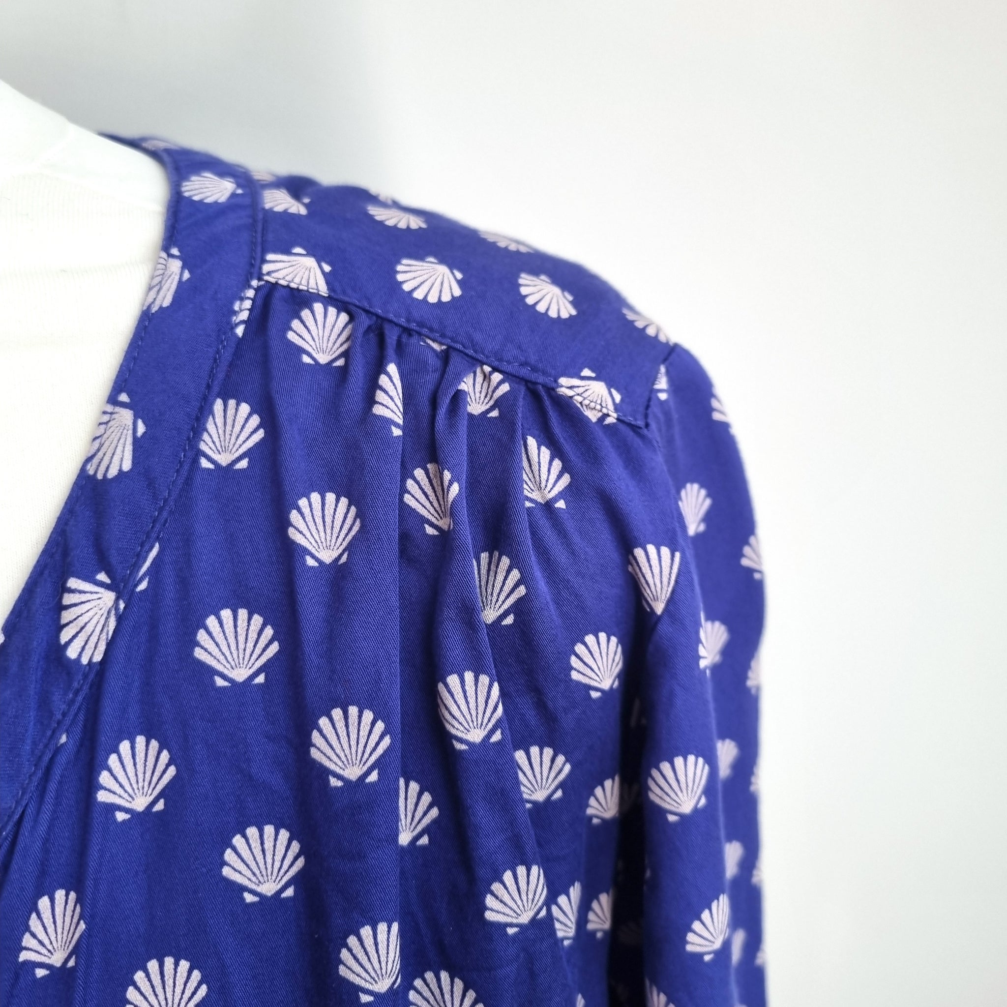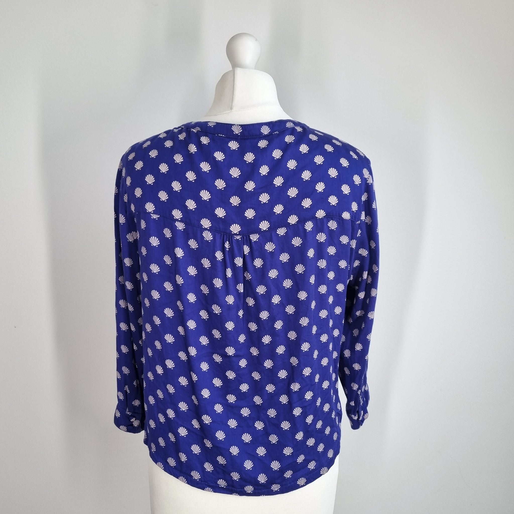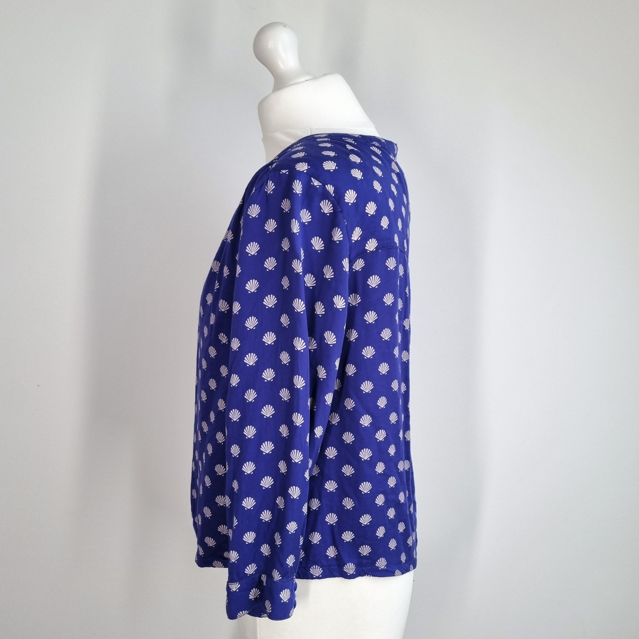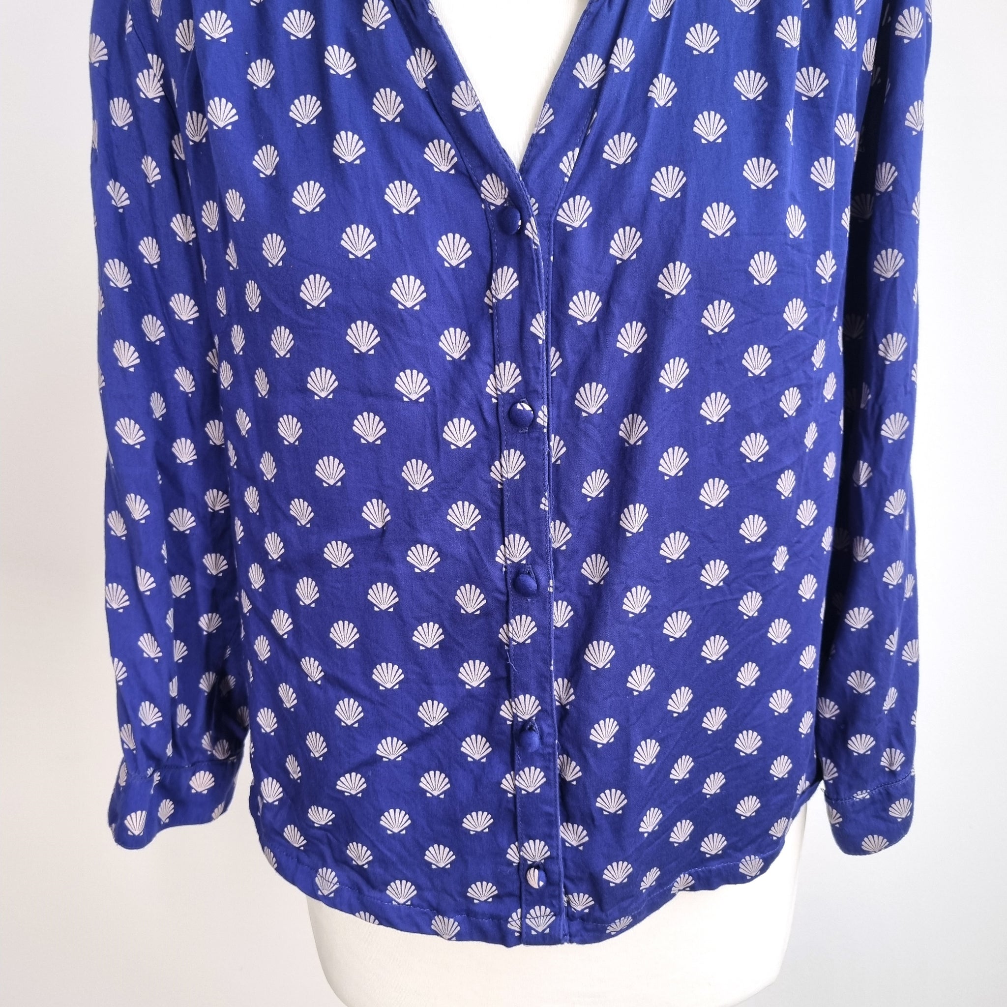 Mudd & Water Blouse - Shell Print - Blue - Button Front - Long Sleeves - 100% Tencel