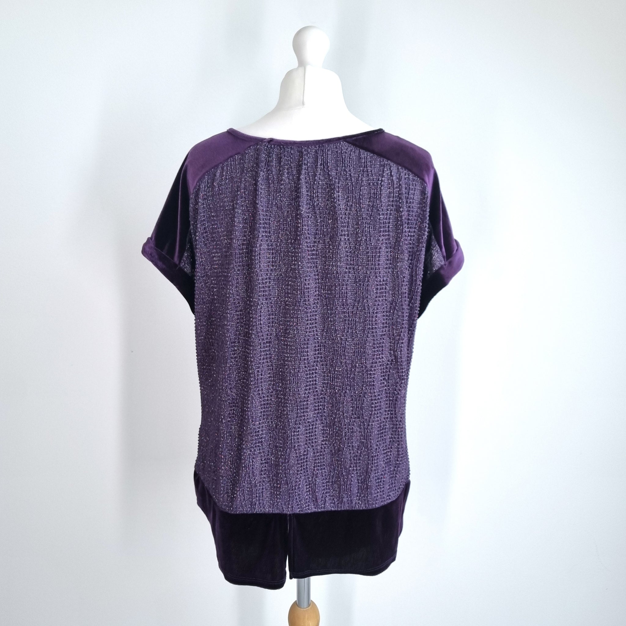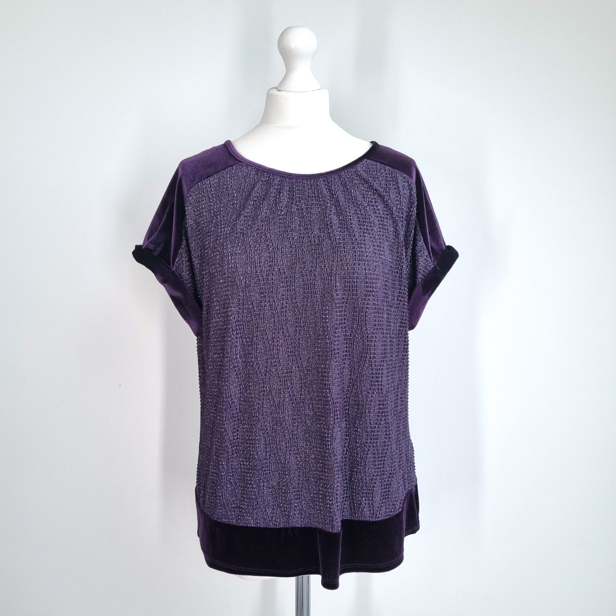 Oasis Top - Purple - Velvet Trim - Sparkly Main Body - Short Sleeves