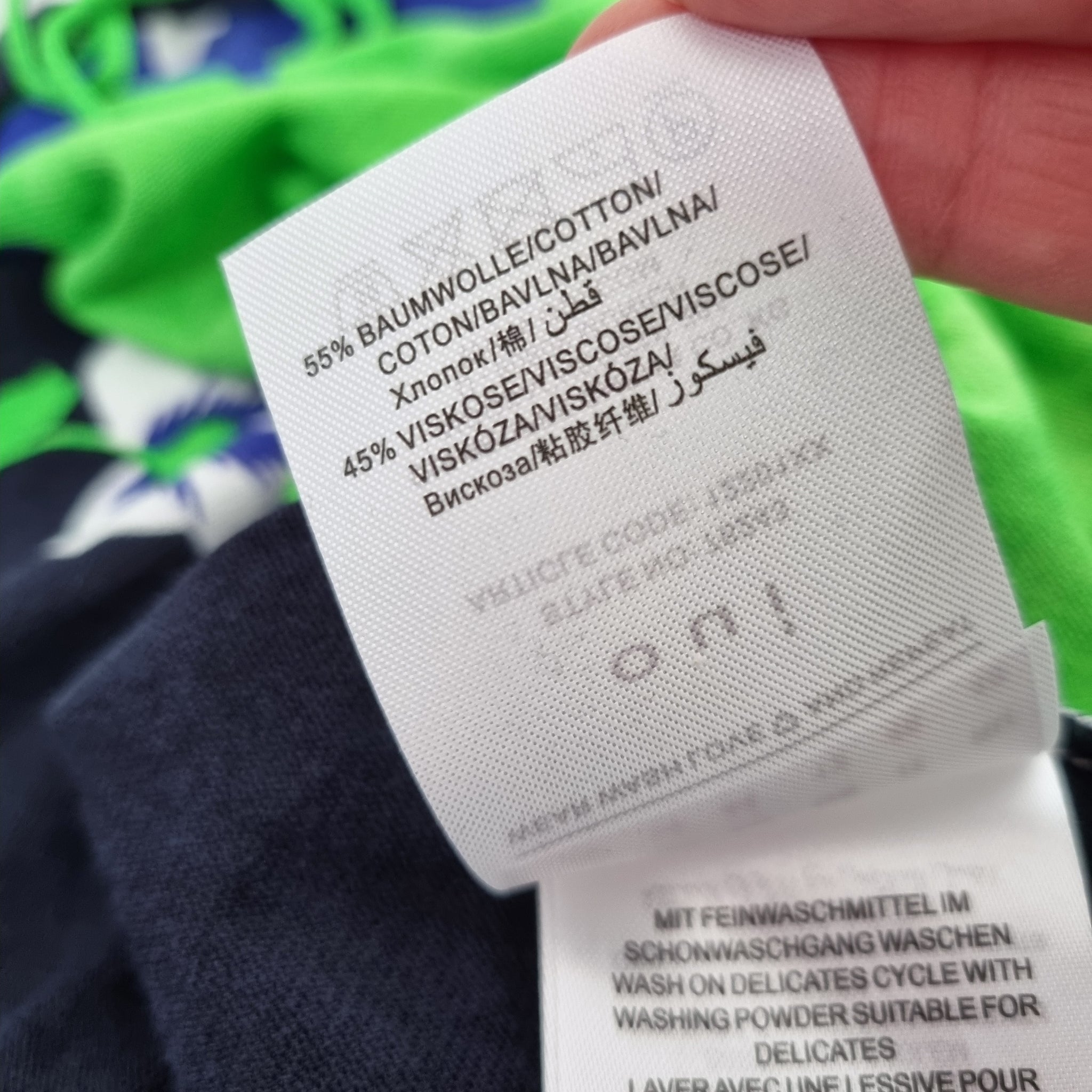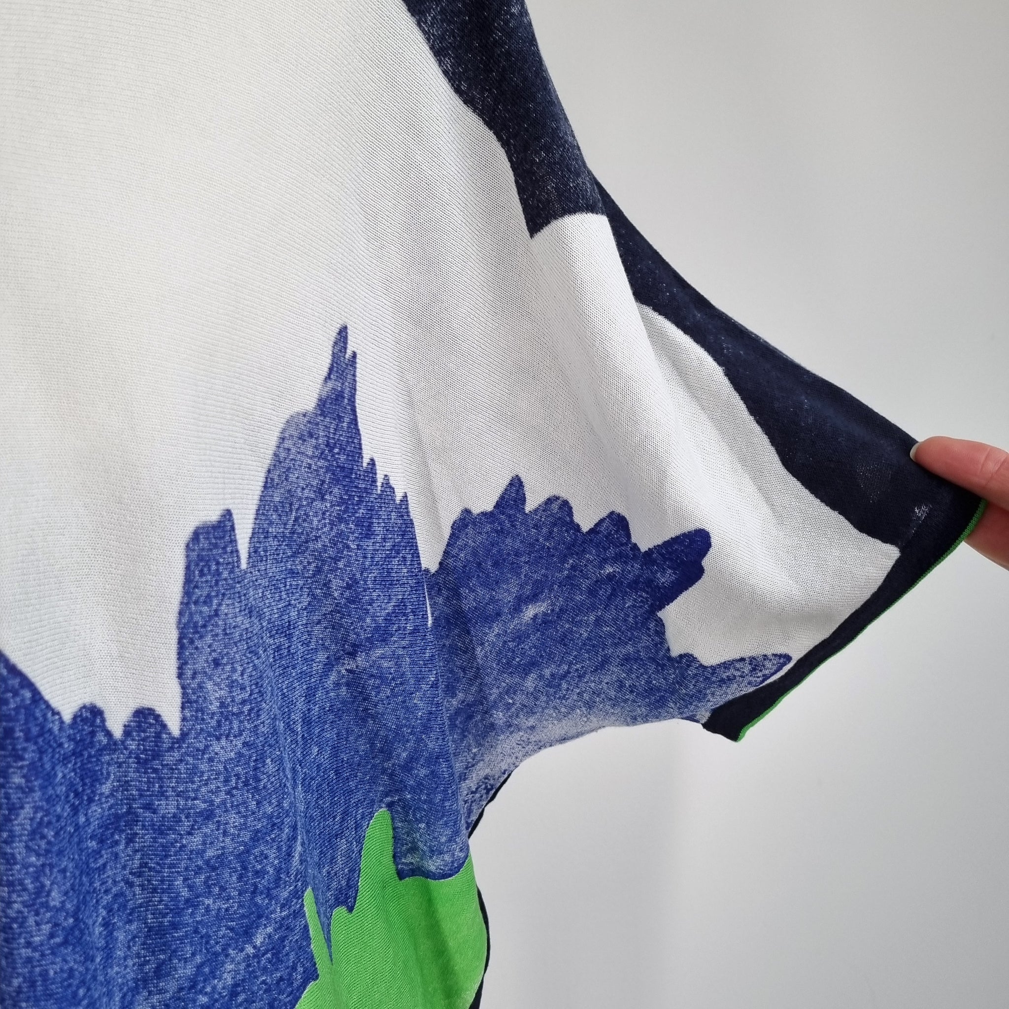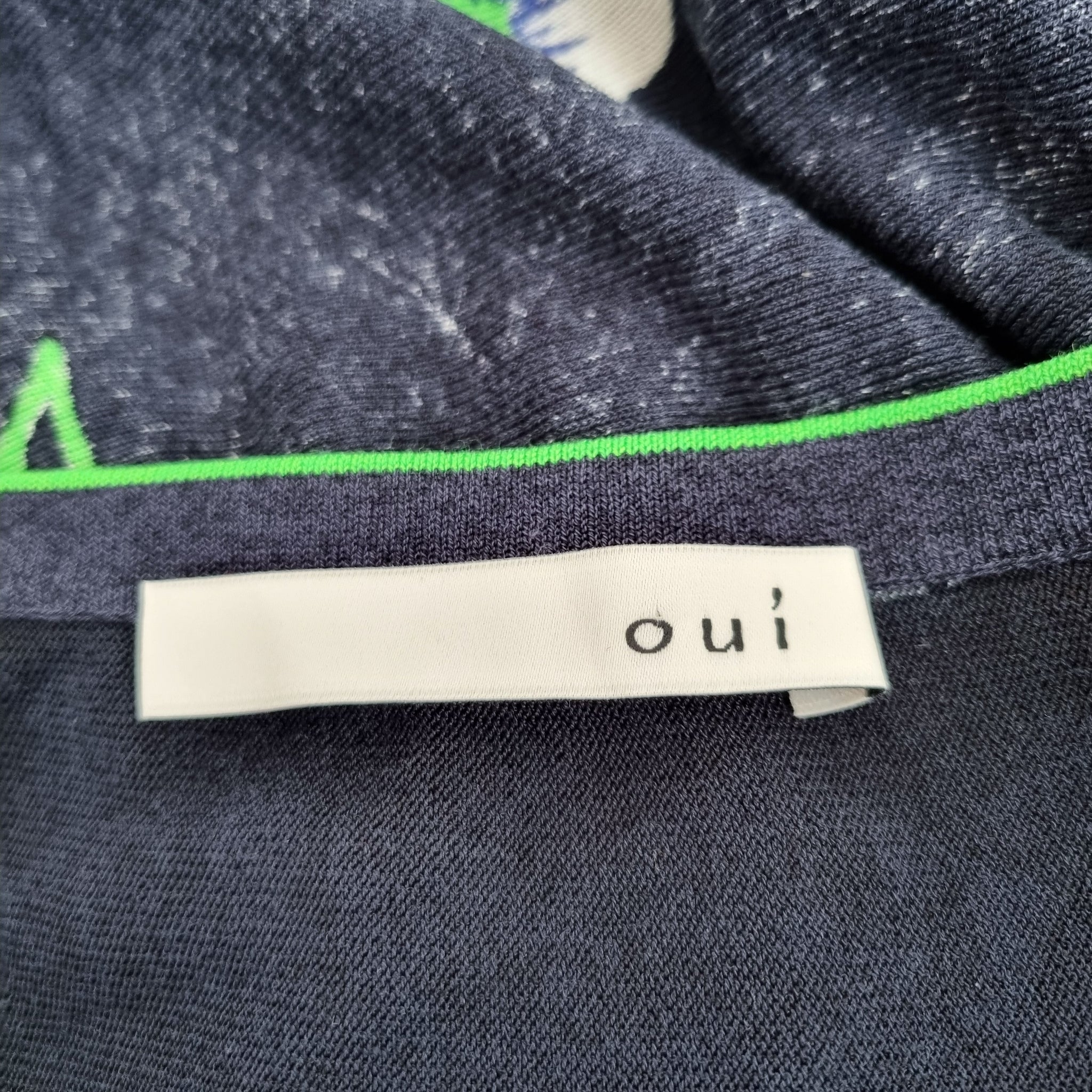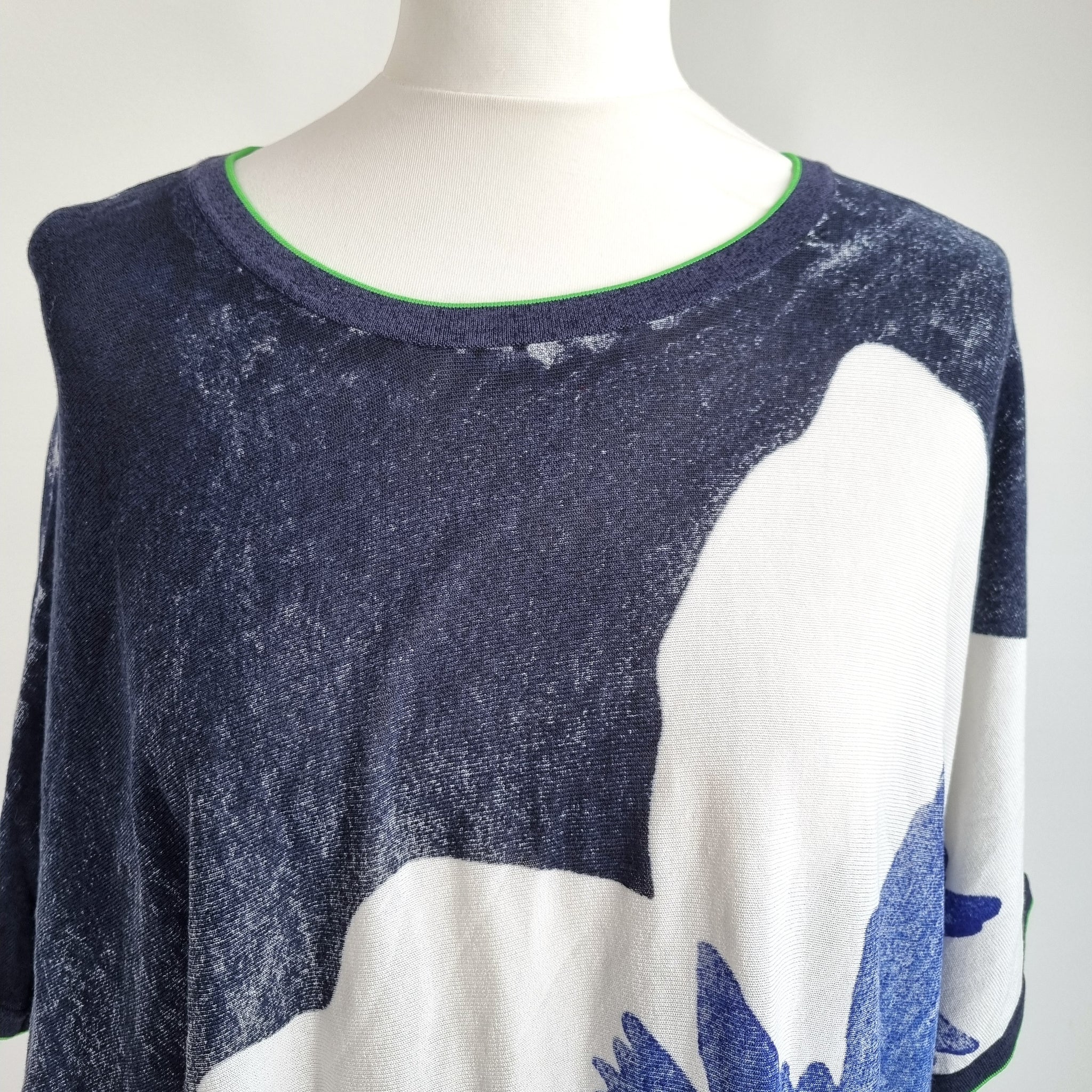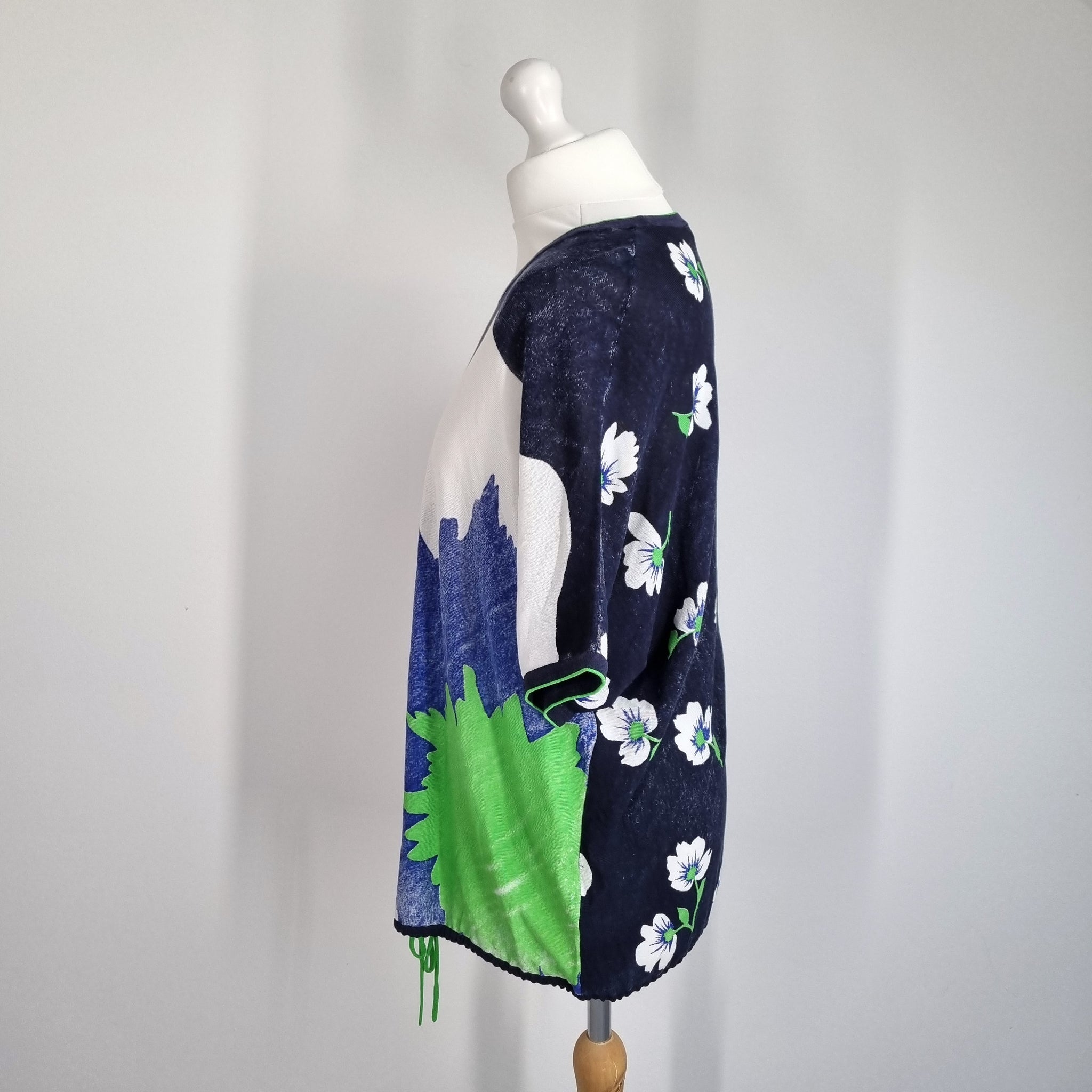 Oui Blouse - Oversized - Floral Print - Cotton & Viscose Blend - Navy Blue, Green & White - Short Sleeves - Adjustable Hem with Drawstring